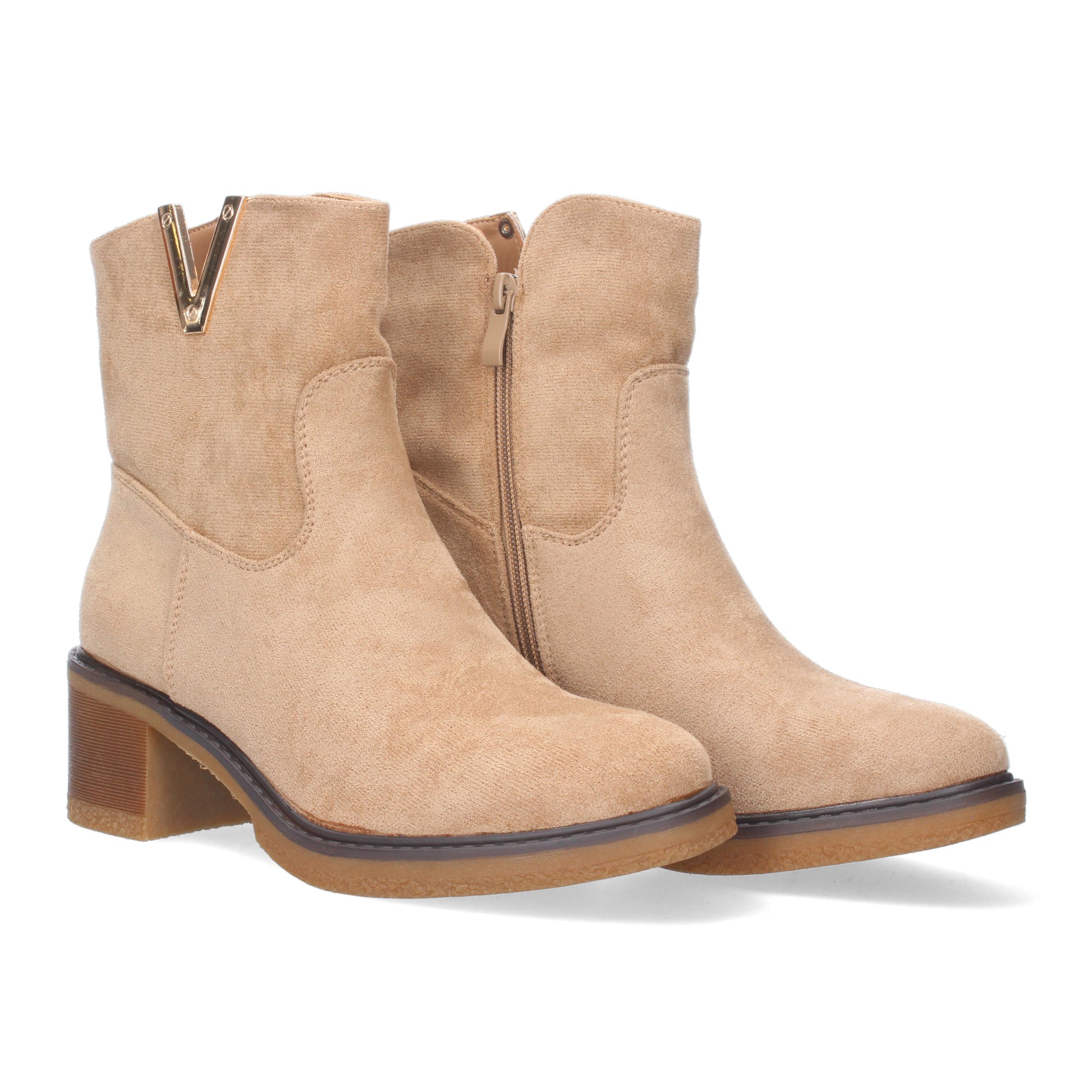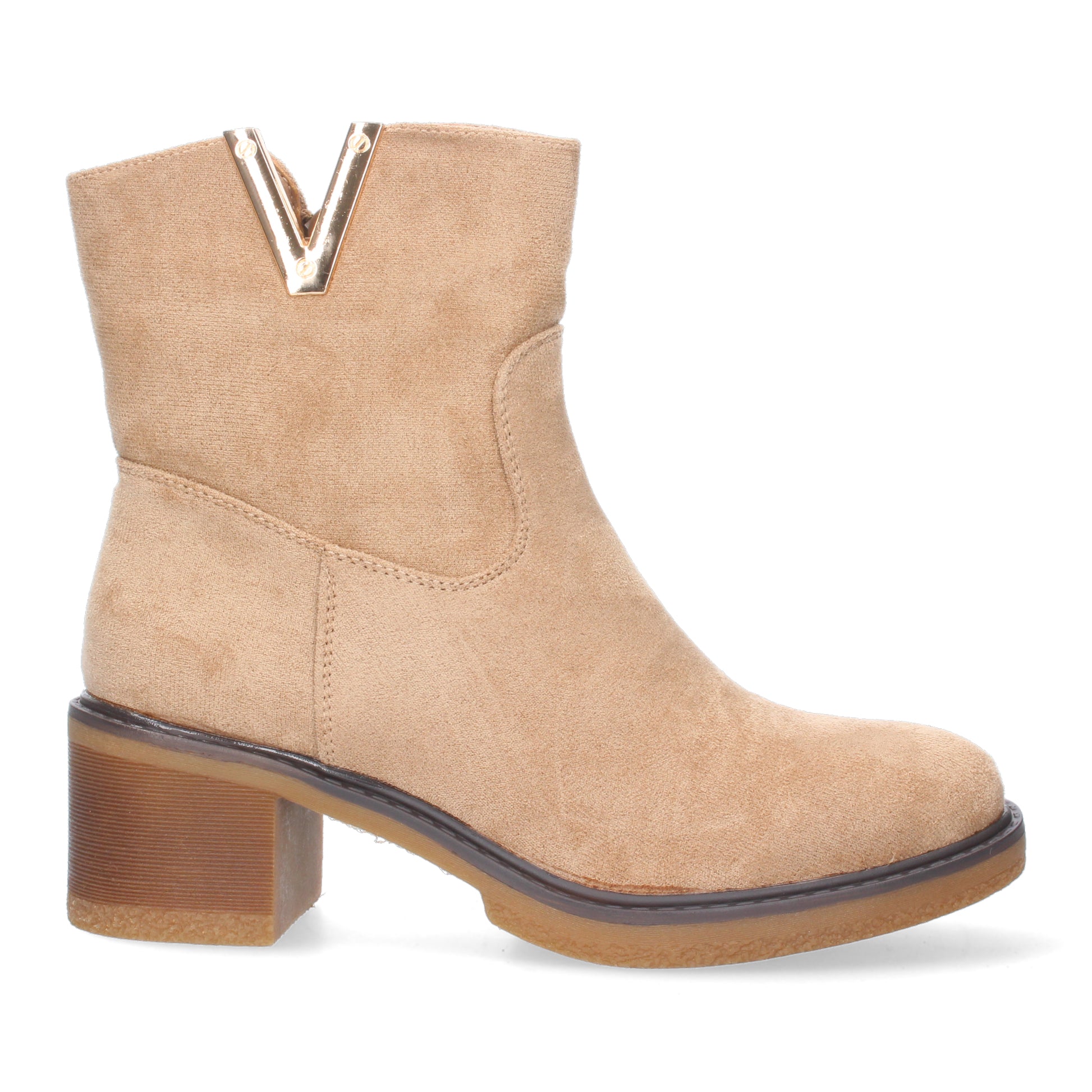 Botin de Tacon para Mujer con material aterciopelado y detalle metalico en la caña.