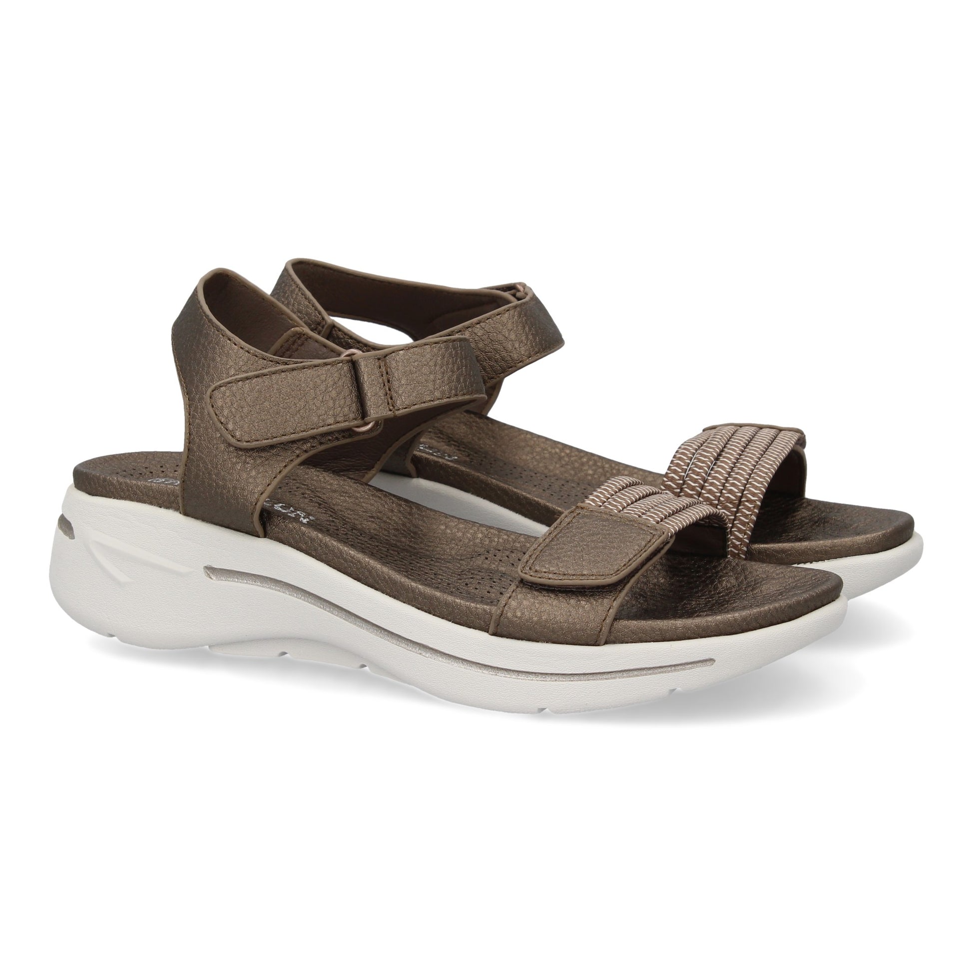 Sandalia plana de mujer diseño moderno ligero y comodo con doble cierre de velcro y tiras elasticas en la pala ideales para primavera verano.