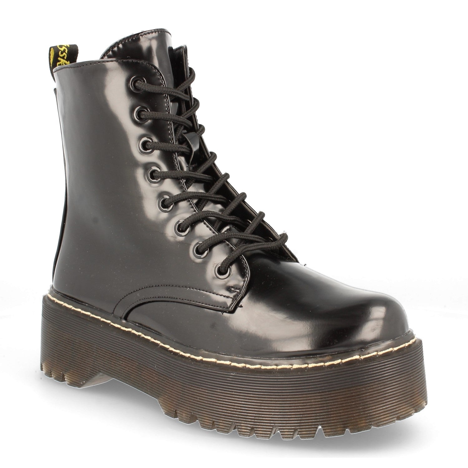 Botín de mujer de doble suela comodos con plataforma y cierre de cremallera con adorno de cordones Otoño invierno 2019