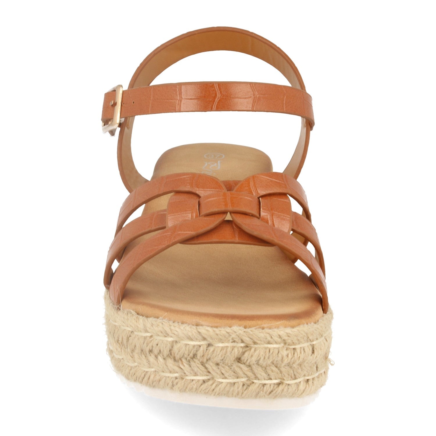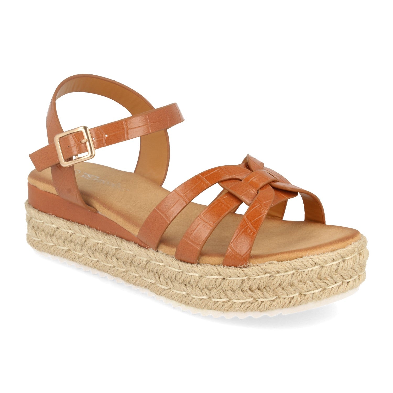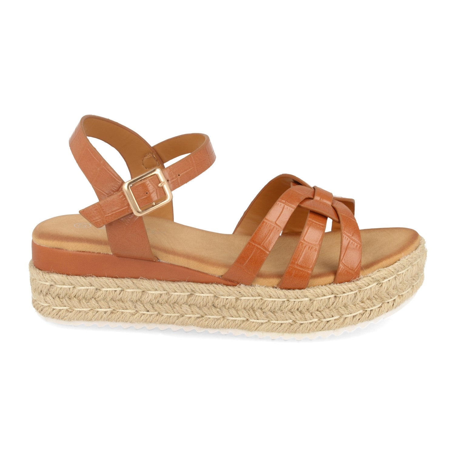 Sandalia Plana de Mujer con Yute Grabado de Cocodrilo Tripe Pala Cierre de Cremallera Priimavera Verano 2020