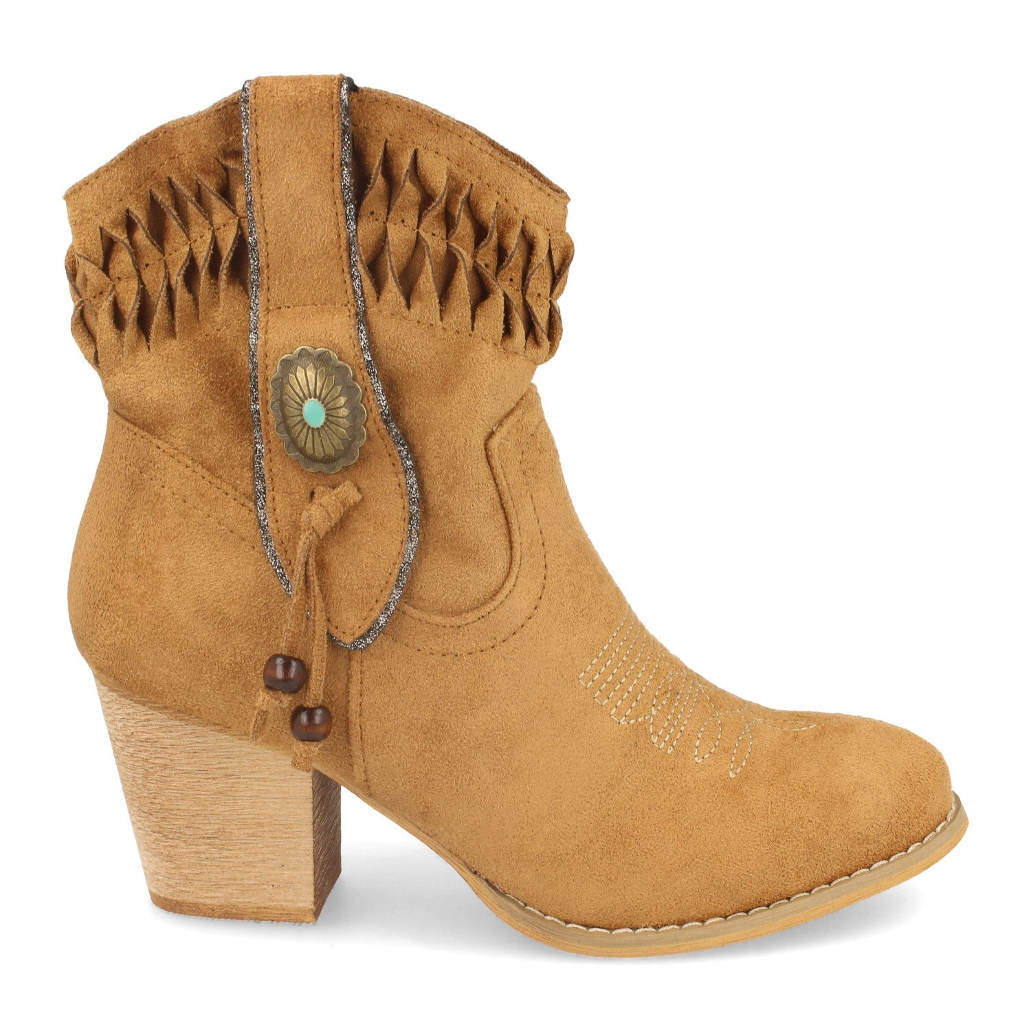 Botin de Mujer Estilo Campero con Tacon Adorno Metalico en Caña Borlas y Bordado en el Empeine Primavera Verano 2020
