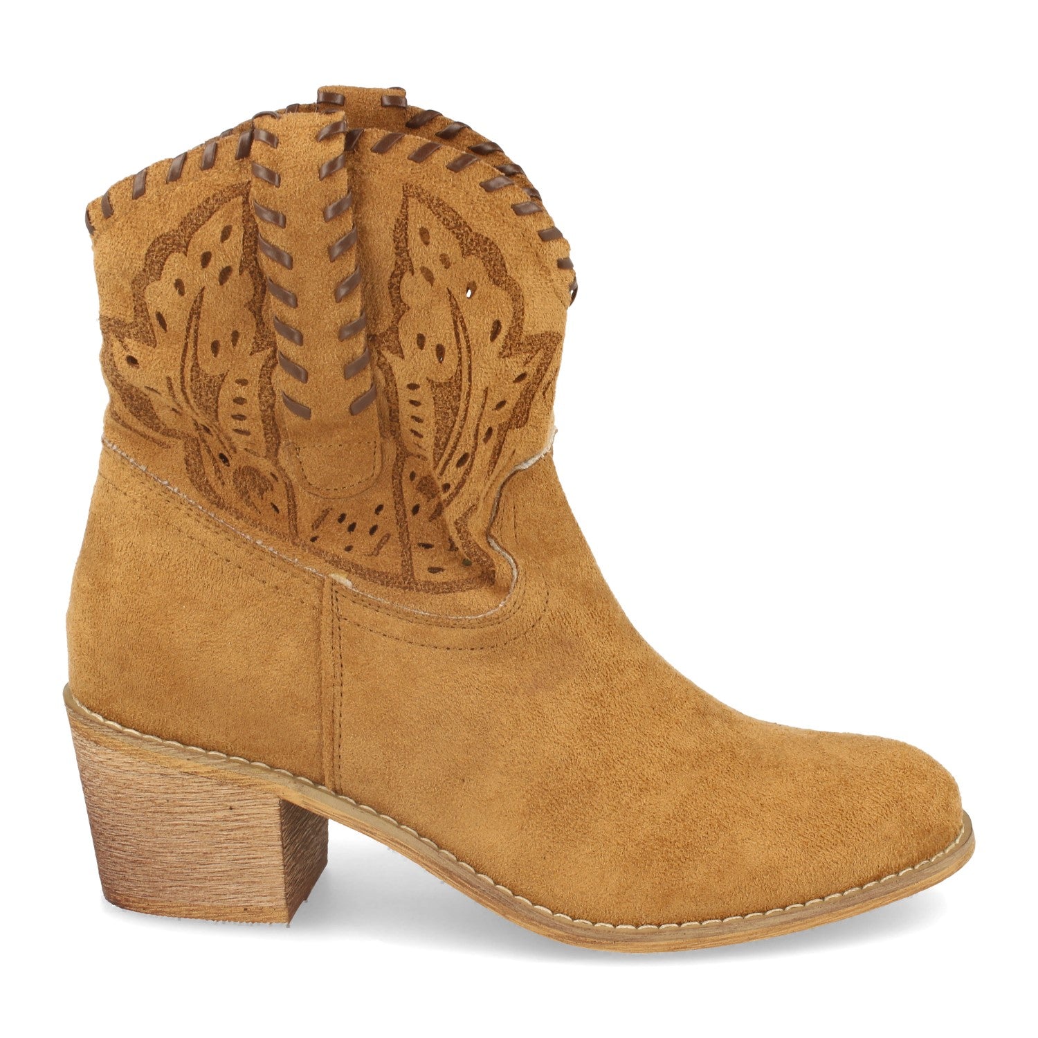 Botin de Mujer Estilo Campero con Tacon Cosido y Grabado en Caña Primavera Verano 2020