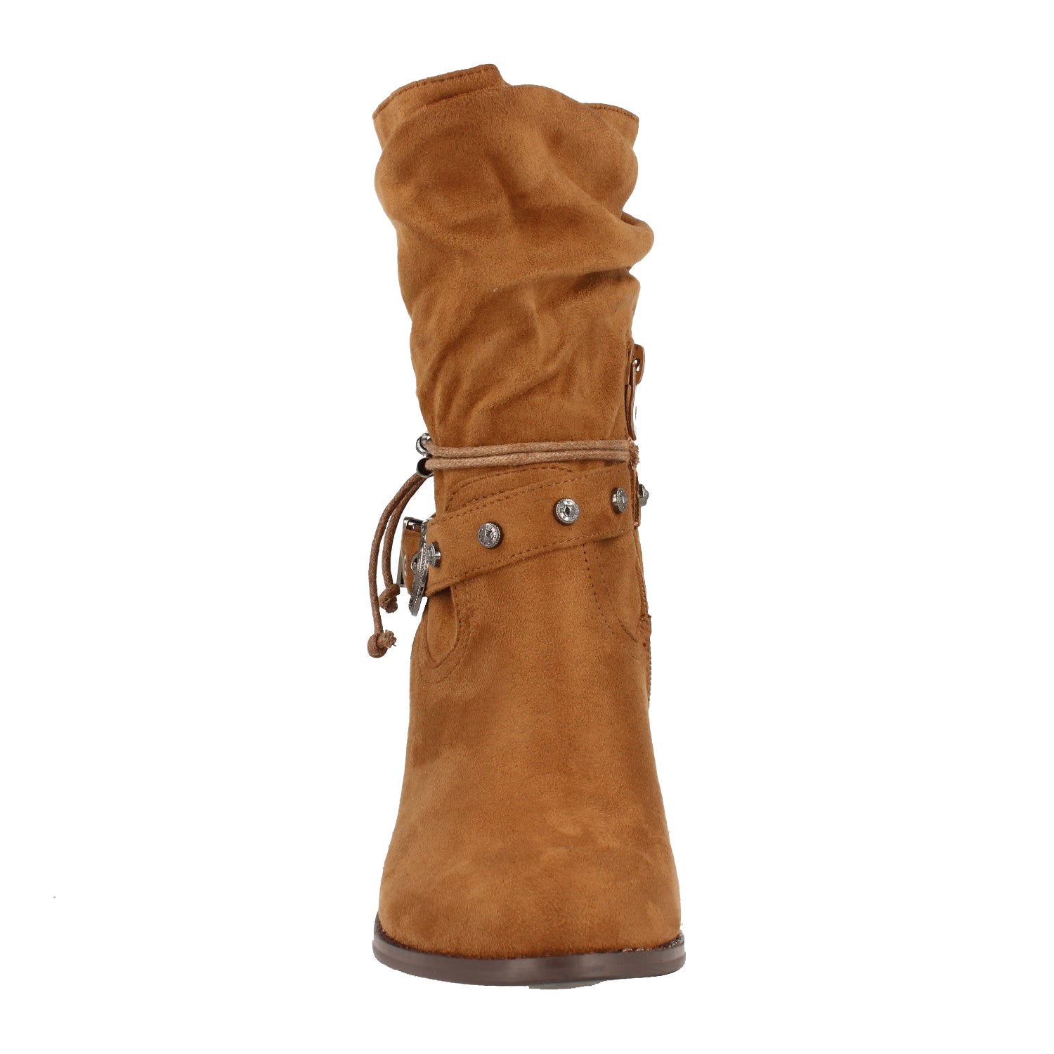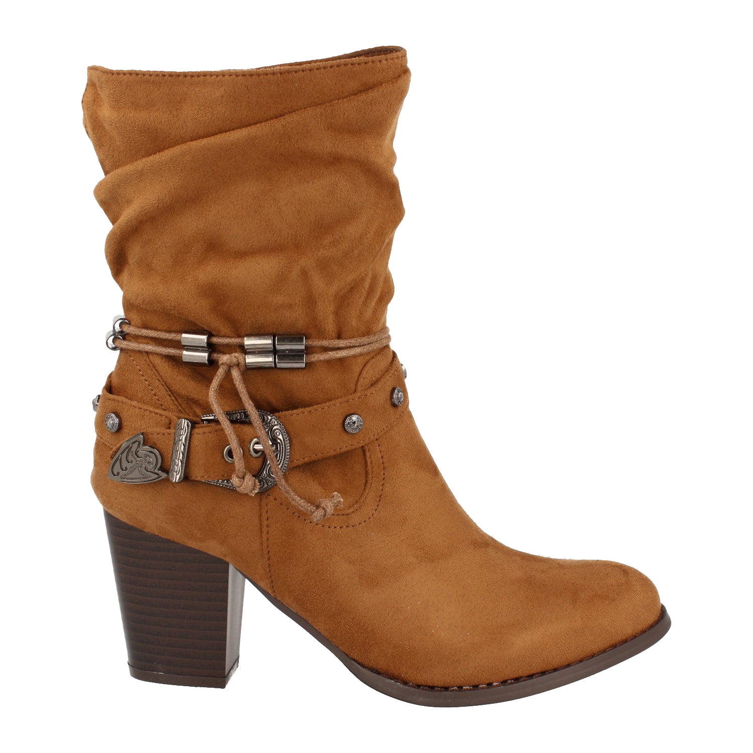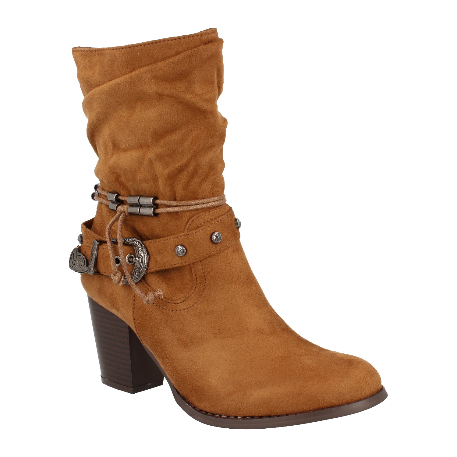 Bota Media Caña de Vestir con Caña Plegada y Correas con Adornos Metalizados y Cremallera Otoño Invierno 2019