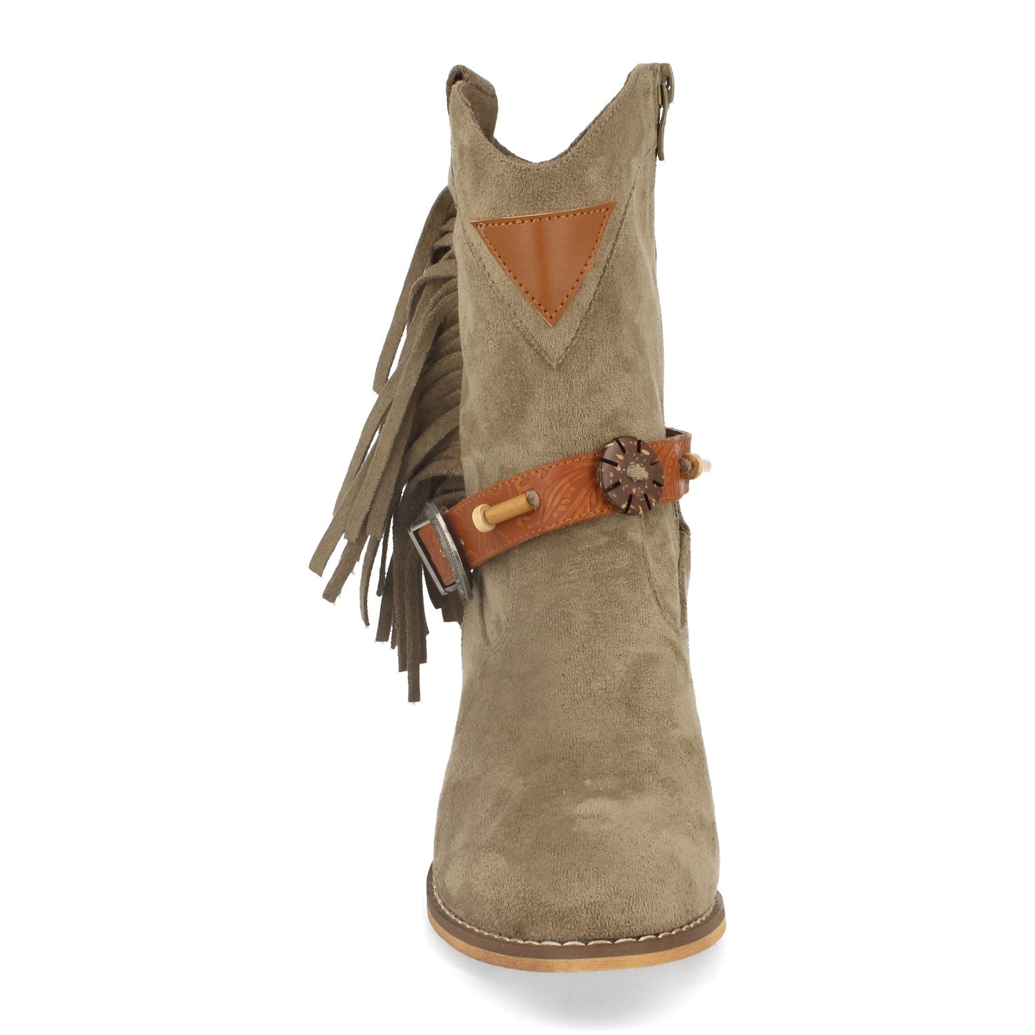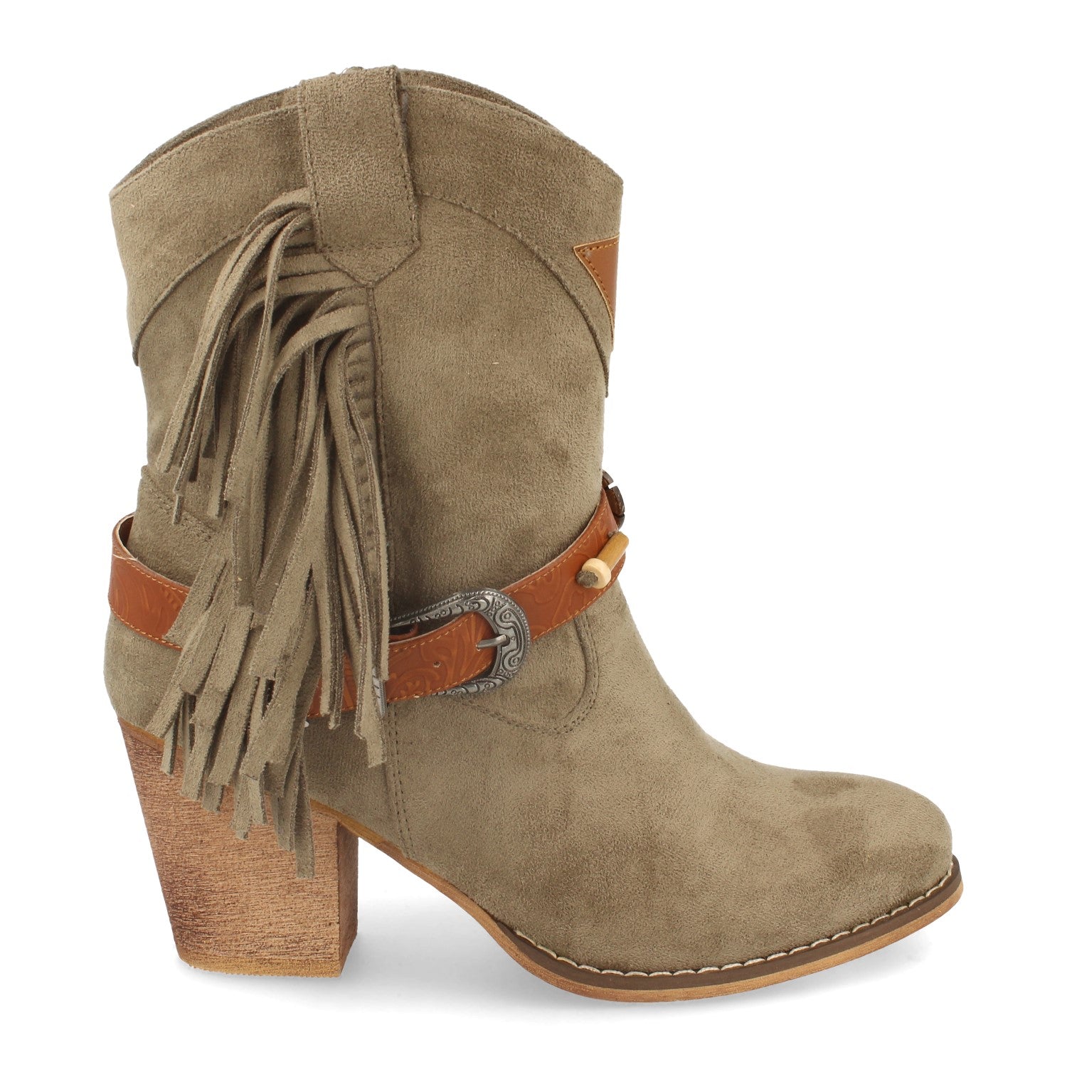 Botin de Mujer con Tacon Campero Flecos y Tira con Hebilla Cierre de Cremallera Otoño Invierno 2019