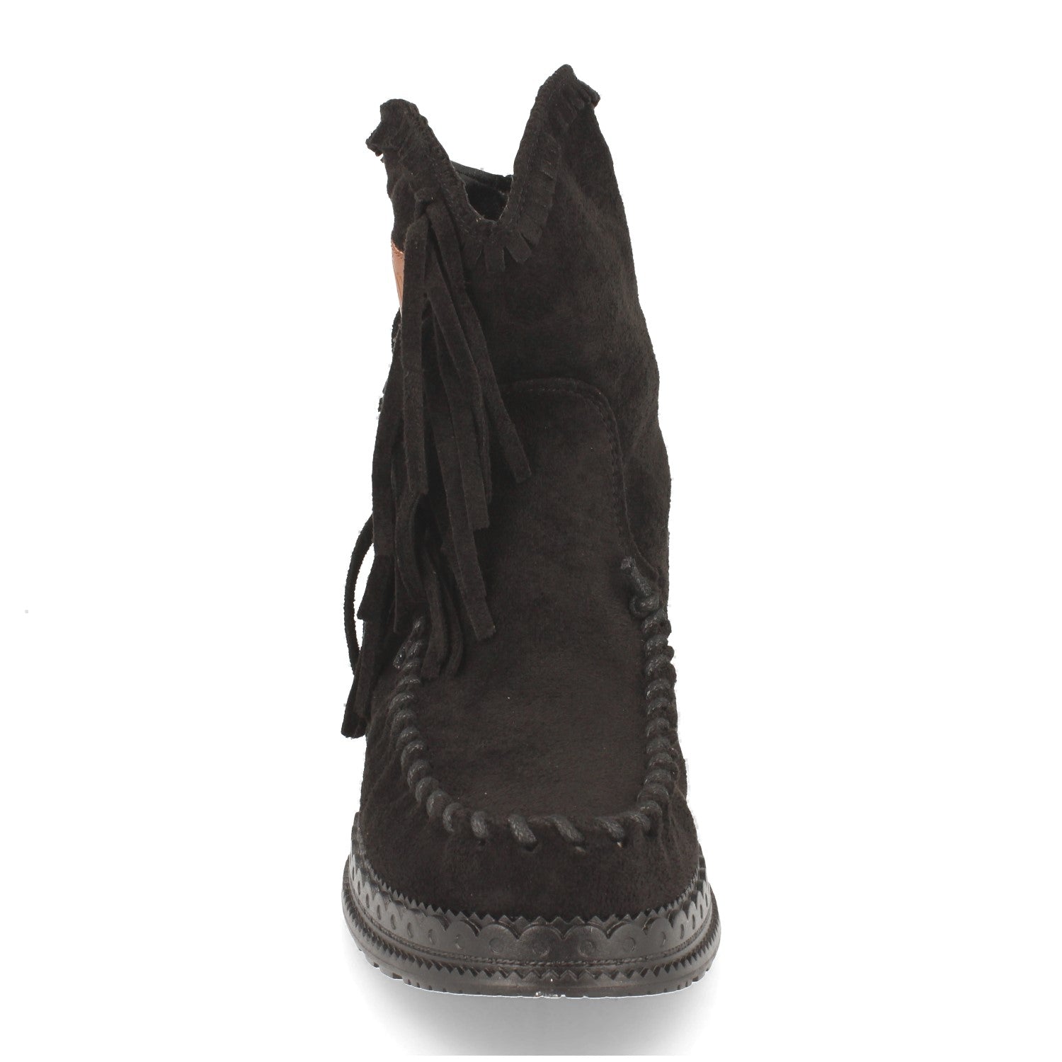 Botín de Mujer con Cuña Interior de Estilo Indio Suela Adornada Flecos en Caña y Cosido en el Empeine Sin Cierre Otoño Invierno 2020
