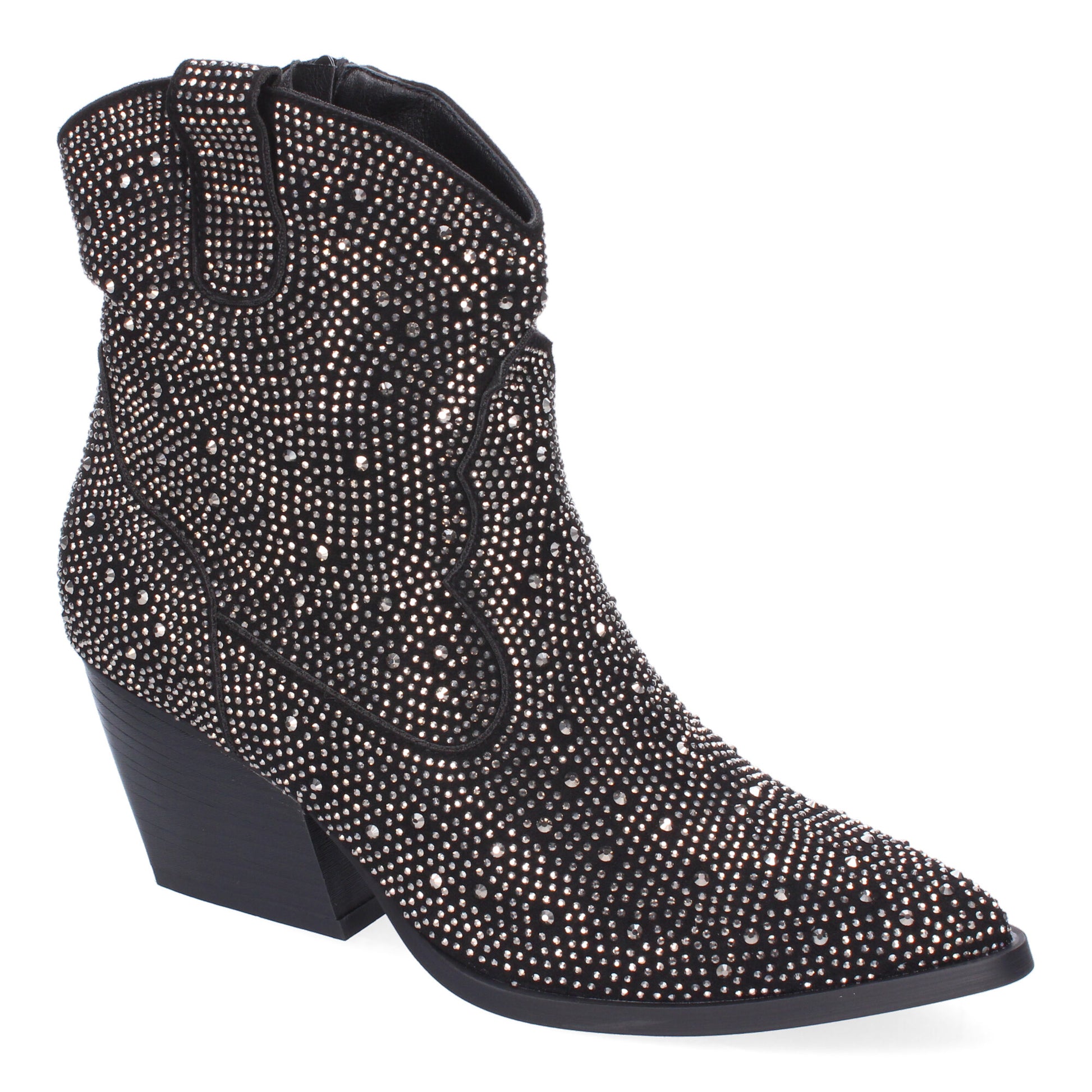 Botines de Tacón Cubano para Mujer Adornos Brillantes Diseño Comodo y Elegante y Cierre de Cremallera Lateral.