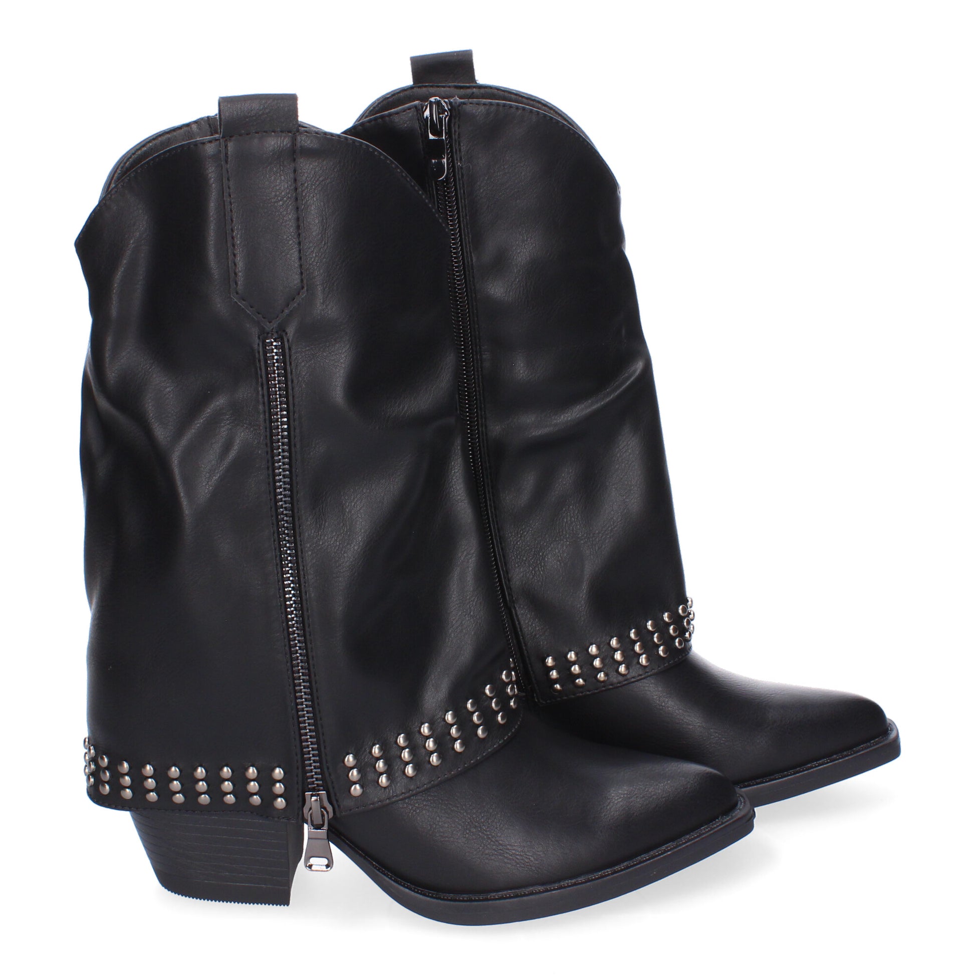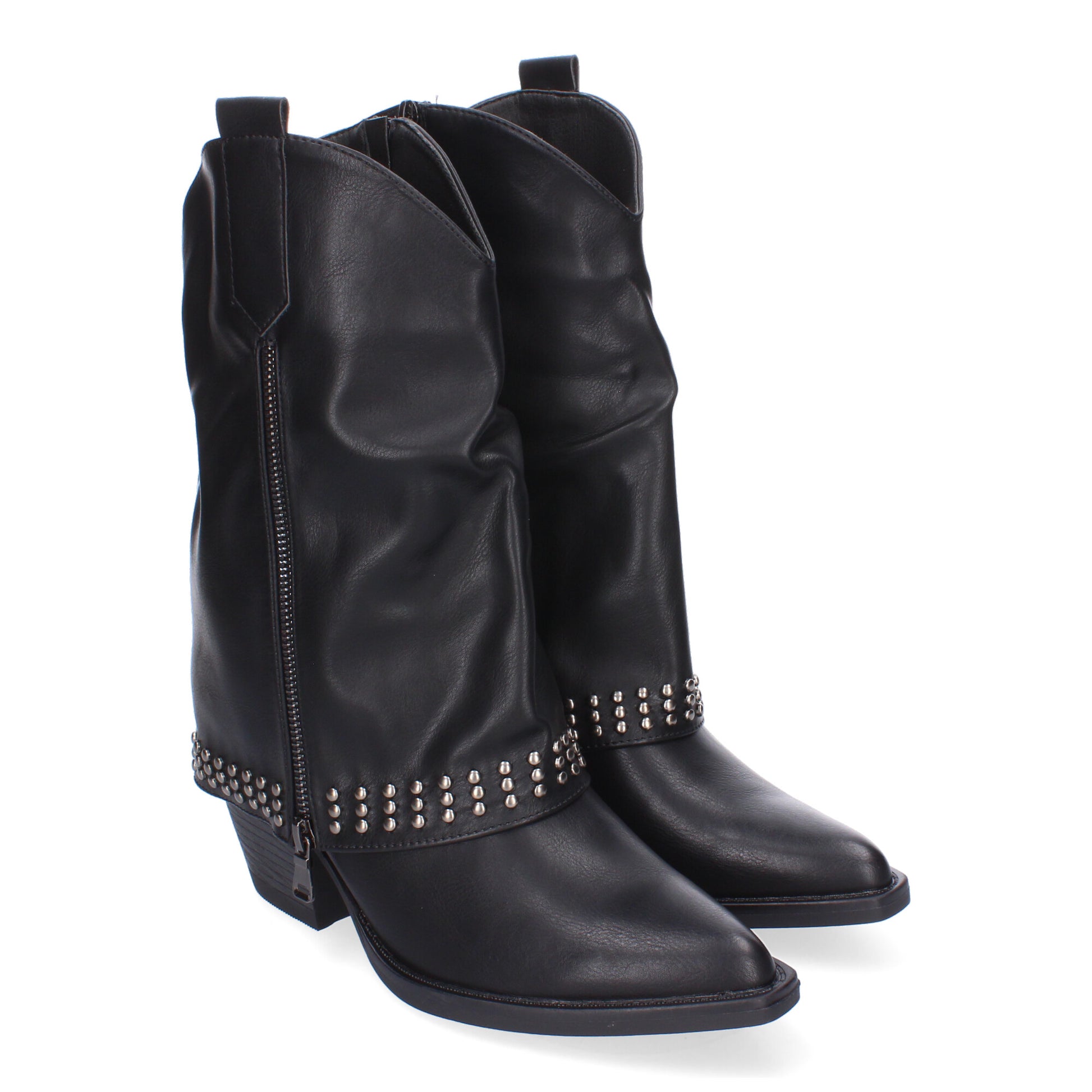 Botines de Tacón para Mujer Estilo Cowboy Polaina Comodas y Elegantes con Adorno de Tachuelas con Doble Cierre de Cremallera Lateral.