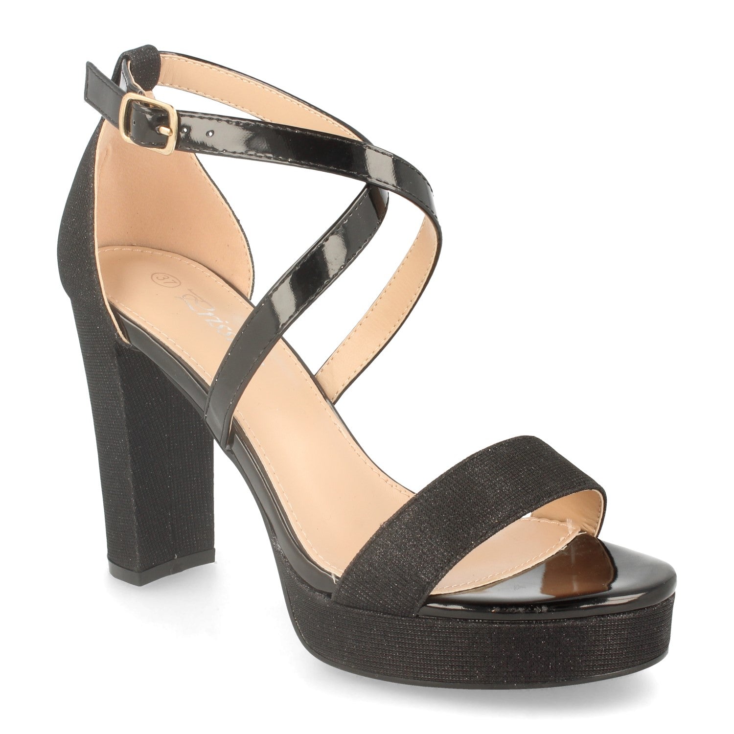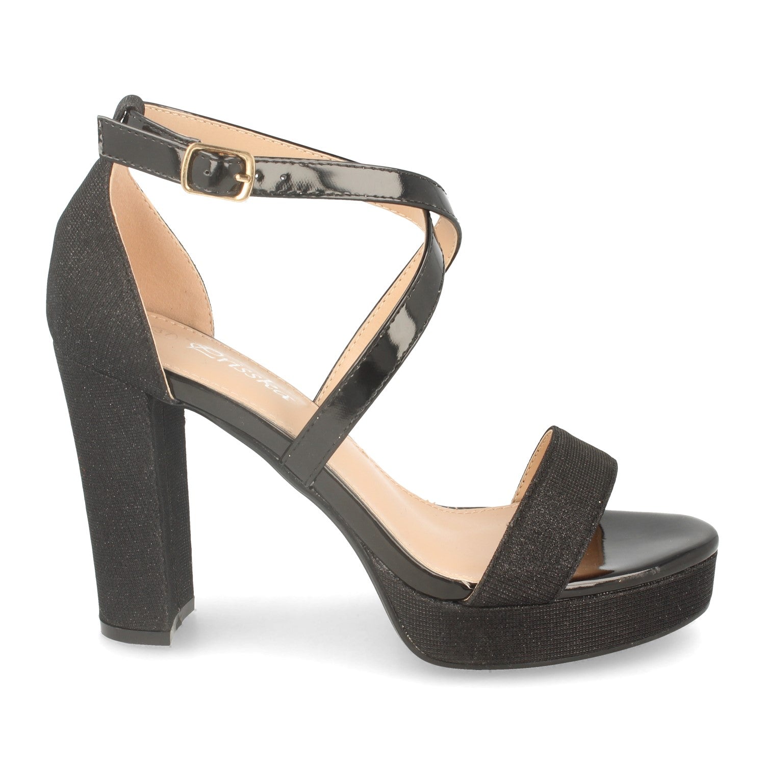 Sandalia de Tacon Alto y Mini Plataforma Moda de Fiesta Brillantes Punta Abierta Cierre de Tiras Cruzadas en X con Hebilla Primavera Verano 2020