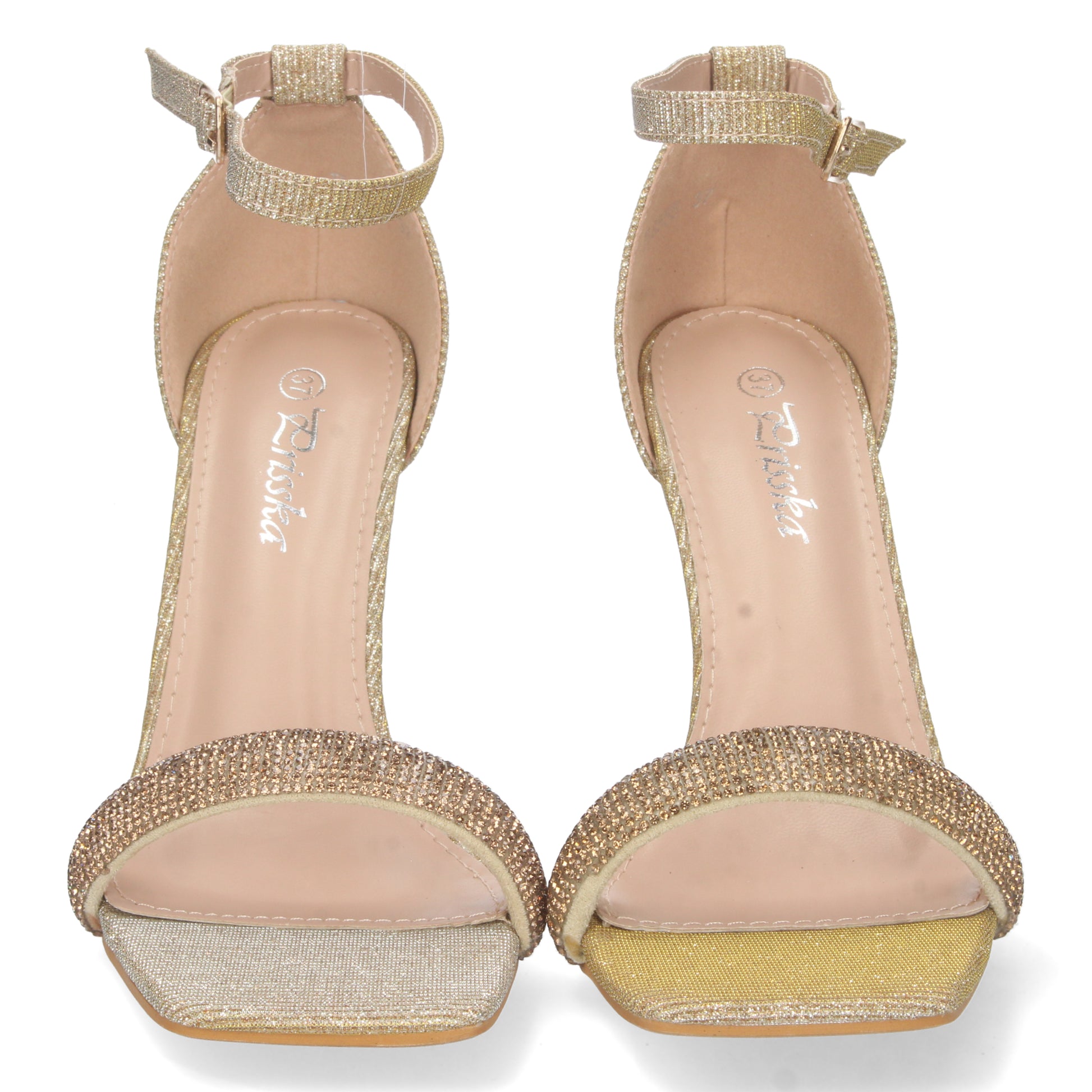 Sandalia de Tacon para Mujer Comoda de Material Brillante Pala con Strass y Cierre de Hebilla Otoño Invierno 2022