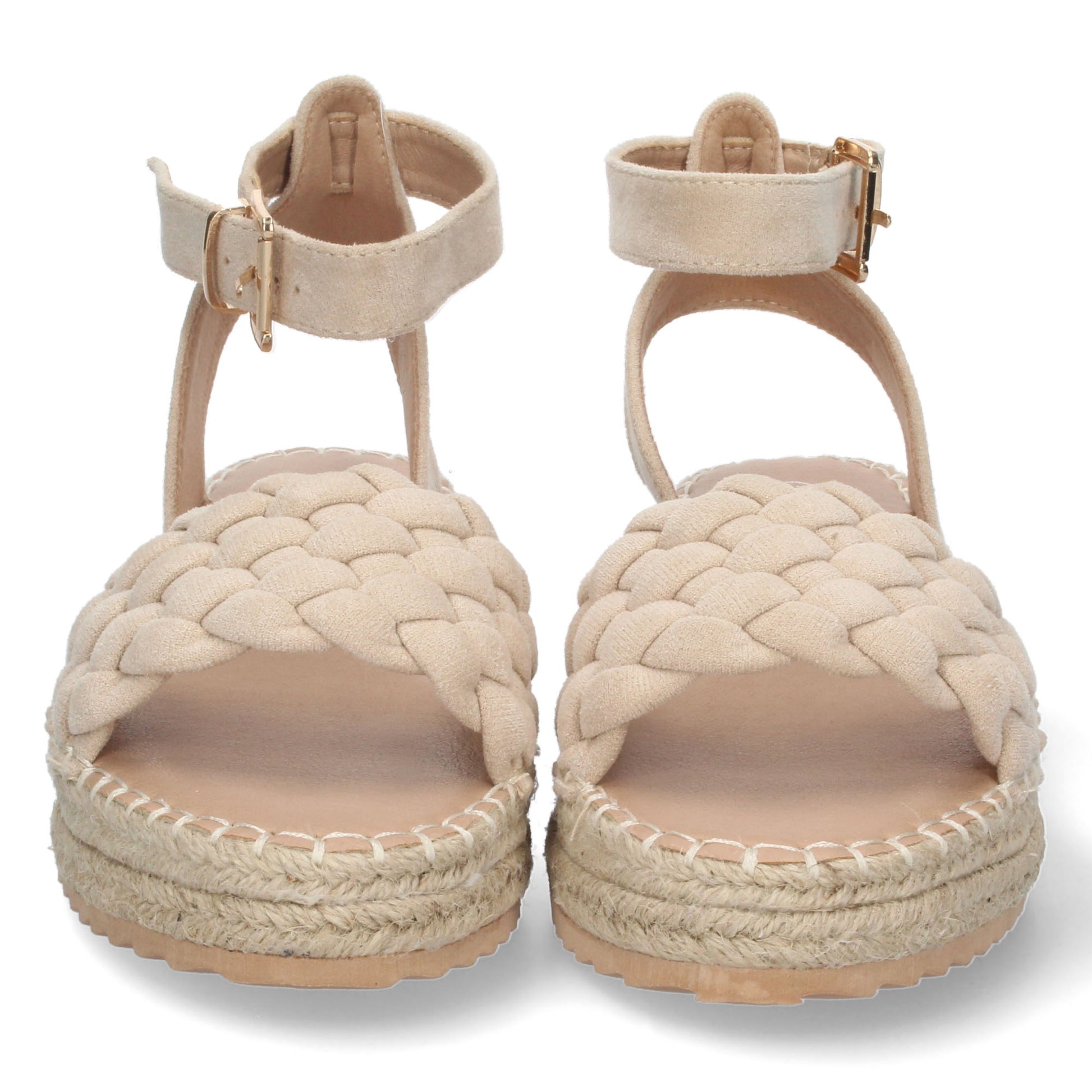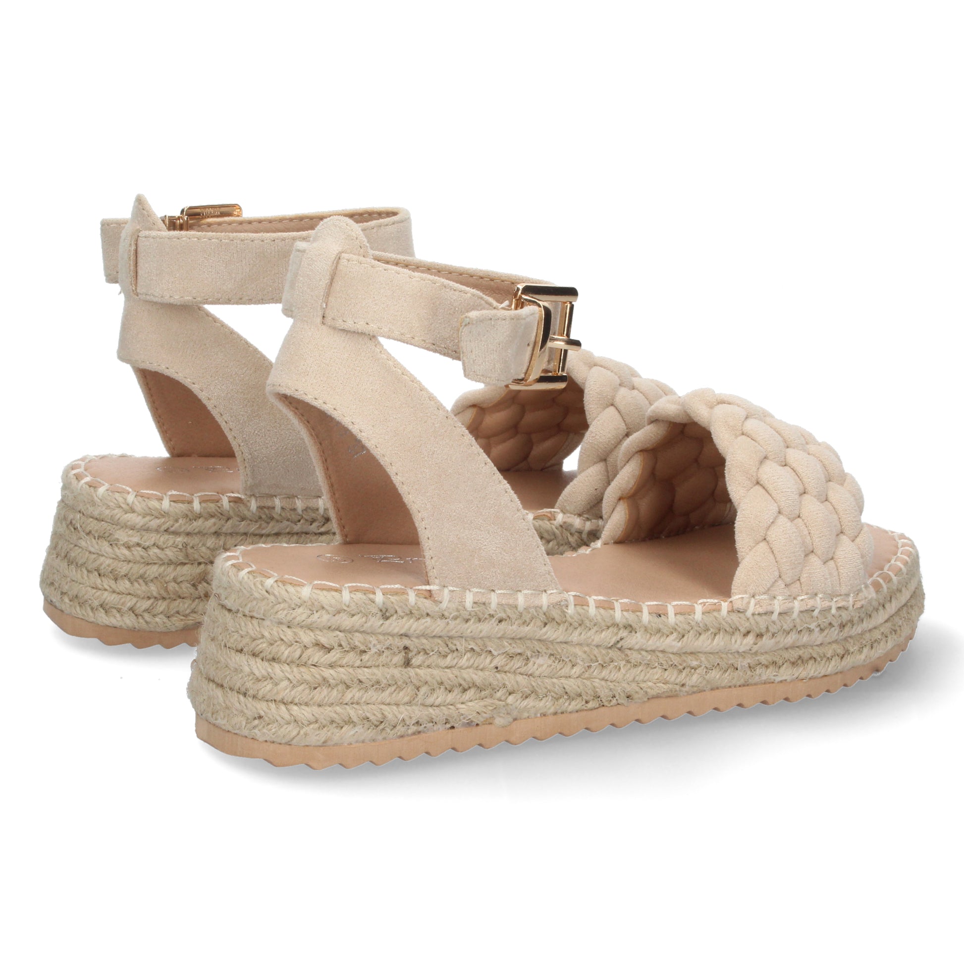 Sandalia Plana para Mujer Comoda Forrada de Yute Pala Trenzada Talon Abierto y Cierre de Hebilla en el Tobillo