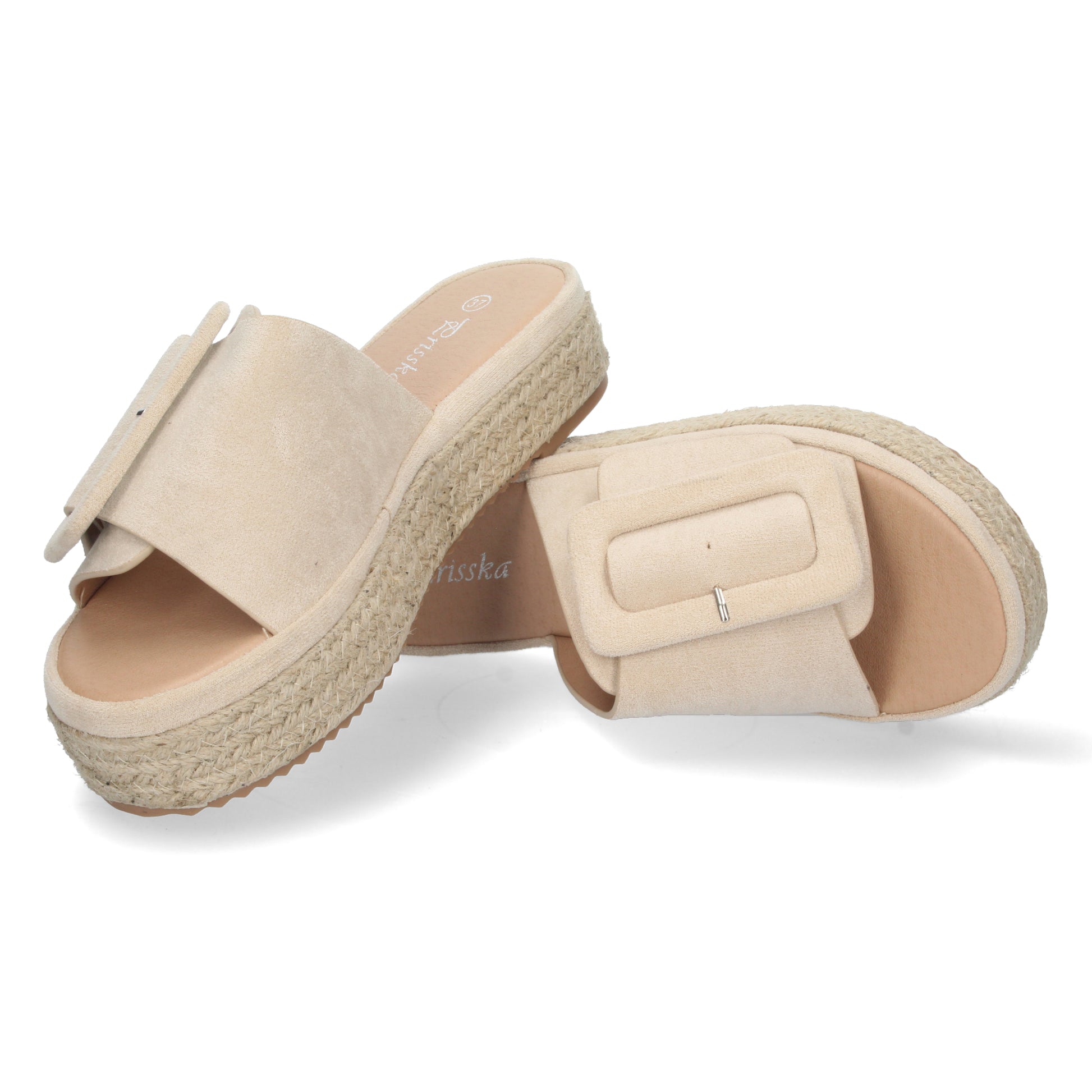 Sandalia de Plataforma para Mujer Comoda Forrada de Yute Pala Ancha con Hebilla y Talon Abierto