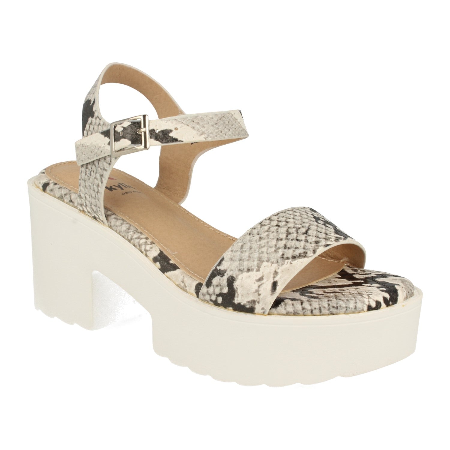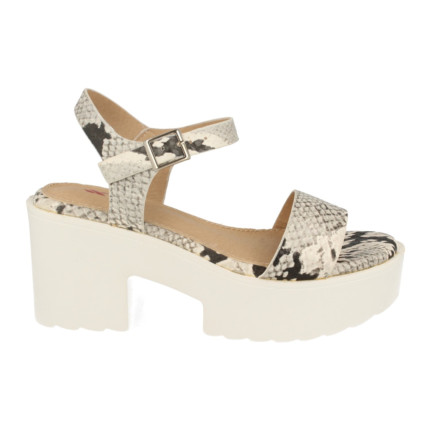 Sandalia de Mujer Ankle Strap con Plataforma Talón y Puntera Abiertos Pala Fina y Hebilla. Estilo Fashion Moderno. Primavera Verano 2020.