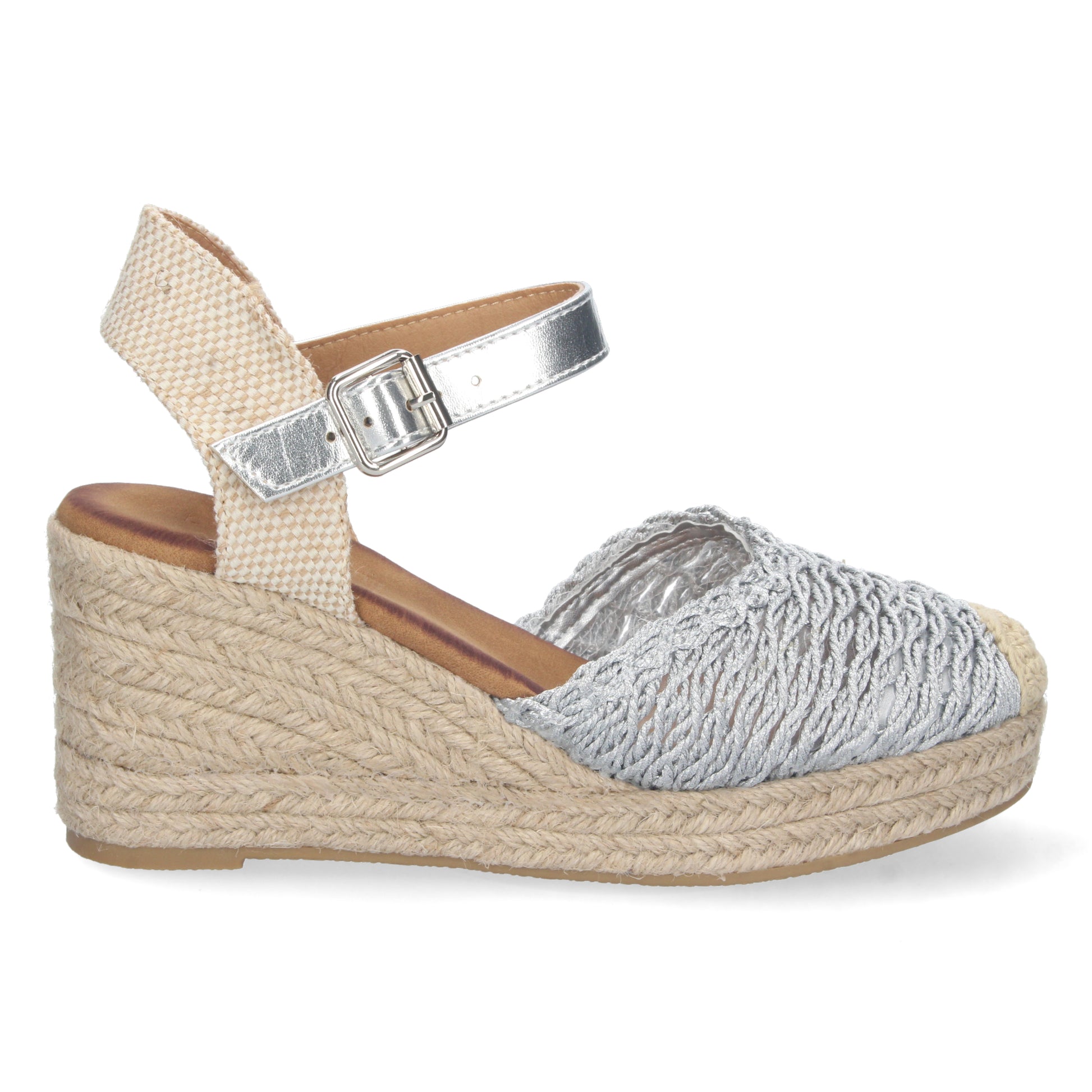 Sandalia de Cuña para Mujer Comoda con Pala Cerrada Entrelazada Forrada de Yute y Cierre de Hebilla