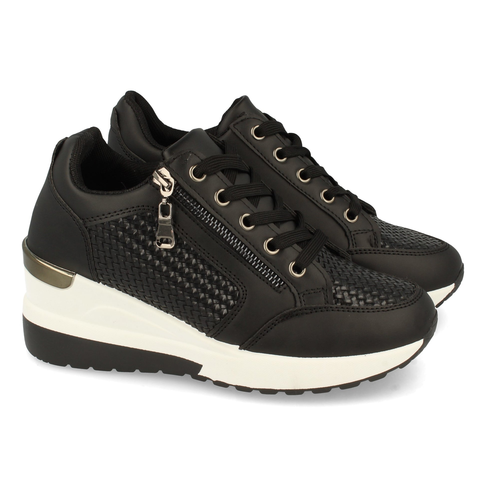 Zapatilla para Mujer con Cuña Estampado Cremallera de Adorno y Cierre de Cordones Otoño Invierno 2021