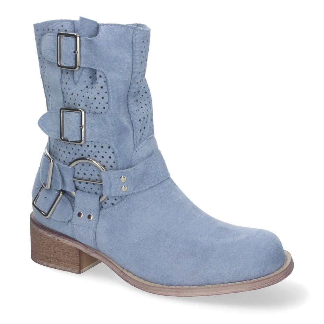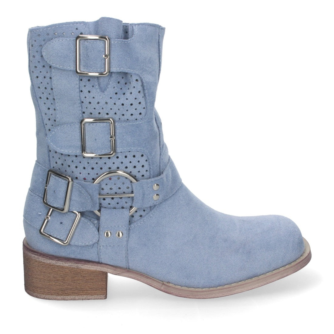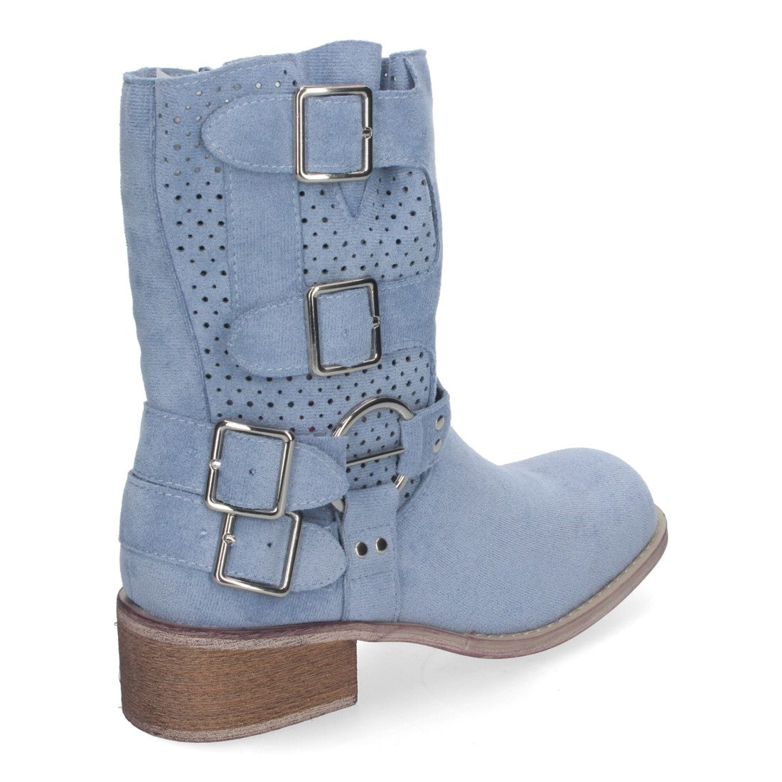 Botines de Mujer con Tacón Bajo y Adornos de Hebillas Caña Calada Cremallera Lateral Punta Redonda Perfectos para Toda Ocasión