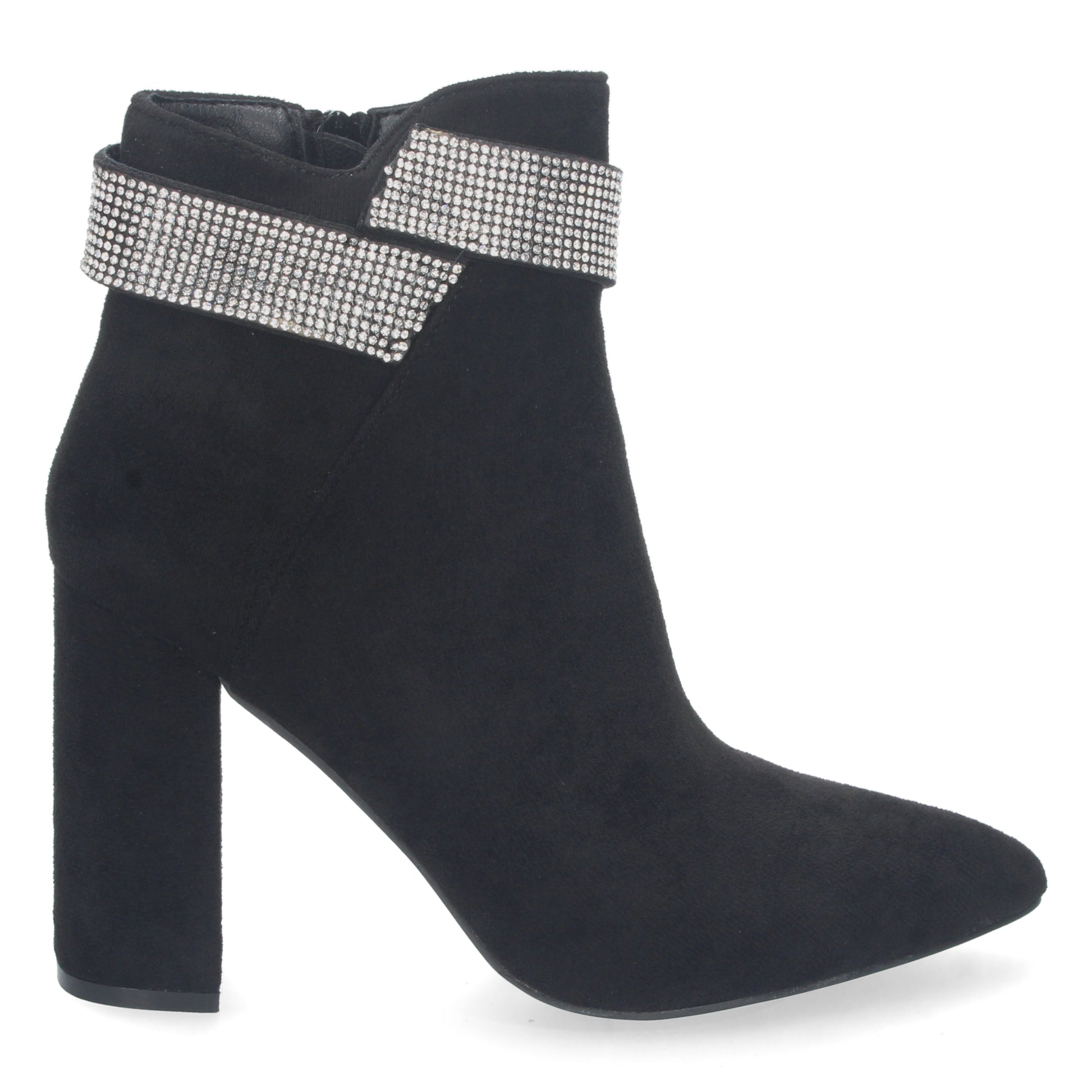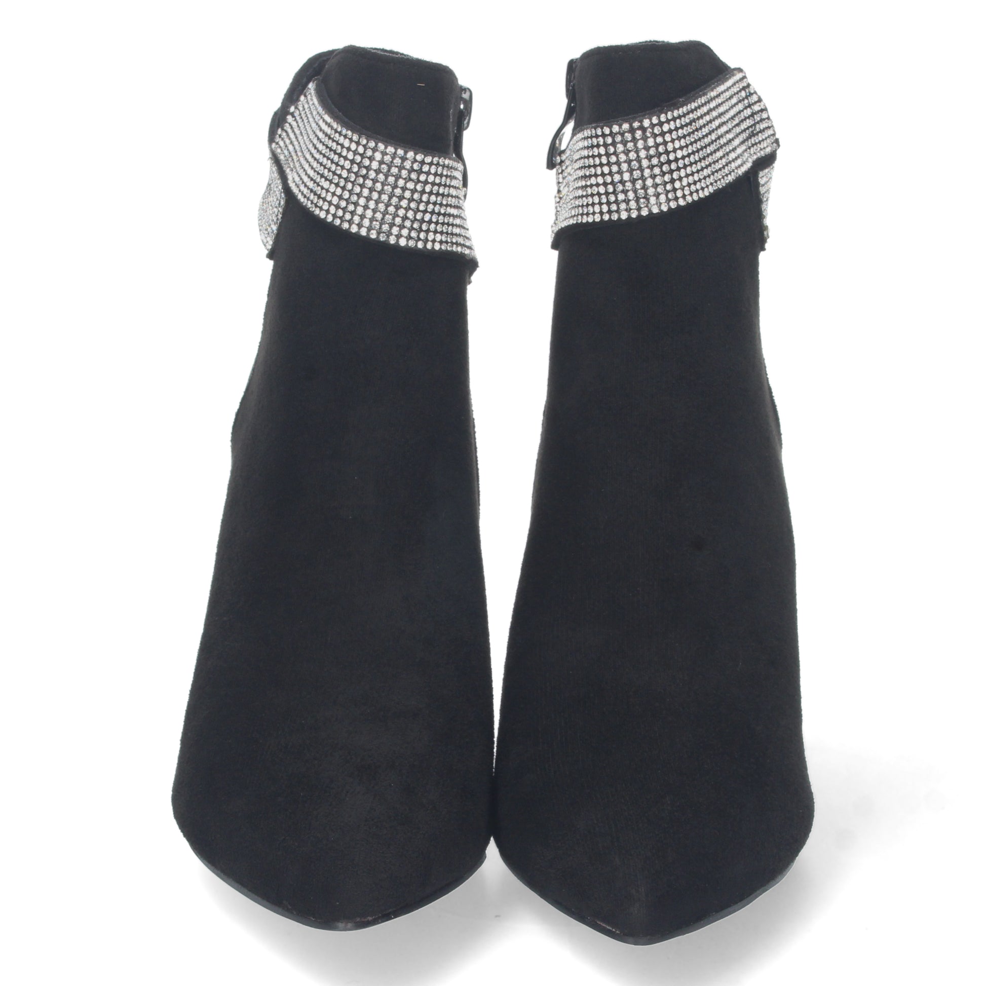 Botin de Tacon para Mujer Comodo de Punta Fina Correa en Caña con Strass y Cierre de Cremallera Otoño Invierno 2022