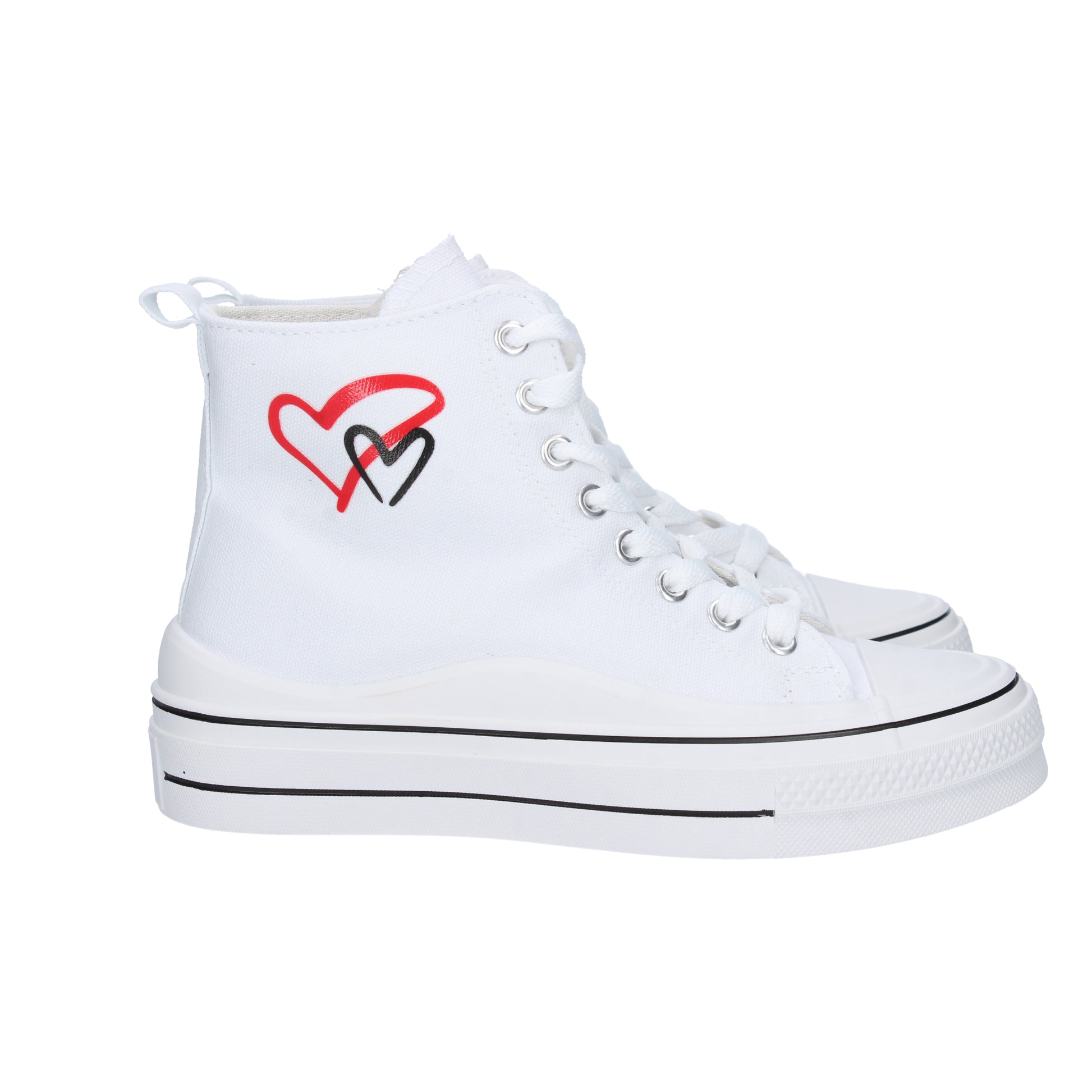 Deportiva de plataforma con cierre de cordones abotinada con diseño de corazón temporada otoño invierno 2023.