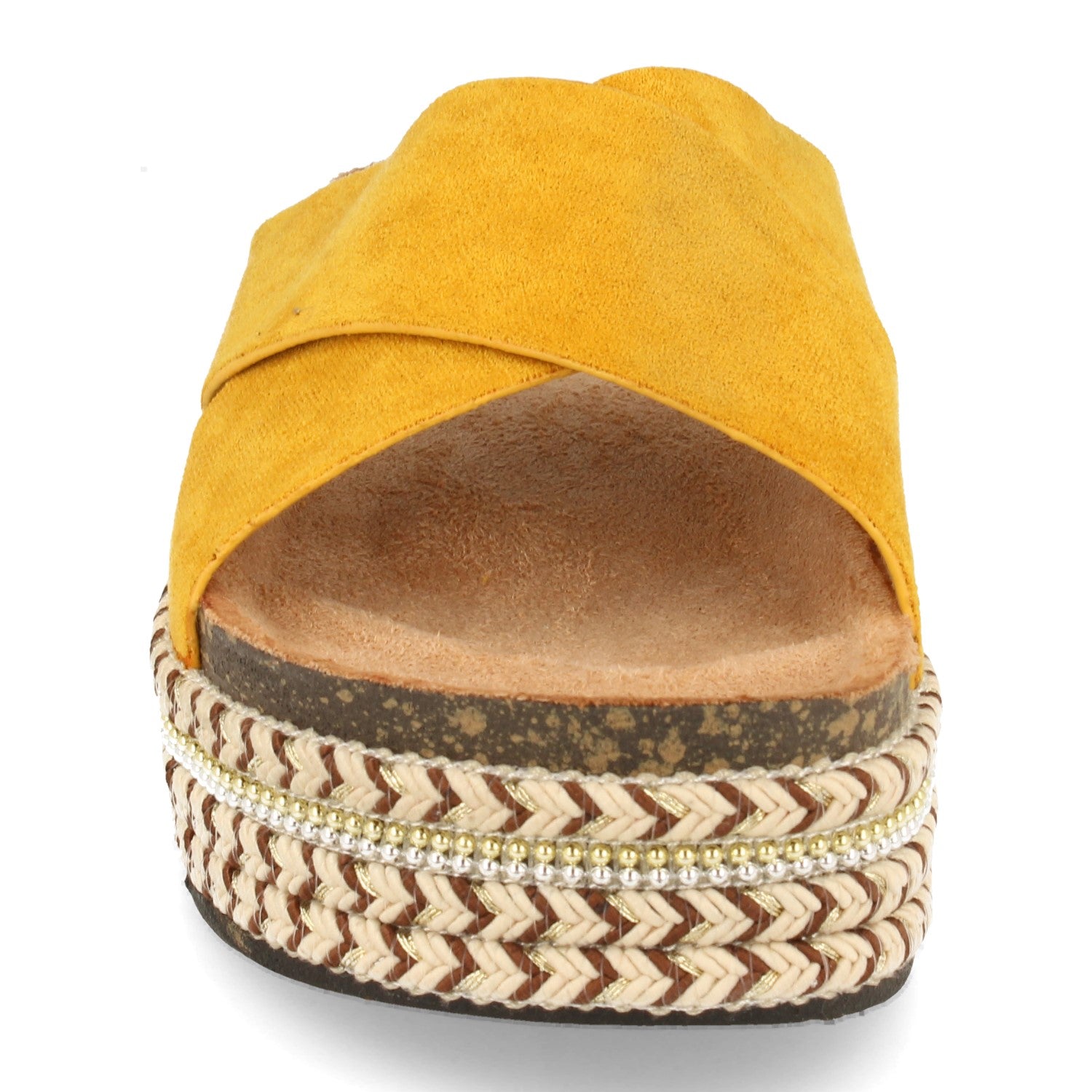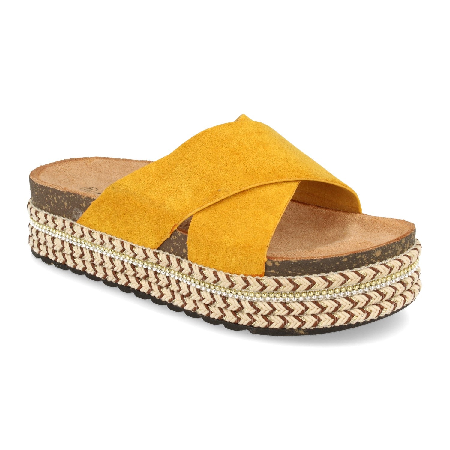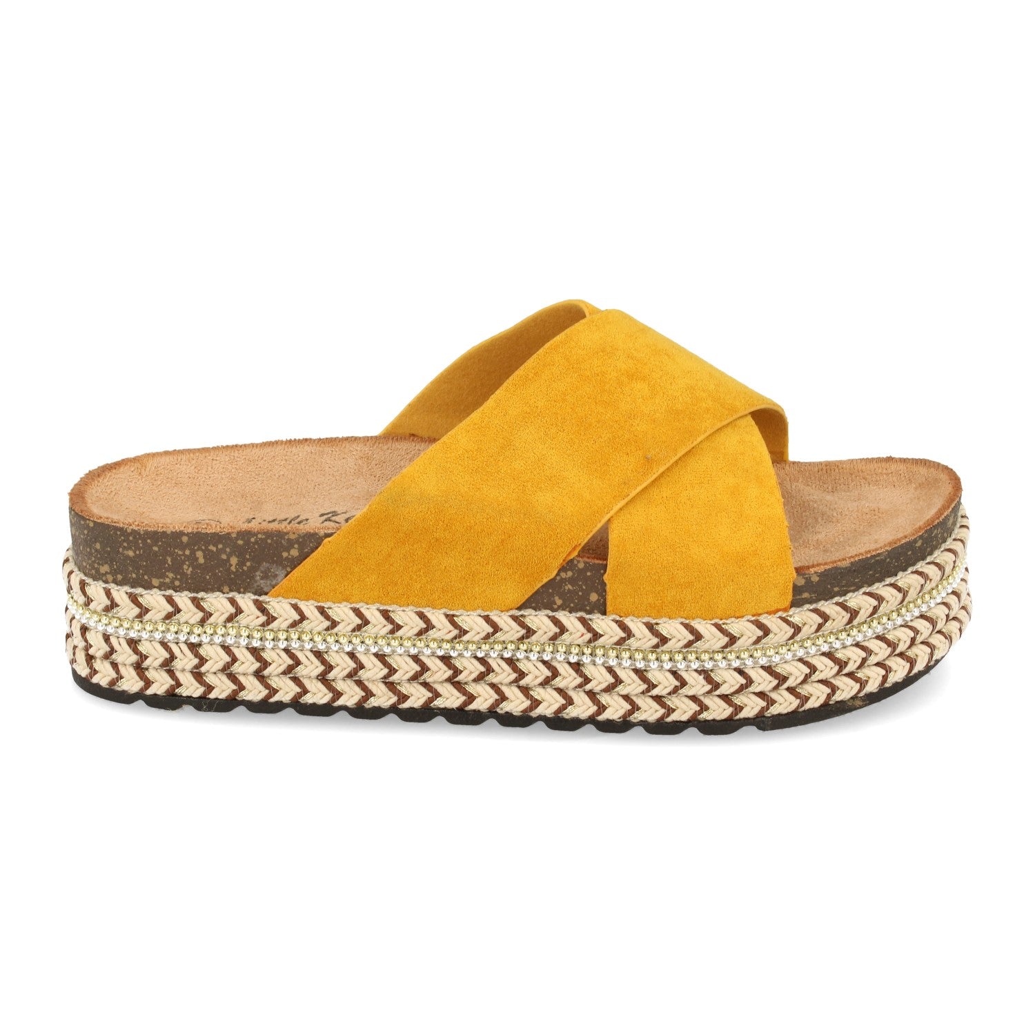 Sandalia de Mujer con Plataforma Doble Pala Cruzada Yute Decorado y Talon Abierto Primavera Verano 2020