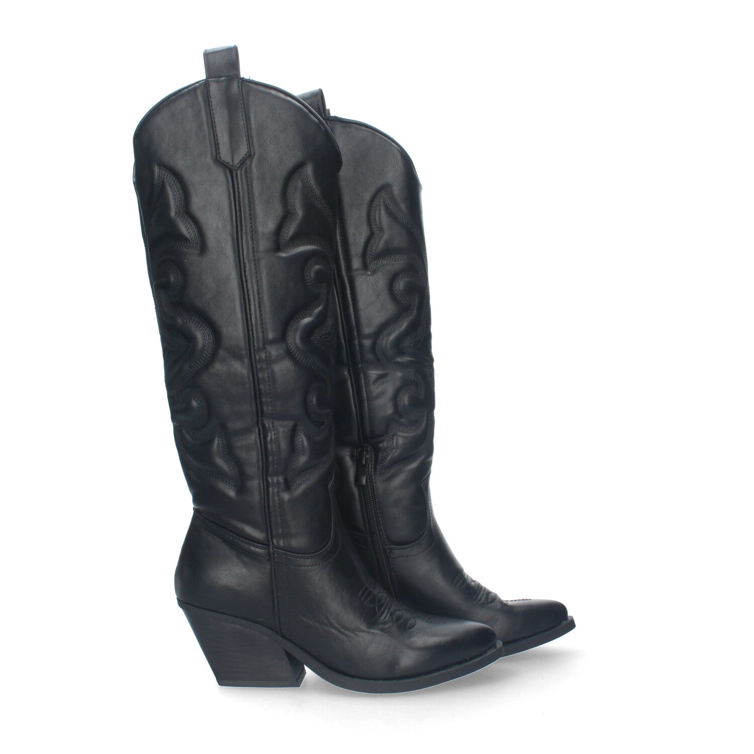 Bota para mujer con tacon cubano con grabado en caña y en la pala estilo cowboy