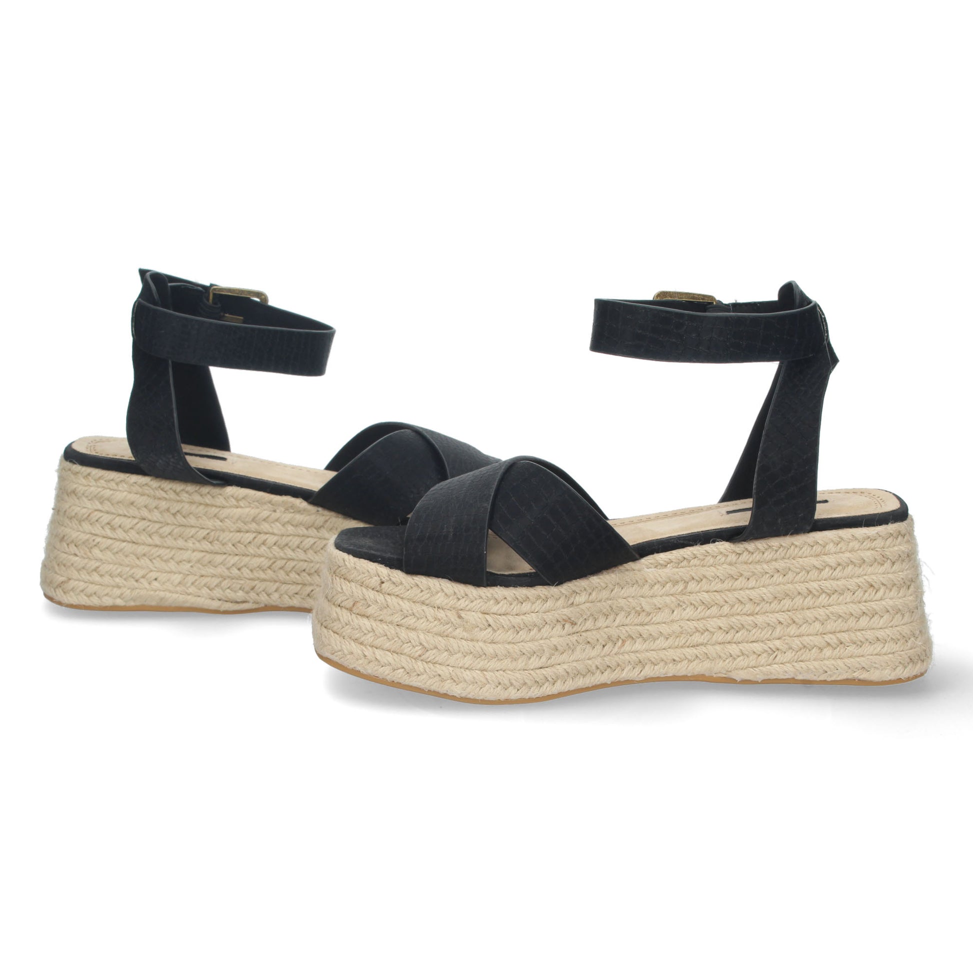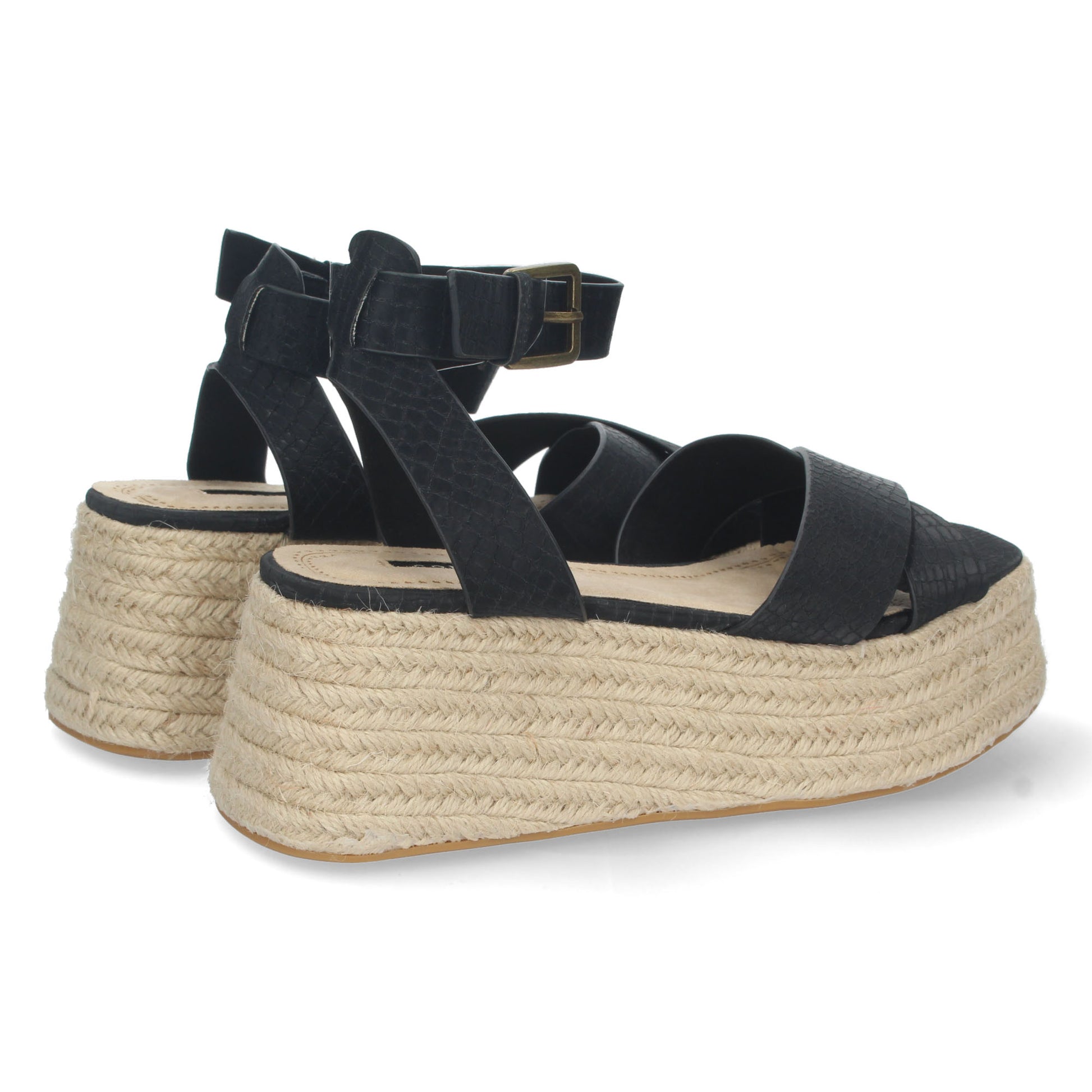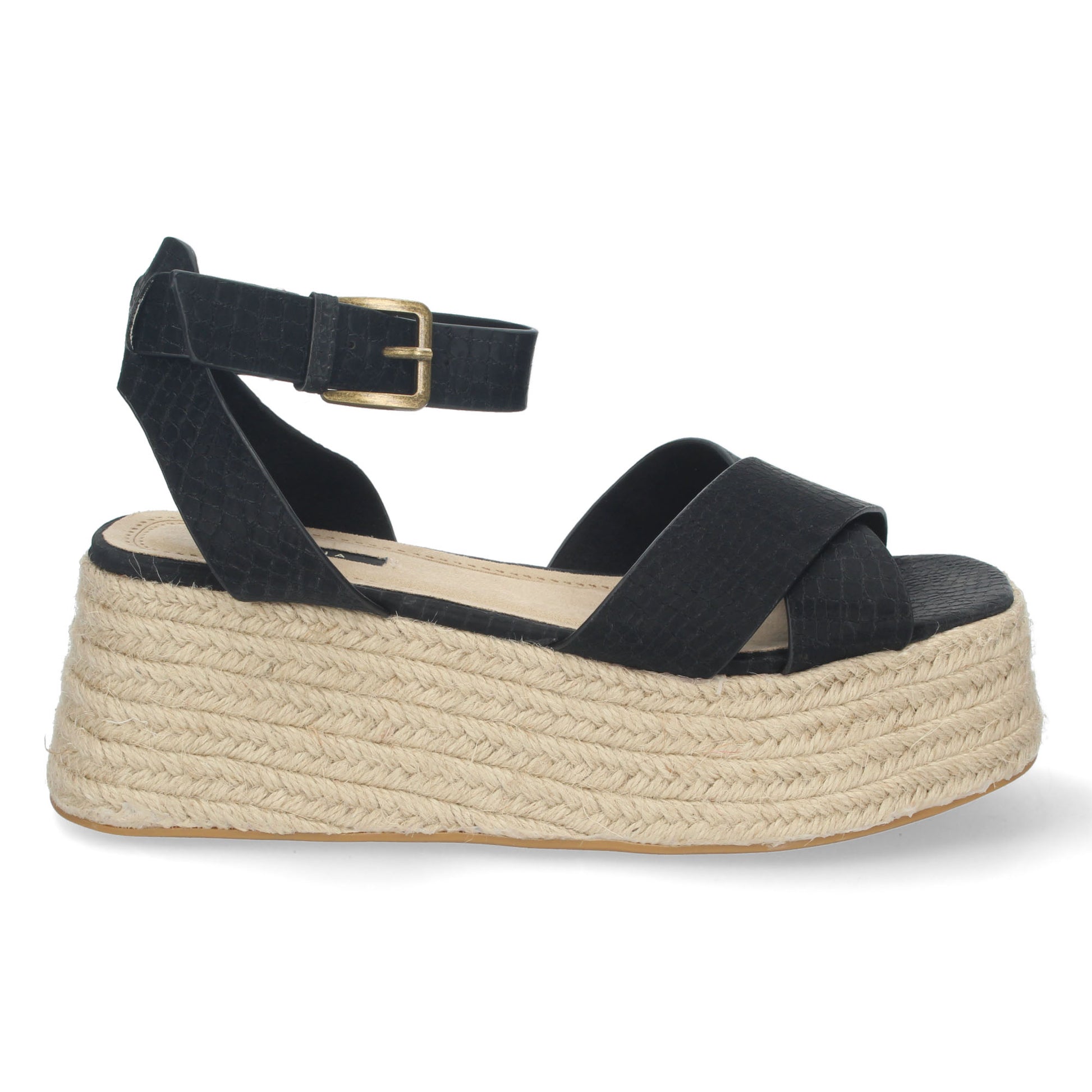 Sandalia de Plataforma para Mujer Comoda Forrada de Yute Palas Cruzadas con Grabado de Serpiente y Cierre de Hebilla