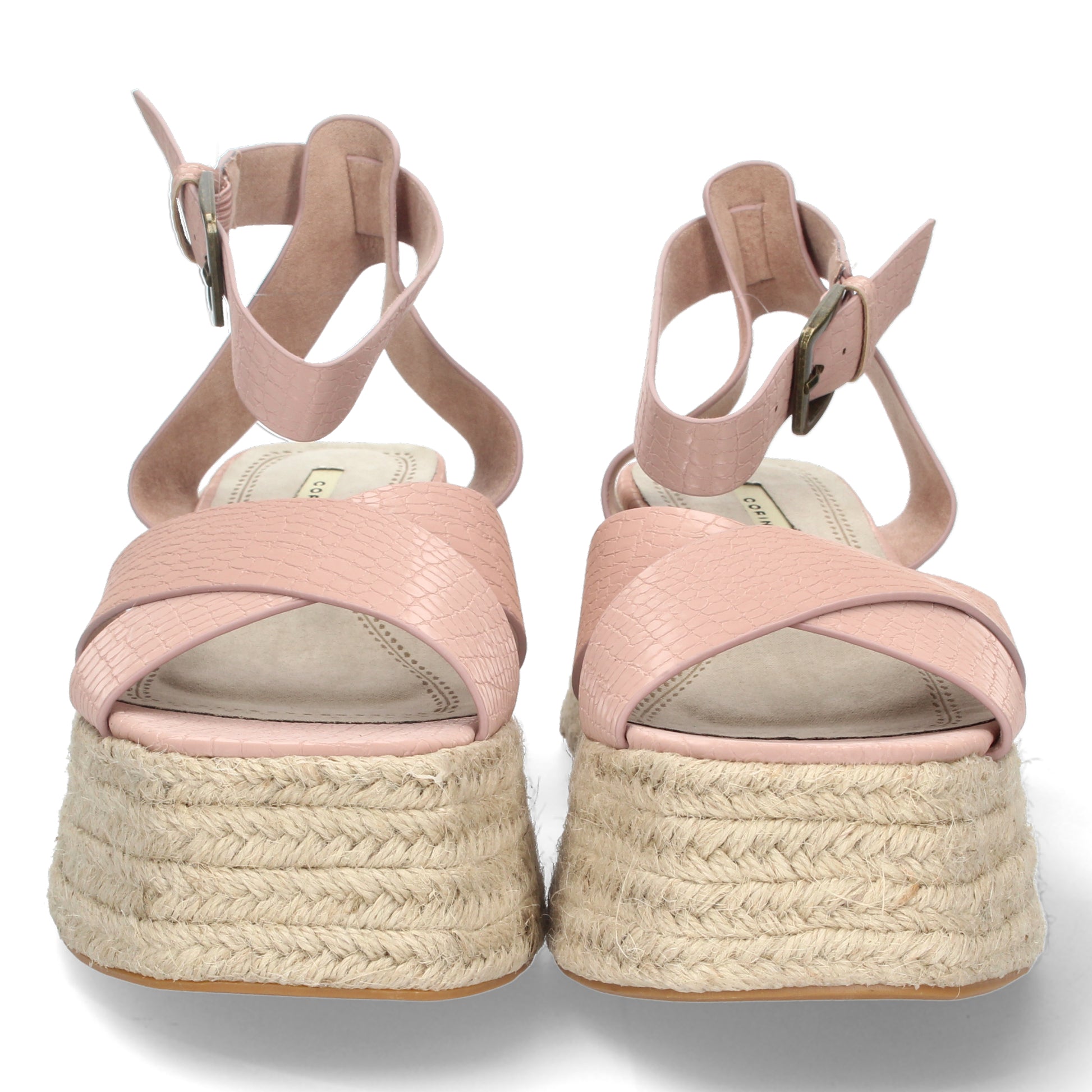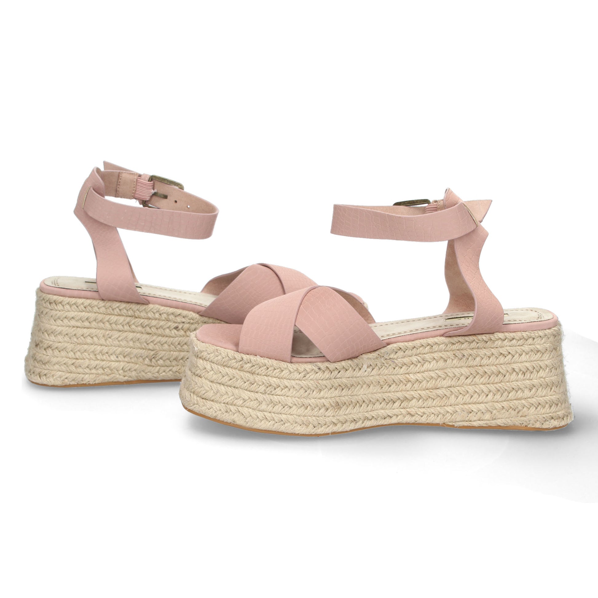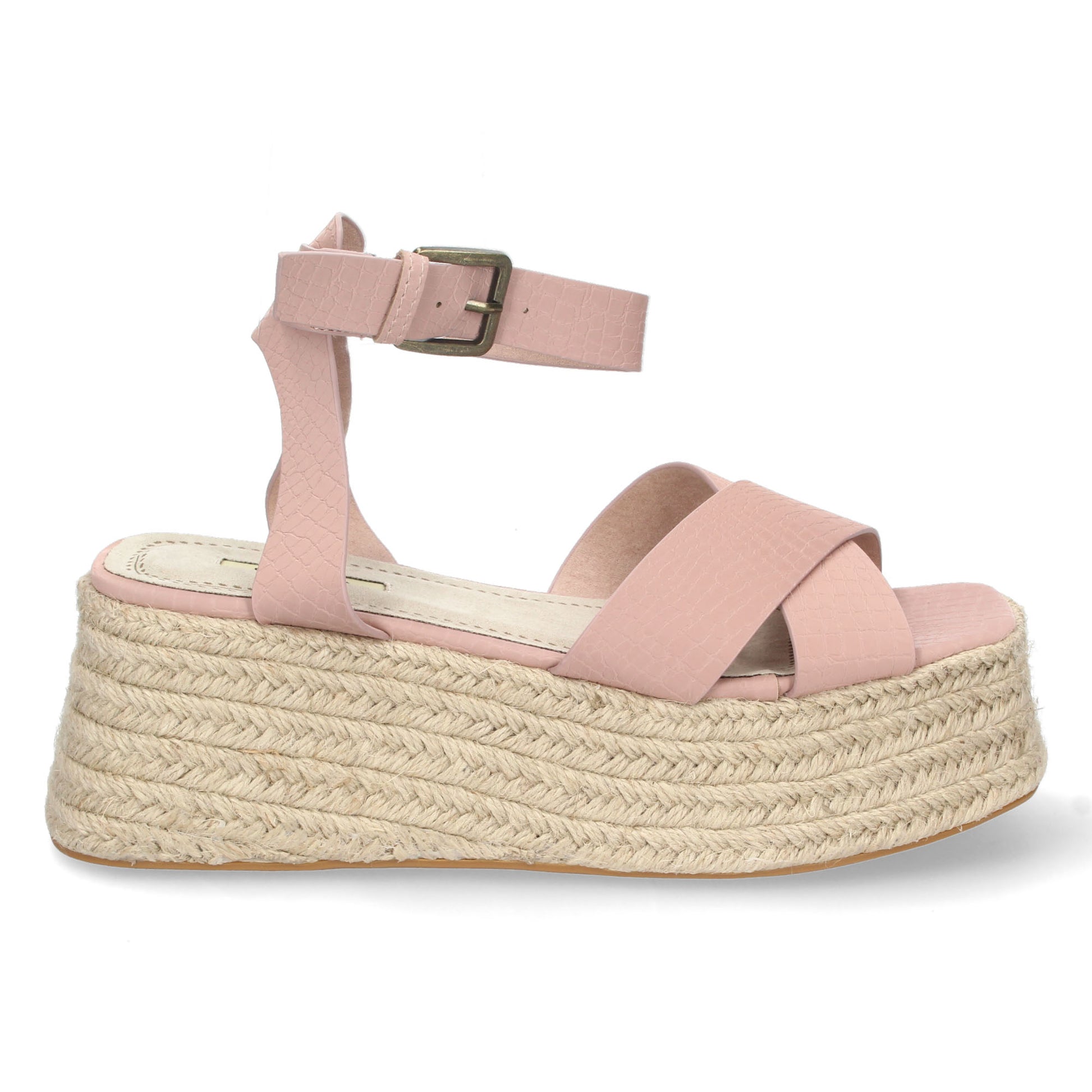 Sandalia de Plataforma para Mujer Comoda Forrada de Yute Palas Cruzadas con Grabado de Serpiente y Cierre de Hebilla