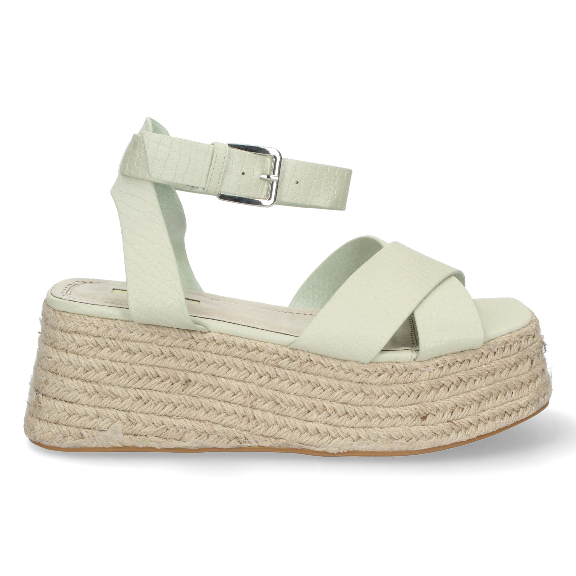 Sandalia de Plataforma para Mujer Comoda Forrada de Yute Palas Cruzadas con Grabado de Serpiente y Cierre de Hebilla