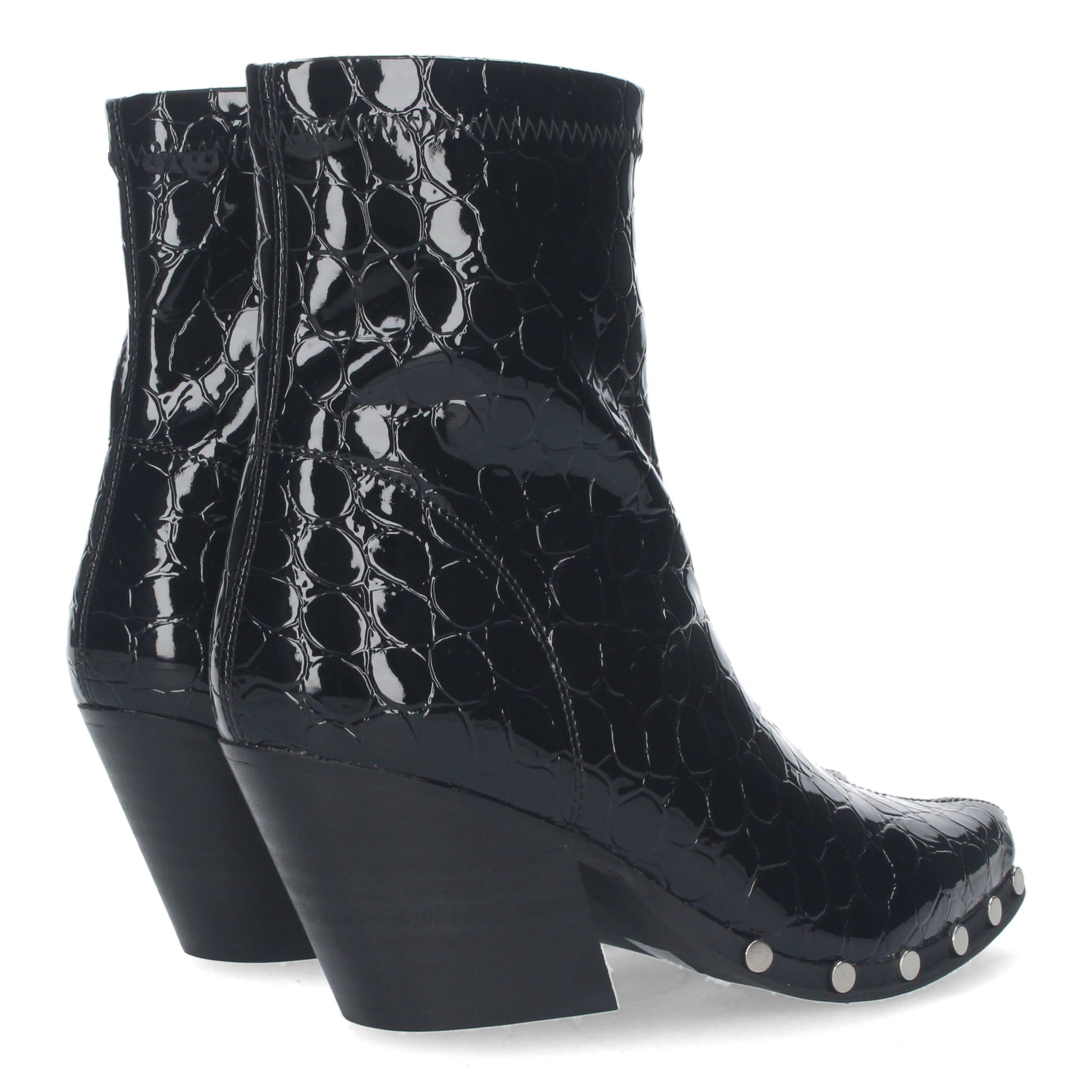 Botín cowboy punta redonda con imitiación piel de cocodrilo remates en la suela y cierre de cremallera