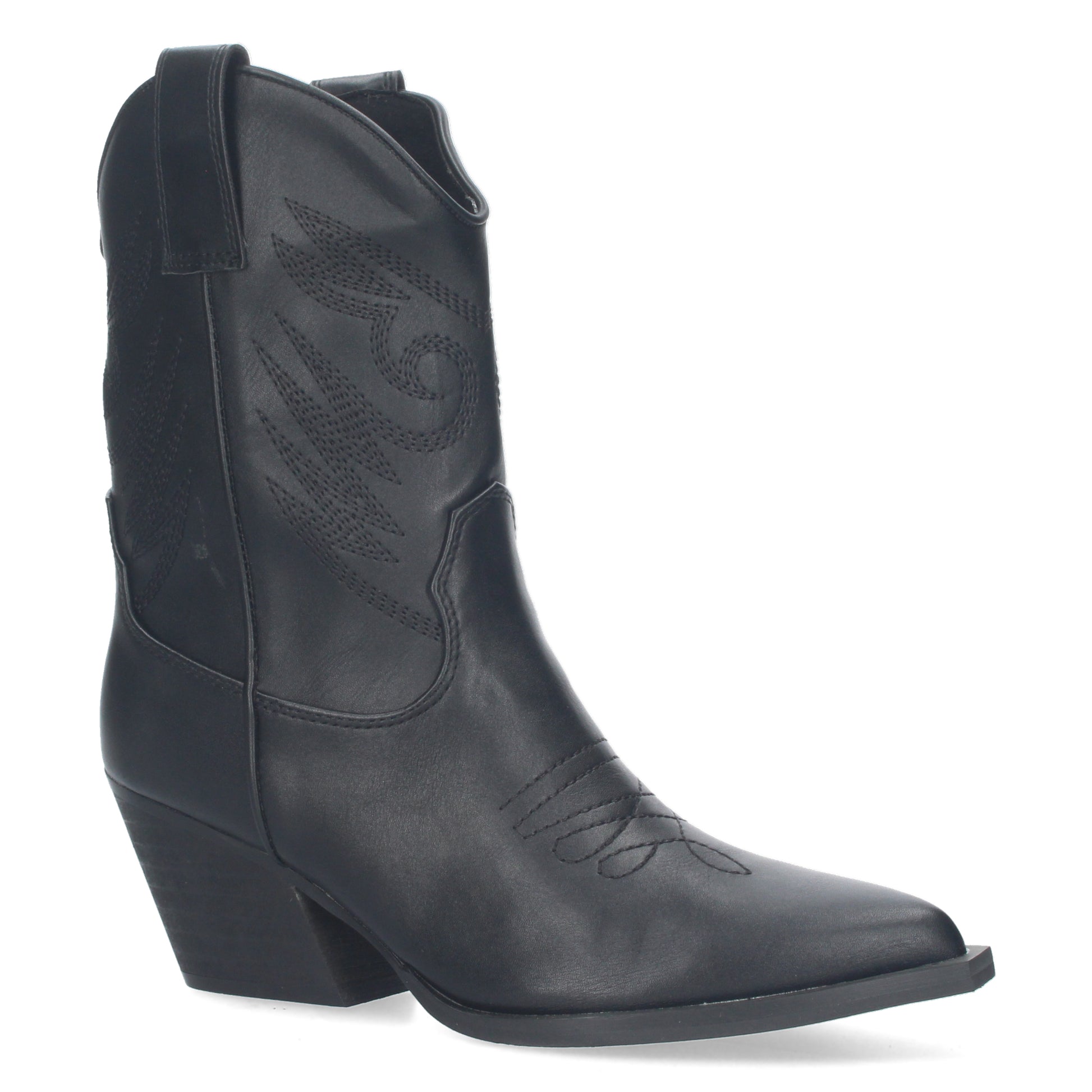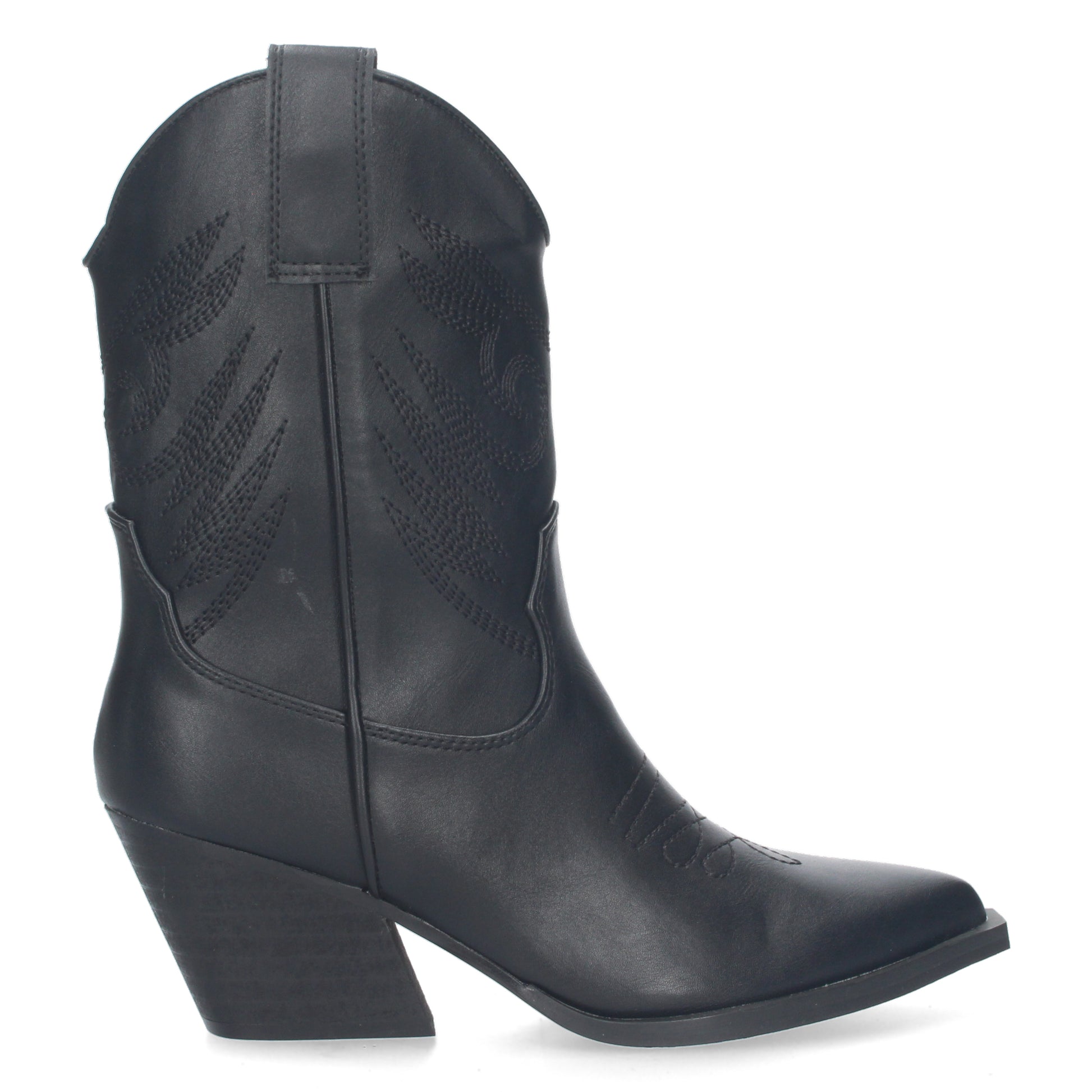 Botin de tacon cubano para mujer material aterciopelado estilo cowboy borado en caña y pala y cierre de cremallera.