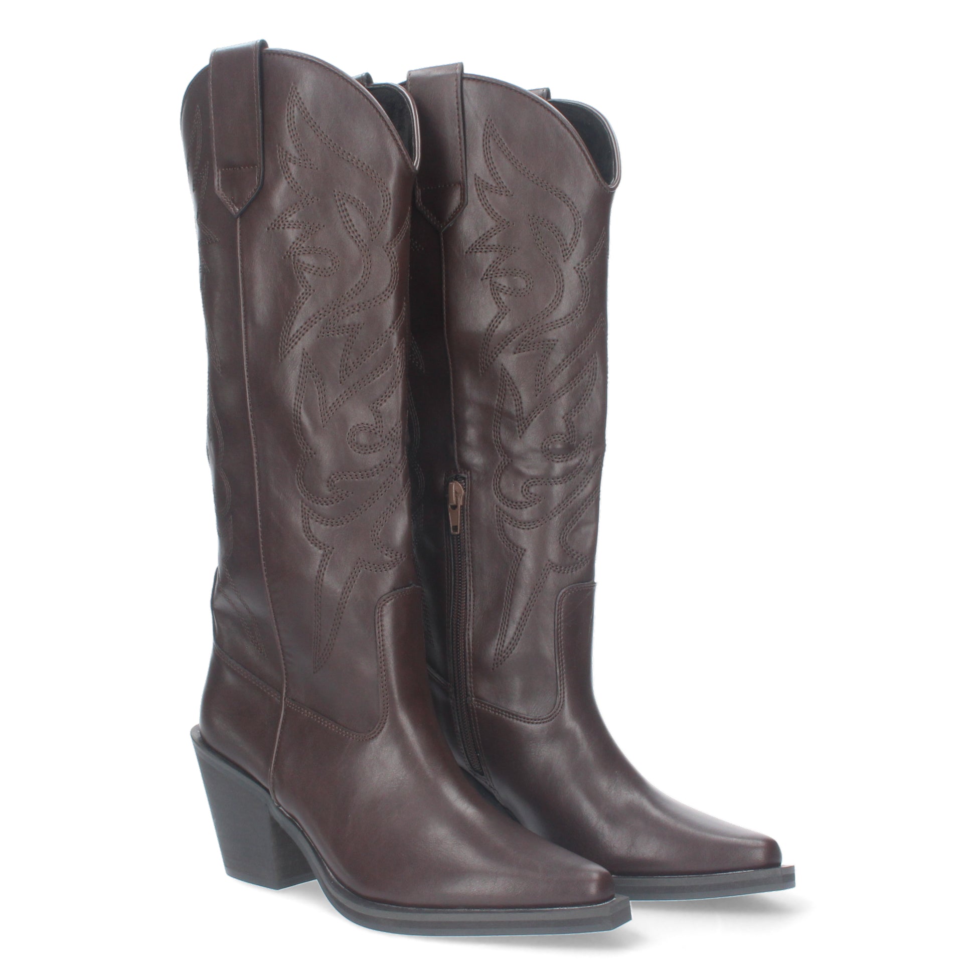 Bota de tacon cubano para mujer estilo cowboy bordado en caña y cierre de cremallera.