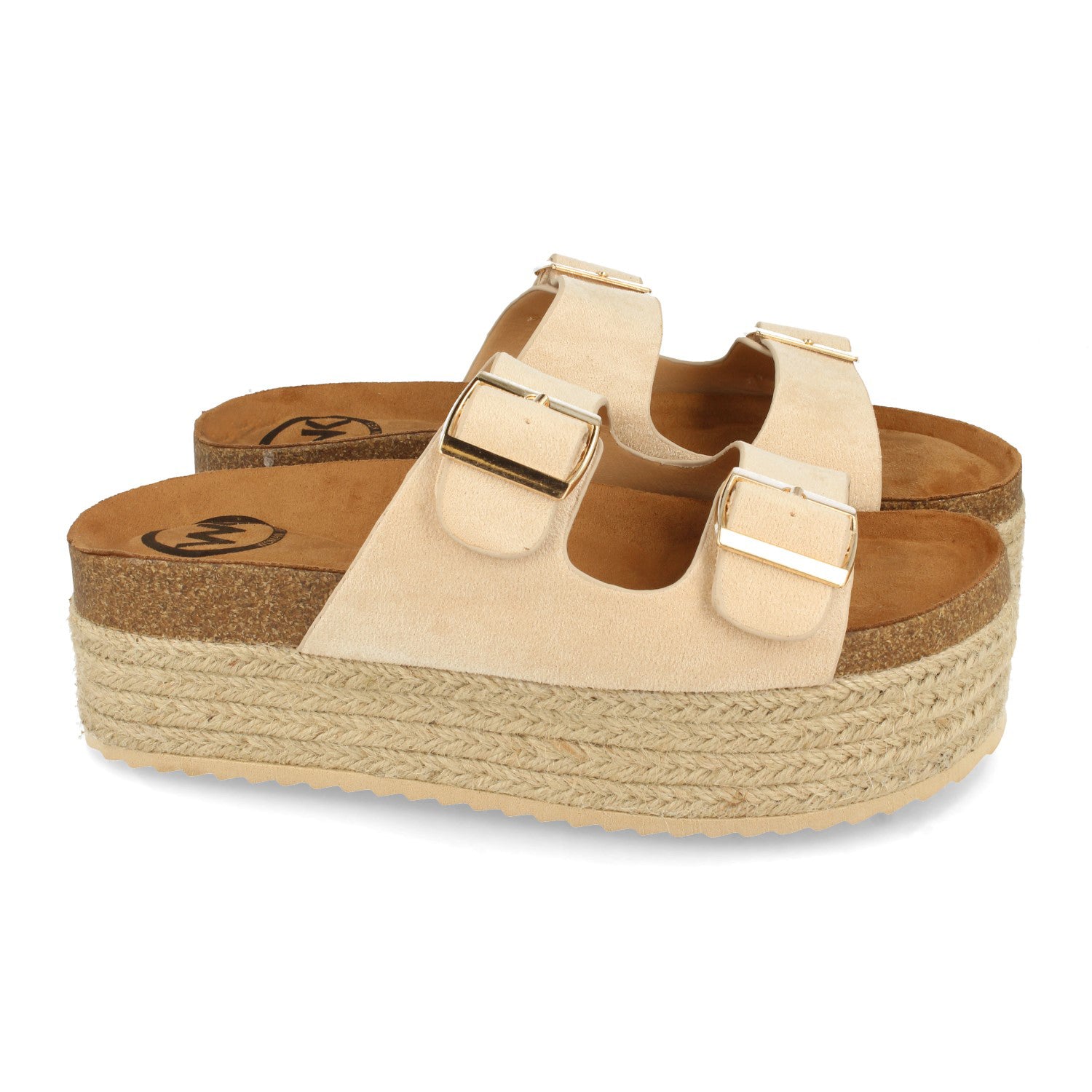 Sandalia de Plataforma para Mujer Forrado de Yute con Planta Anatomica y Hebillas en Pala Primavera Verano 2021