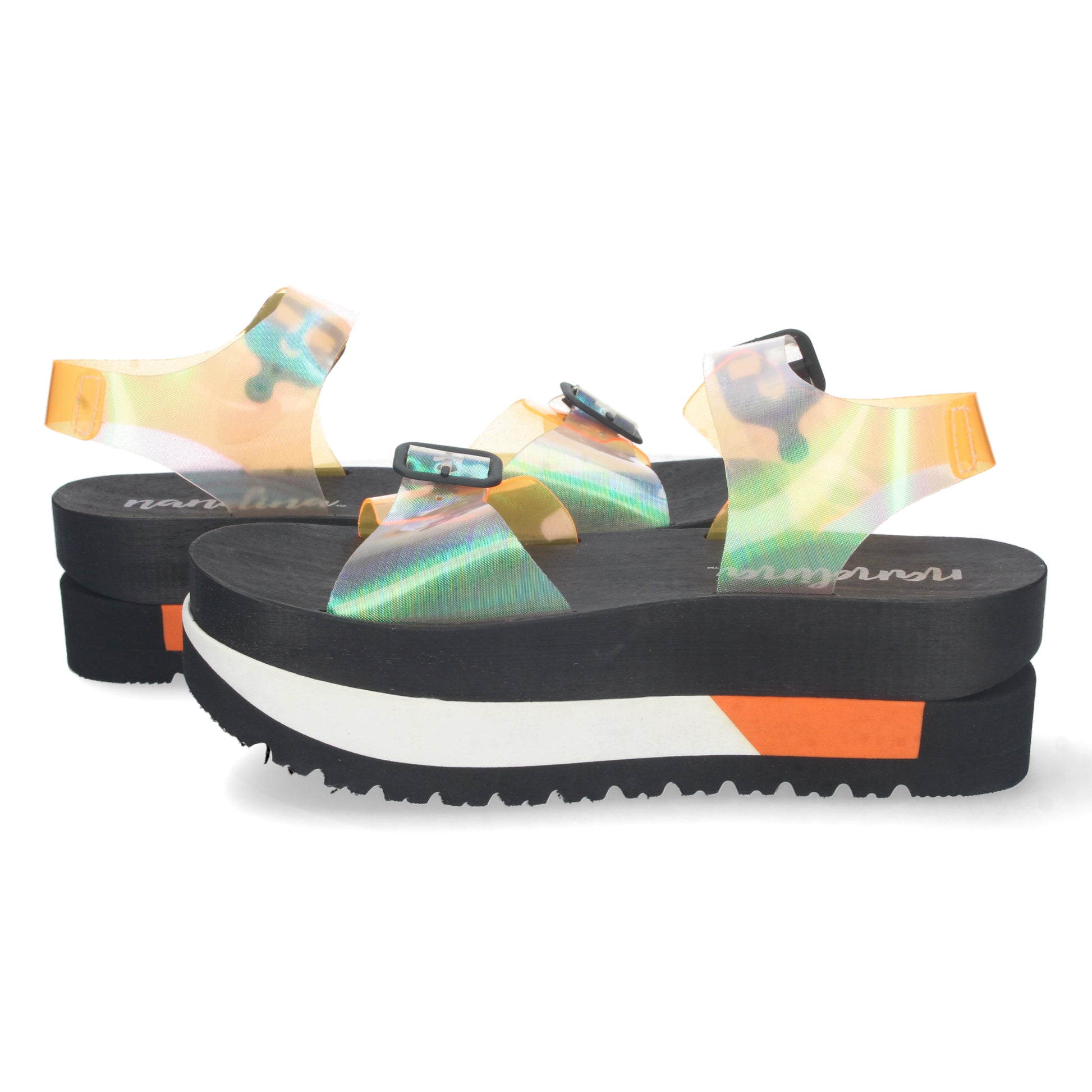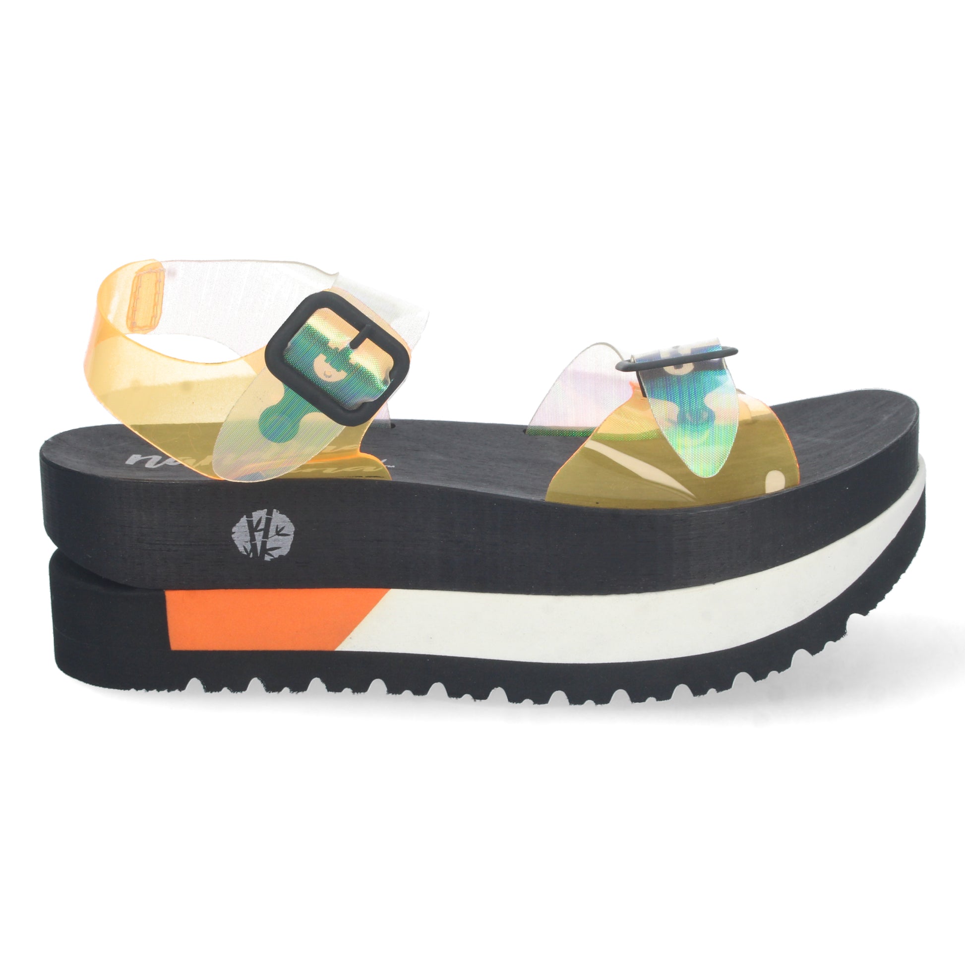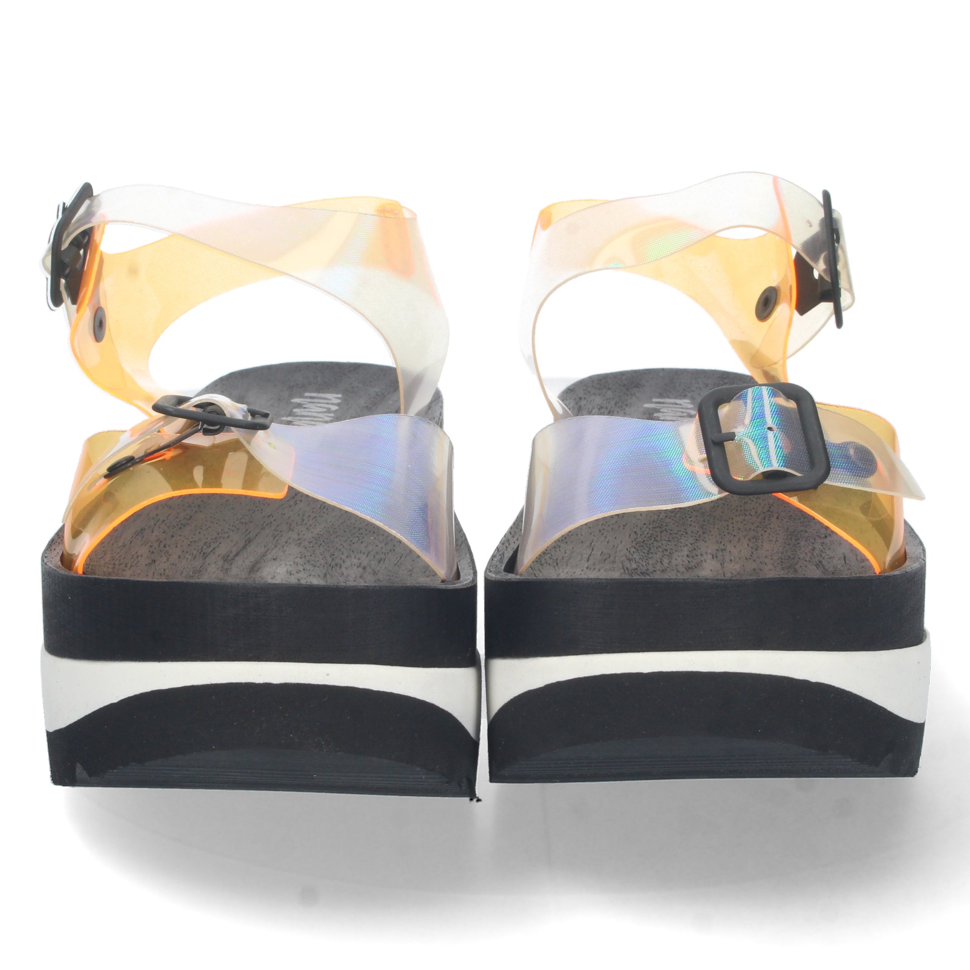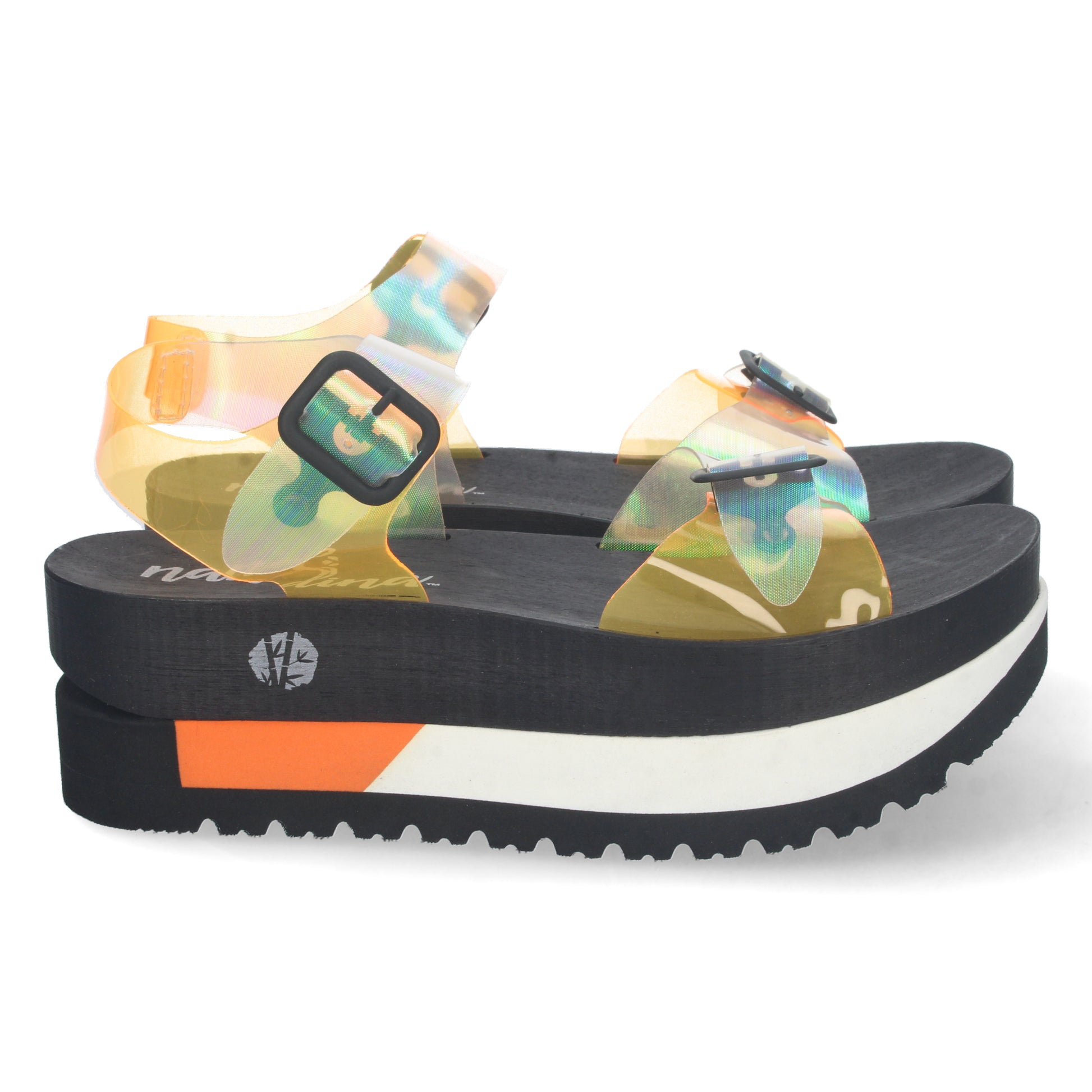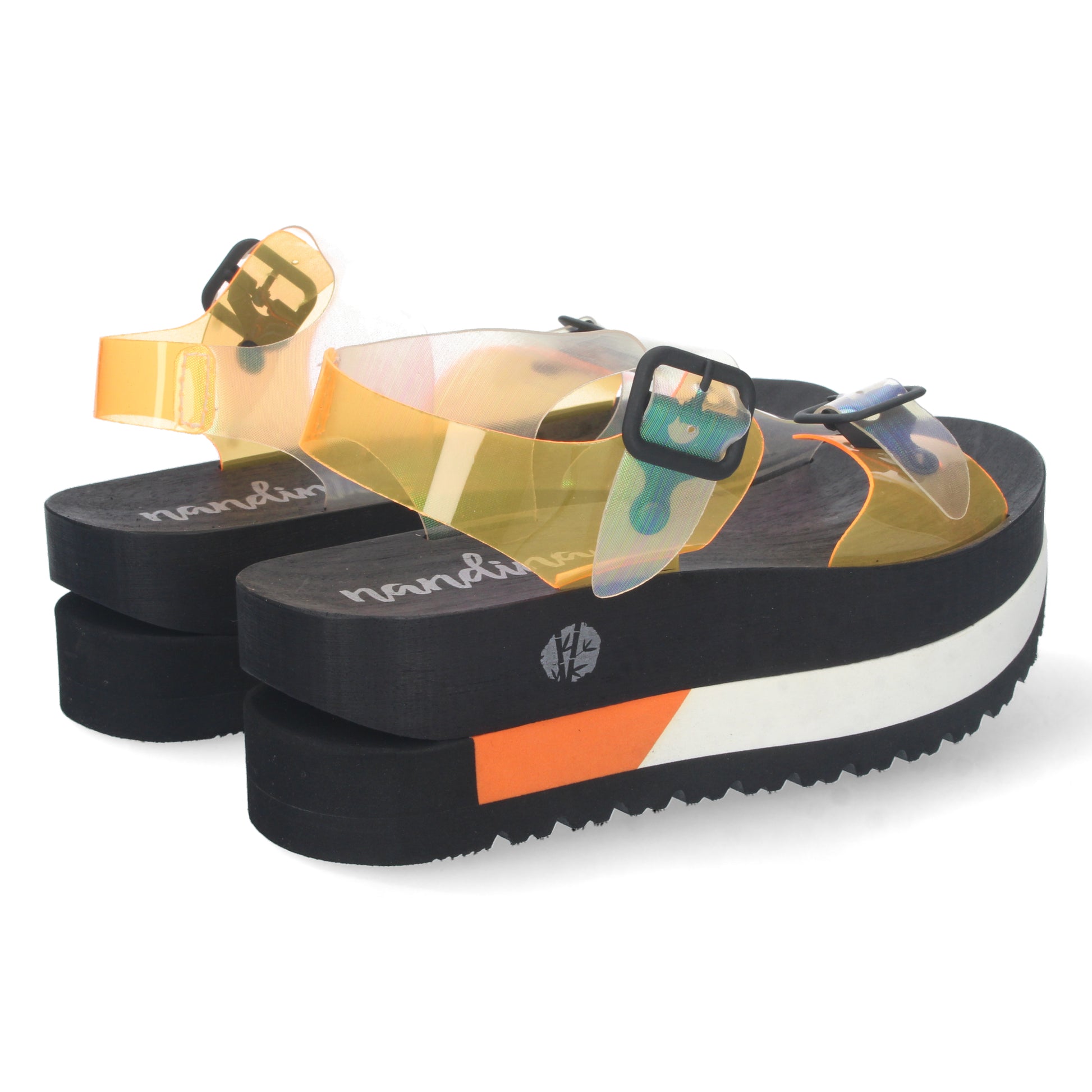 Sandalia de Plataforma para Mujer Comoda Planta de Madera y Eva Vinilo de Color y Cierre de Hebilla