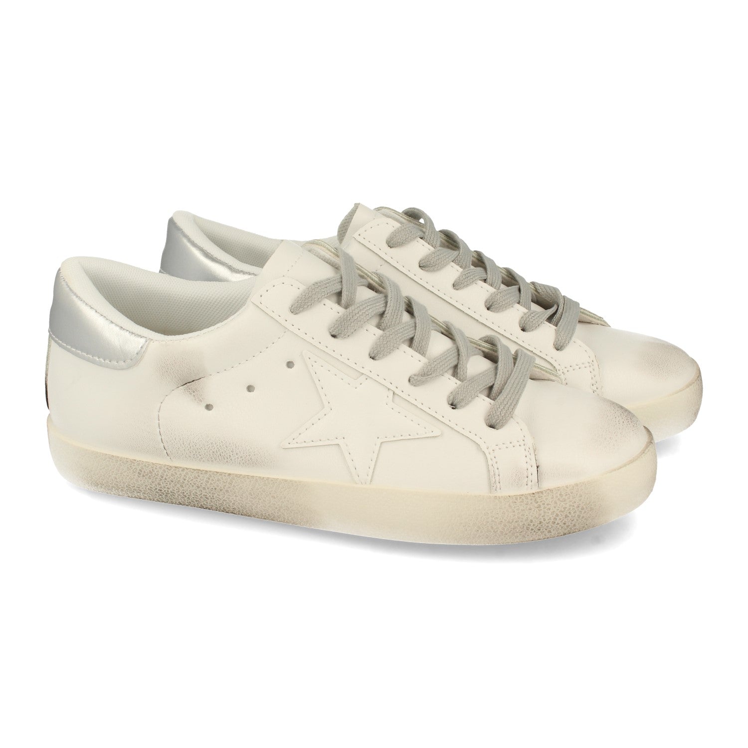 Zapatilla Plana para Mujer Efecto Desgastado Detalle en el Talón y Cierre de Cordones Primavera Verano 2021