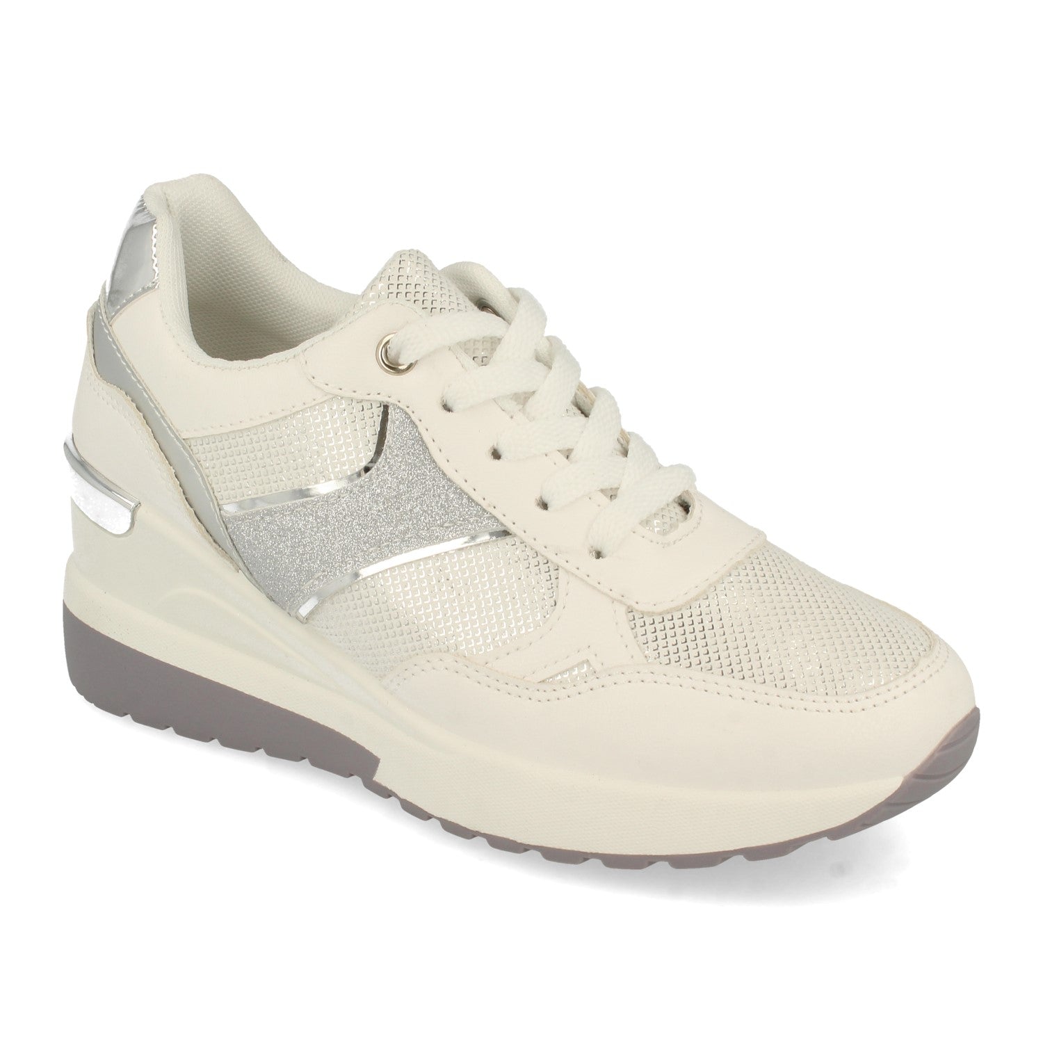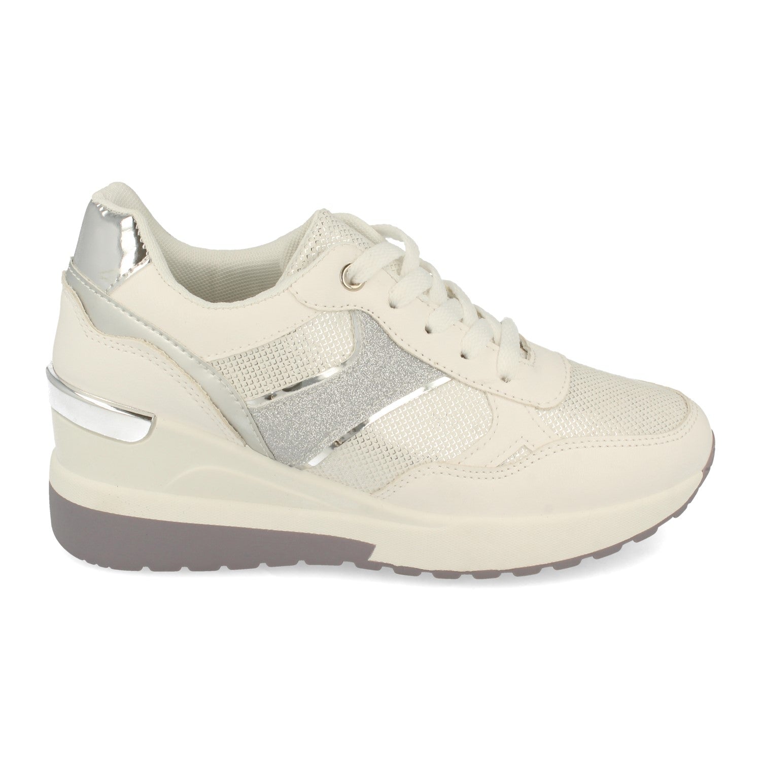 Zapatilla de Cuña para Mujer Franja con Brillo en el Costado y Cierre de Cordones Primavera Verano 2021