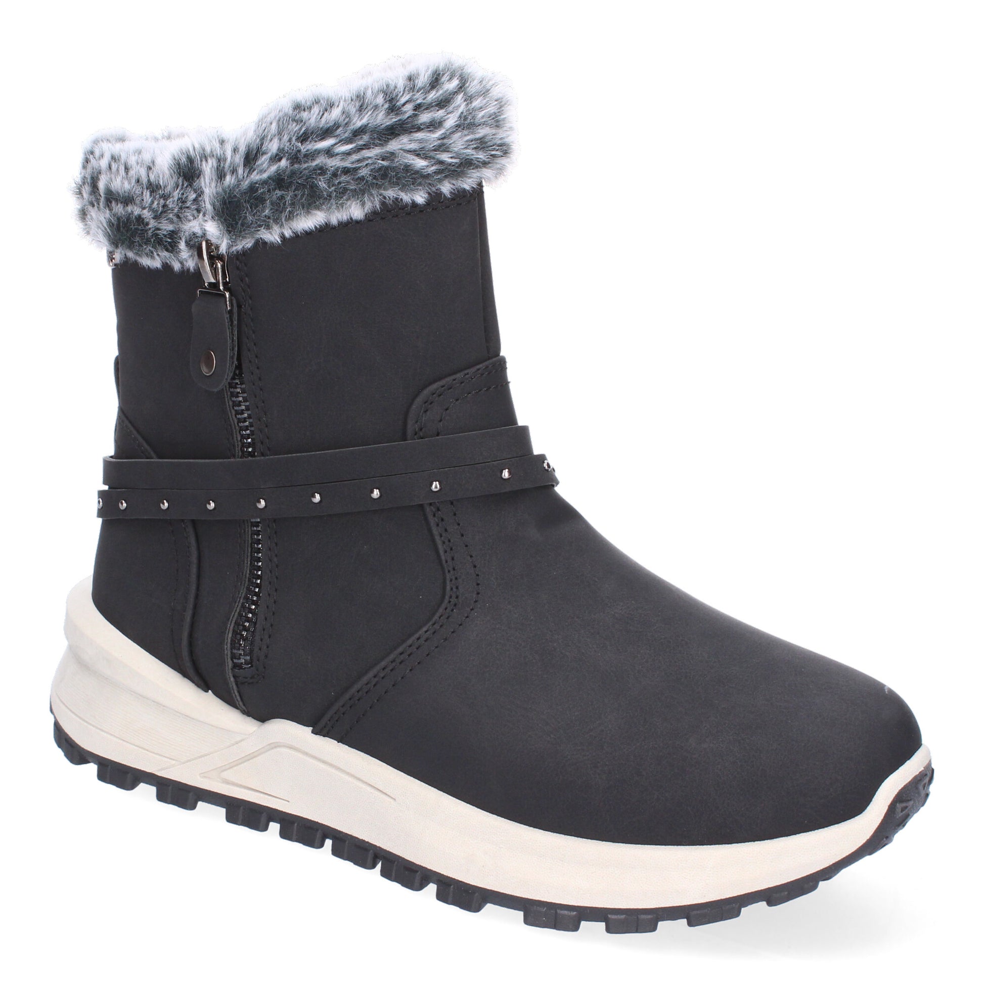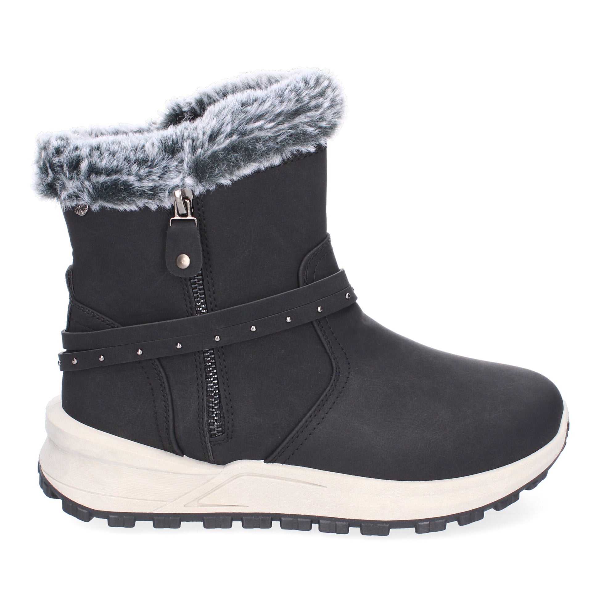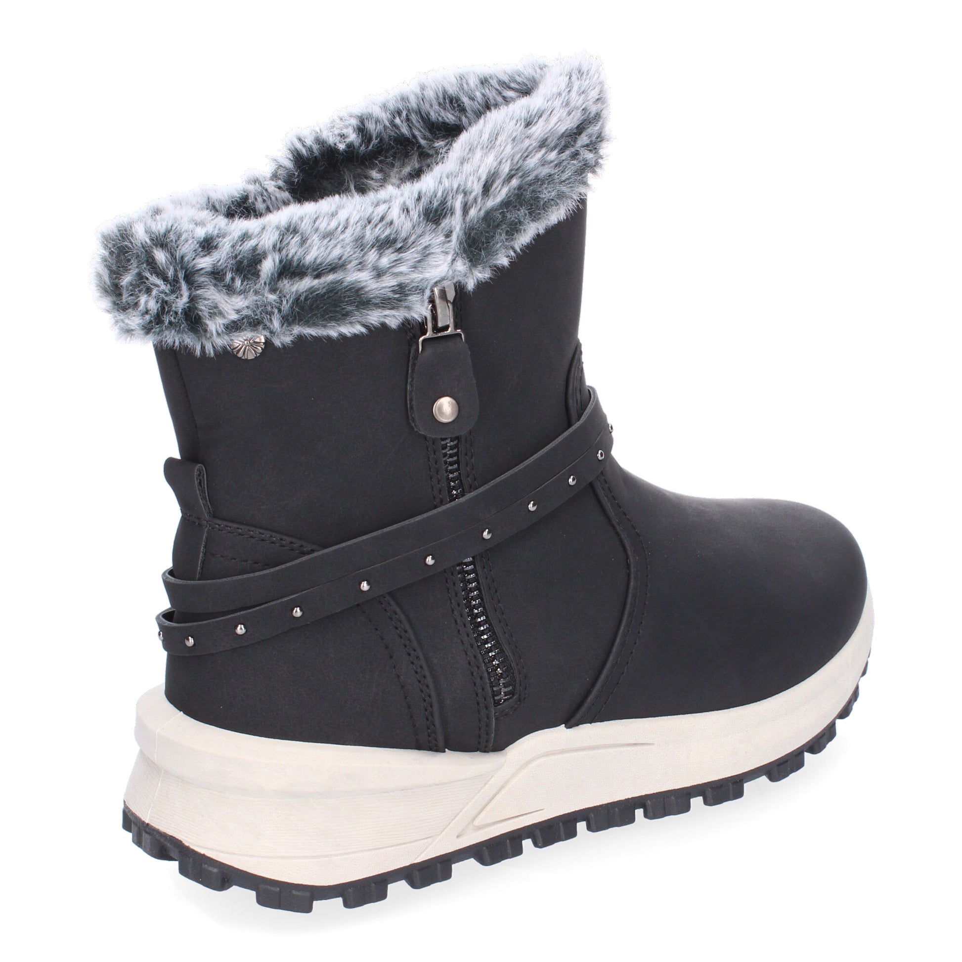 Botines de Invierno Planos para Mujer Comodos y Elegantes Diseño Moderno Detalle de Pelo y Adorno de Correa Cierre de Cremallera.