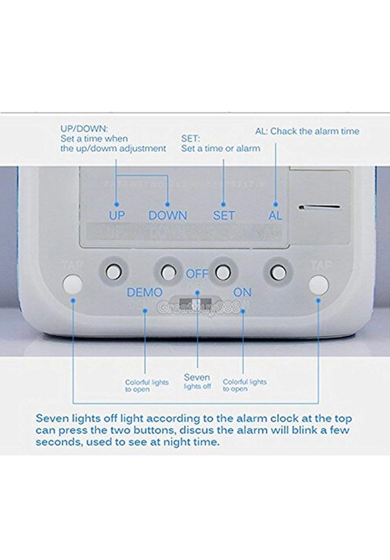 PRECIOSO RELOJ DESPERTADOR CON LUCES LED PILAS INCLUIDAS VARIAS FUNCIONES ALARMA TEMPERATURA DIAS AÑO Y DEMAS
