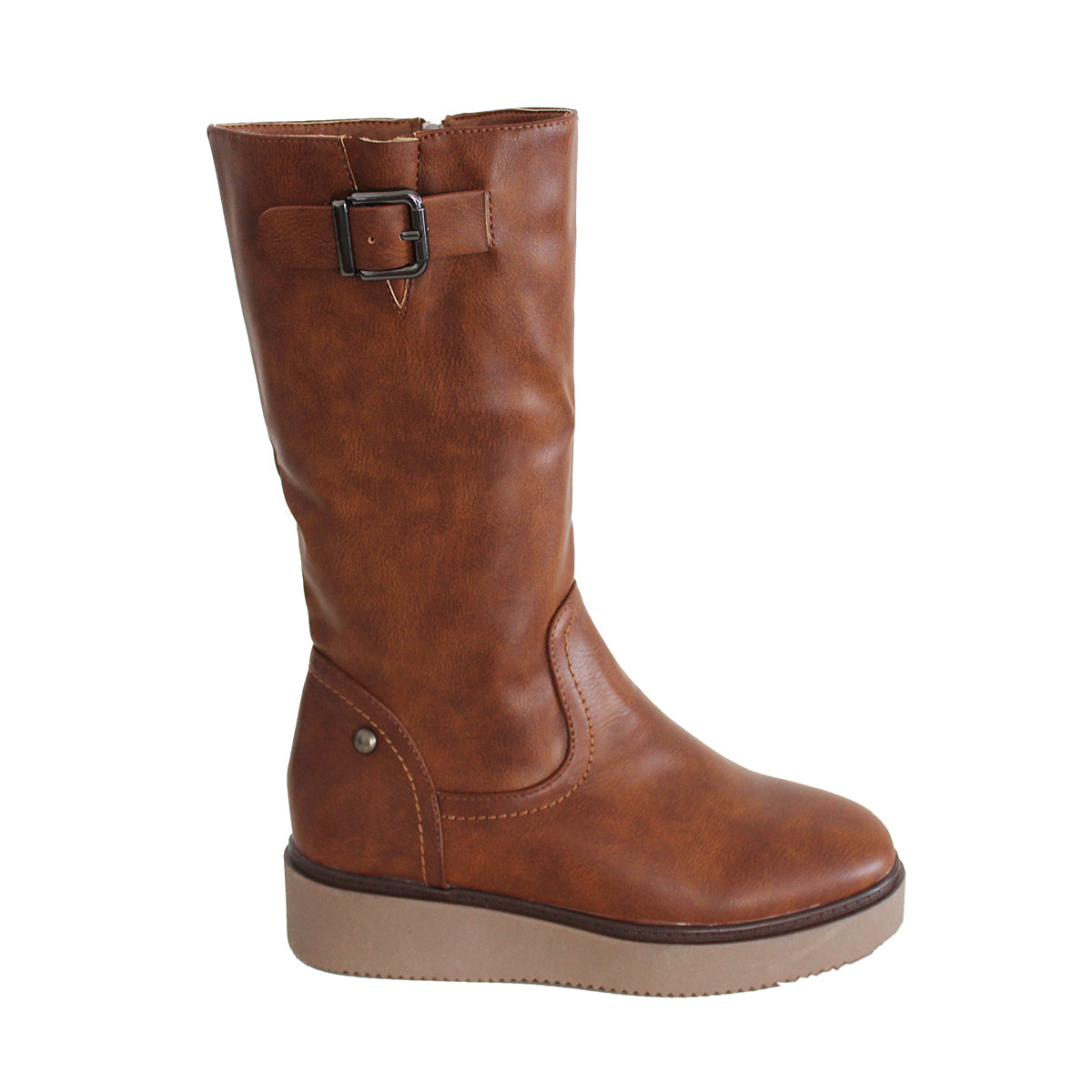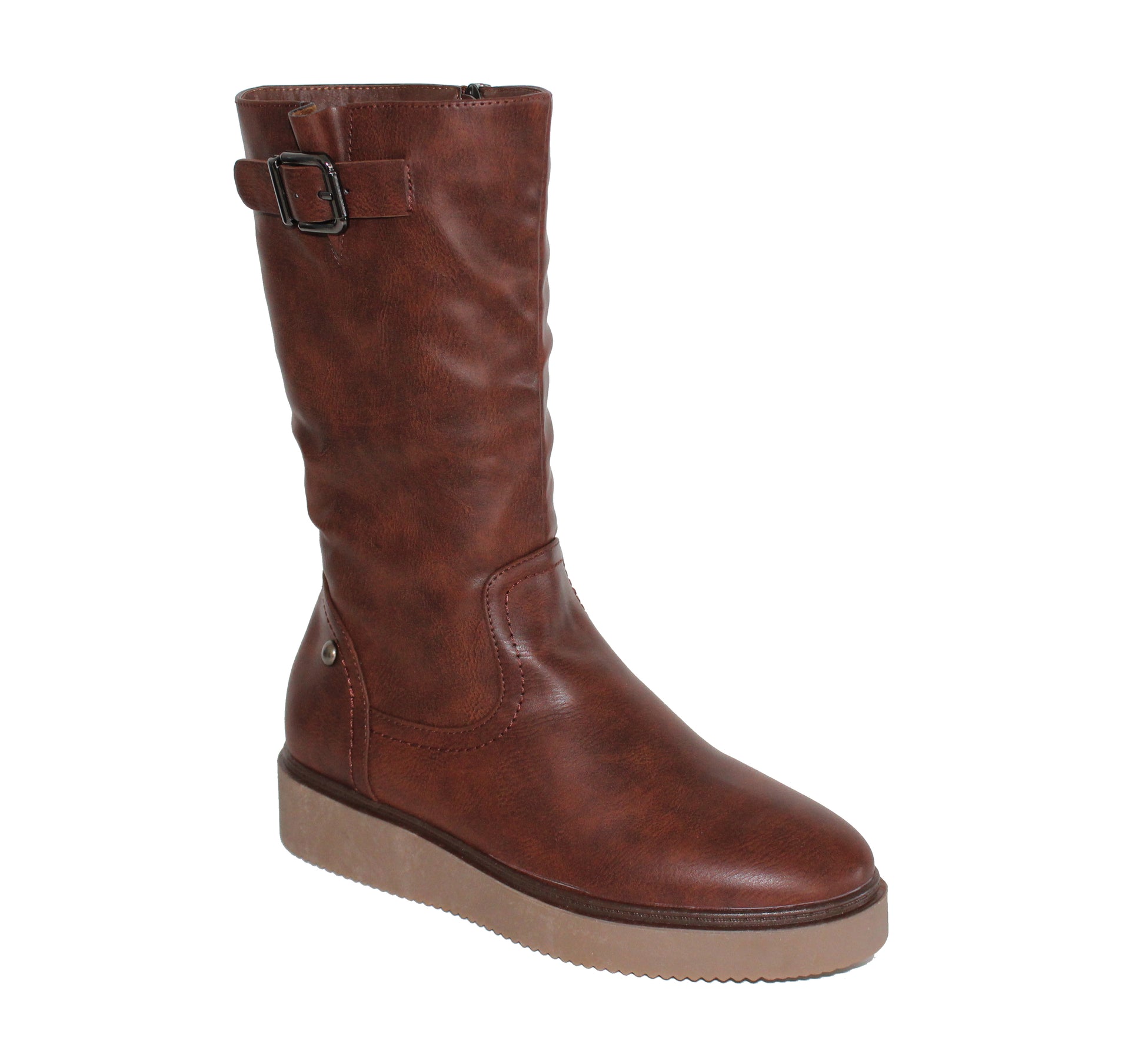 Bota de mujer Con Plataforma Baja Comoda con Cremallera y Hebilla. Otoño invierno 2019
