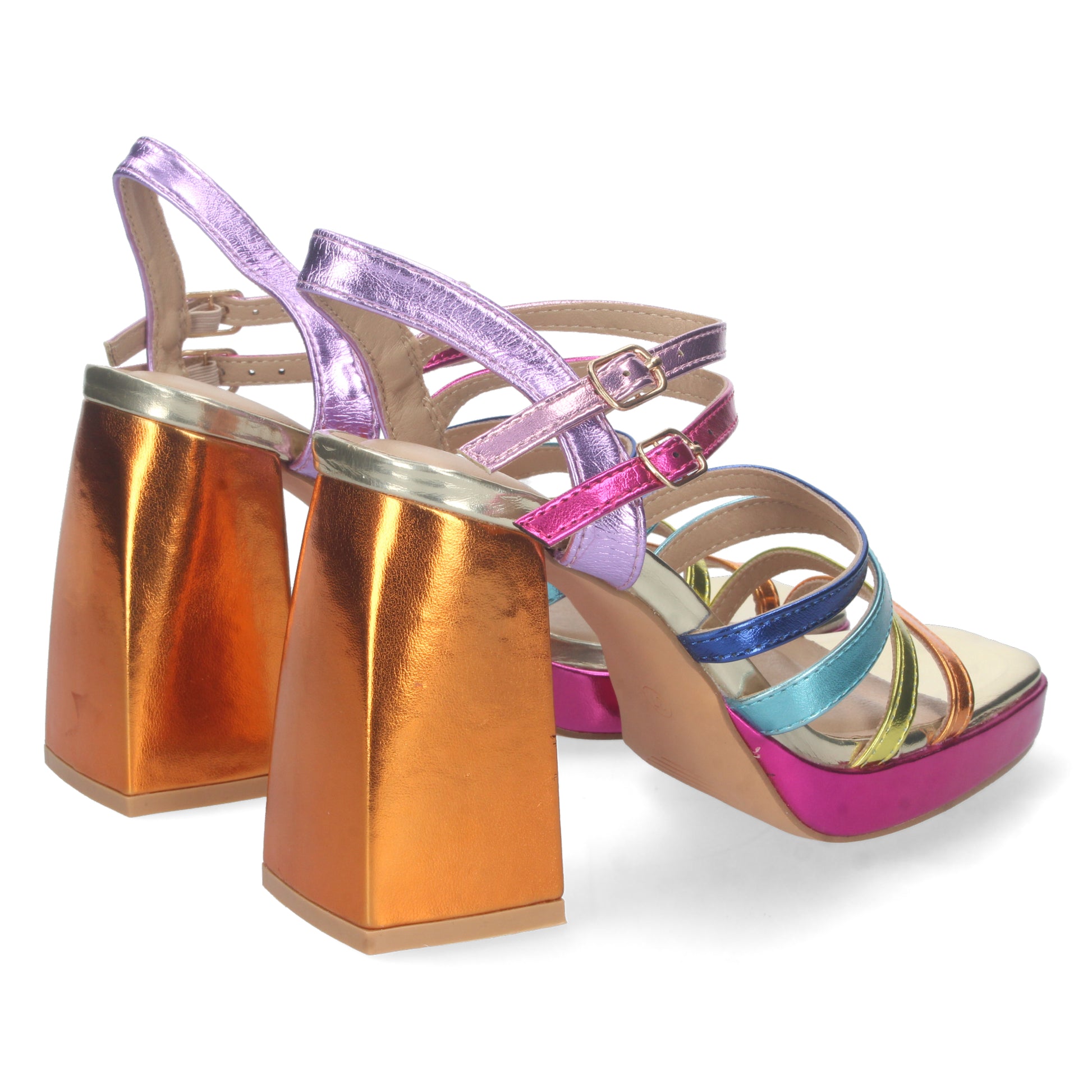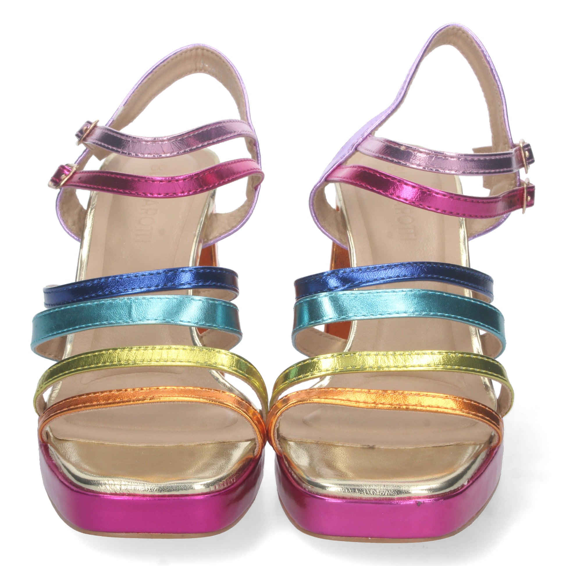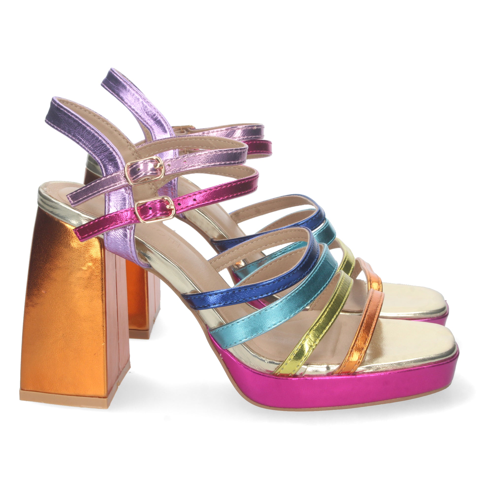 Sandalia de Tacon para Mujer Comoda con Pala de Tiras Multicolor y Doble Cierre de Hebilla