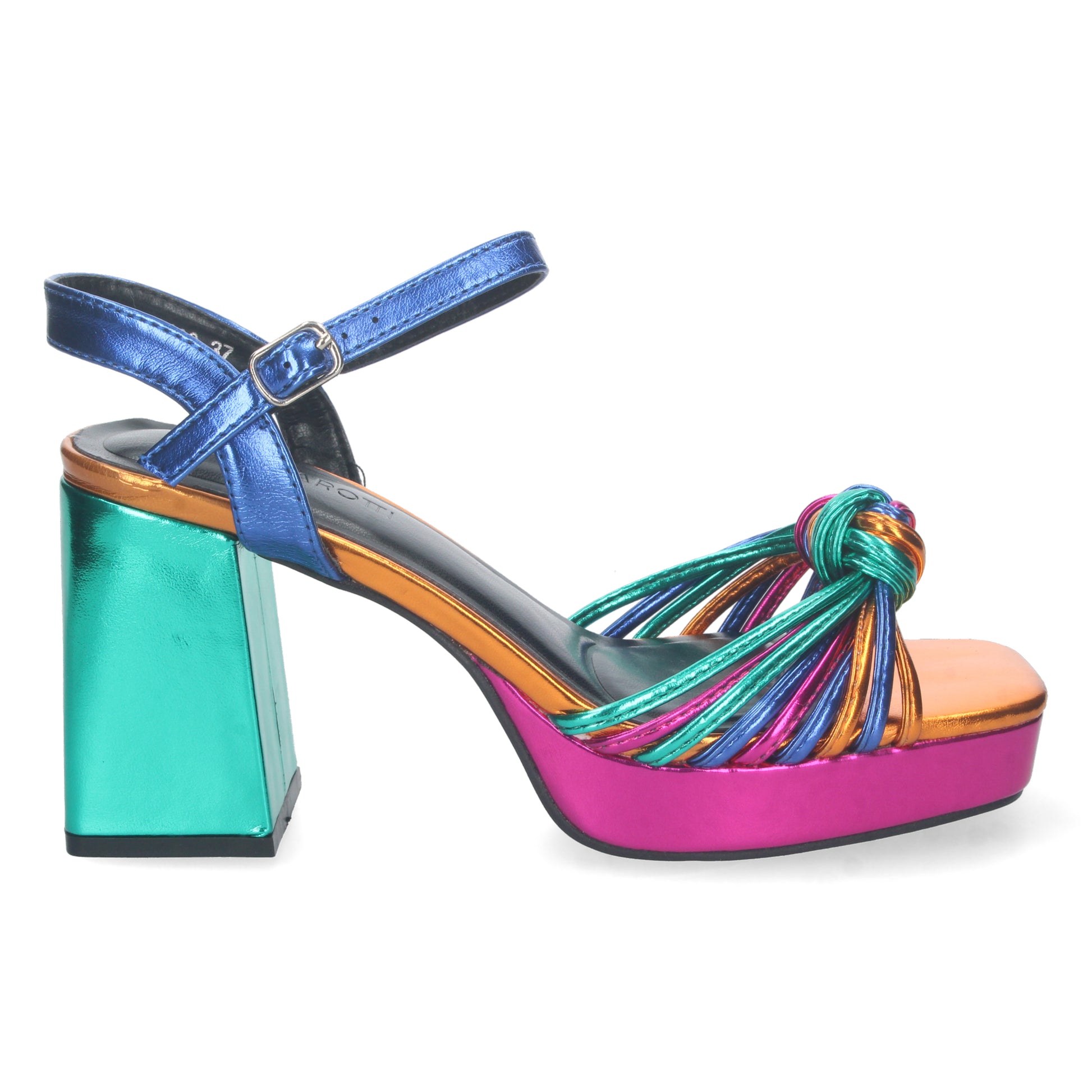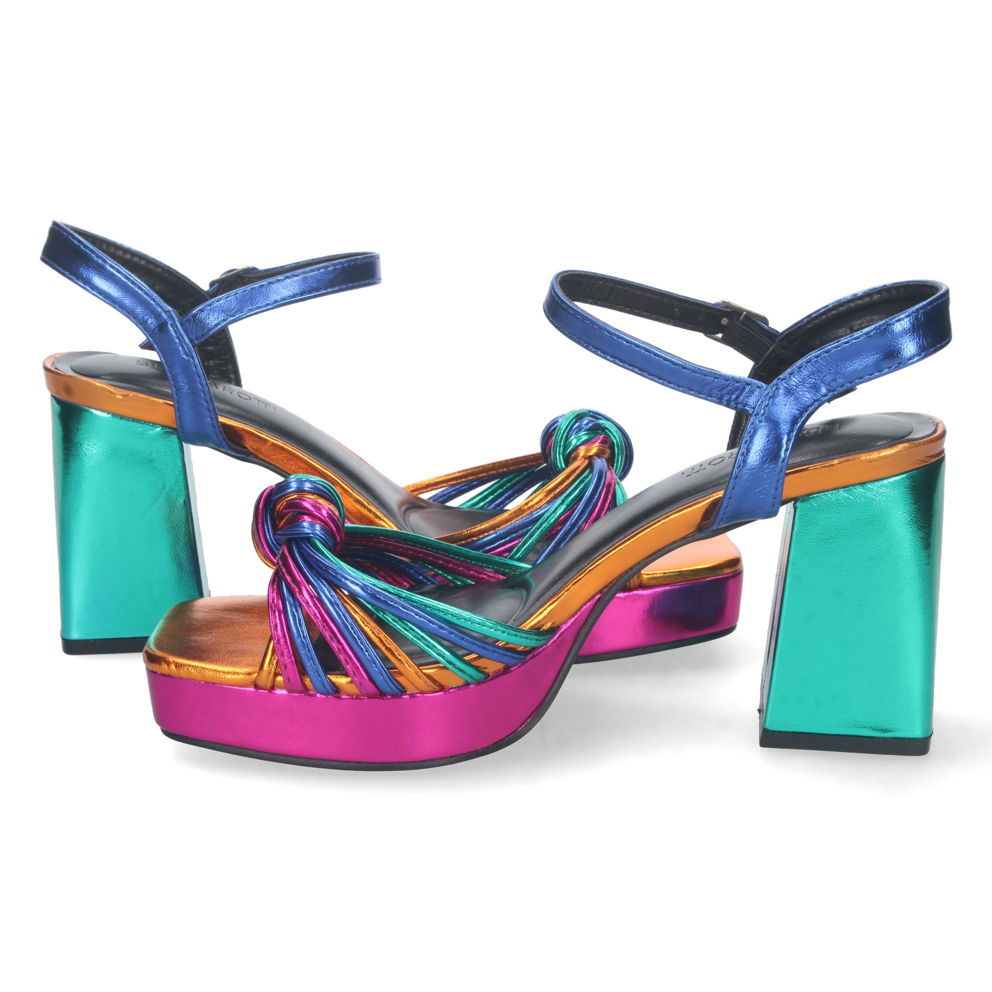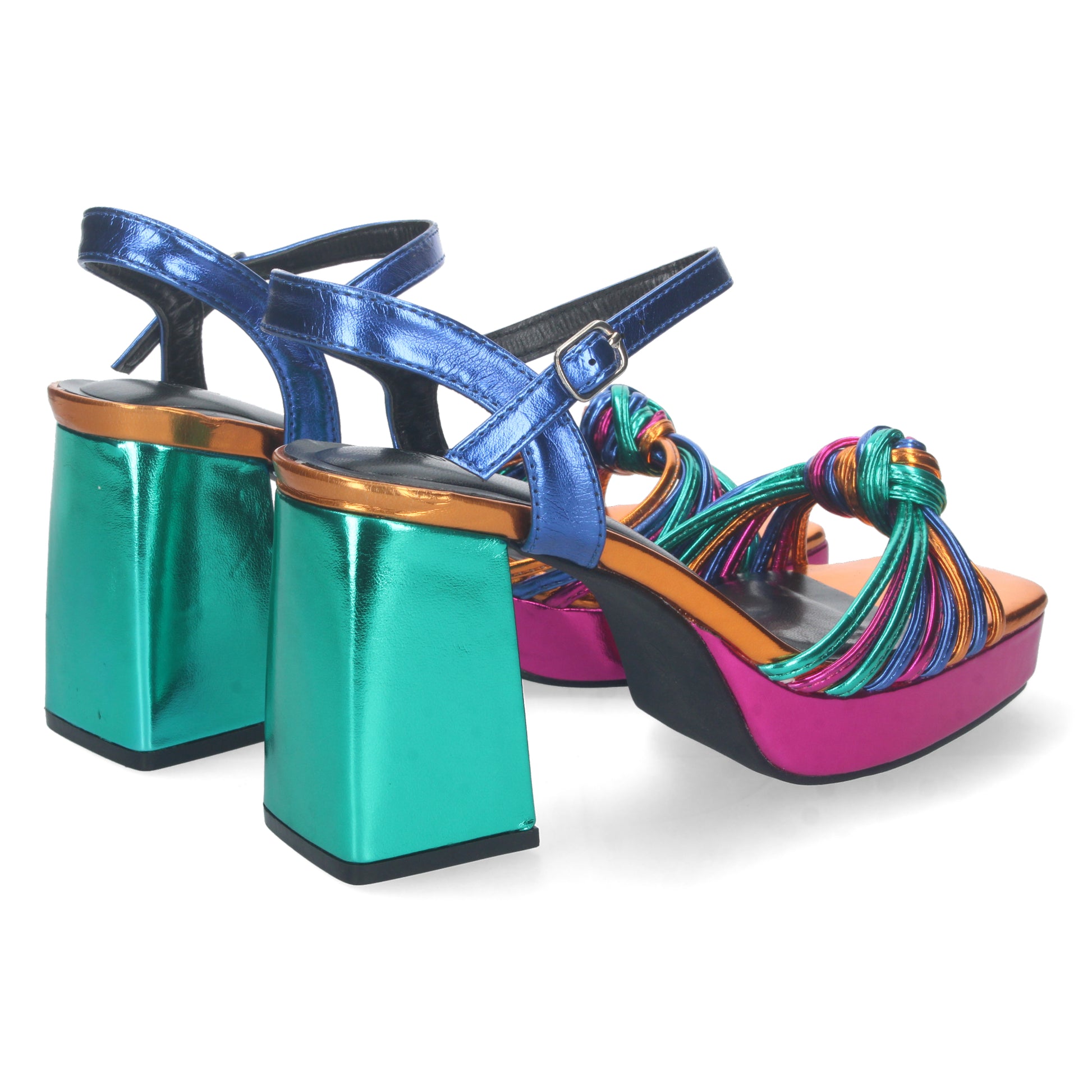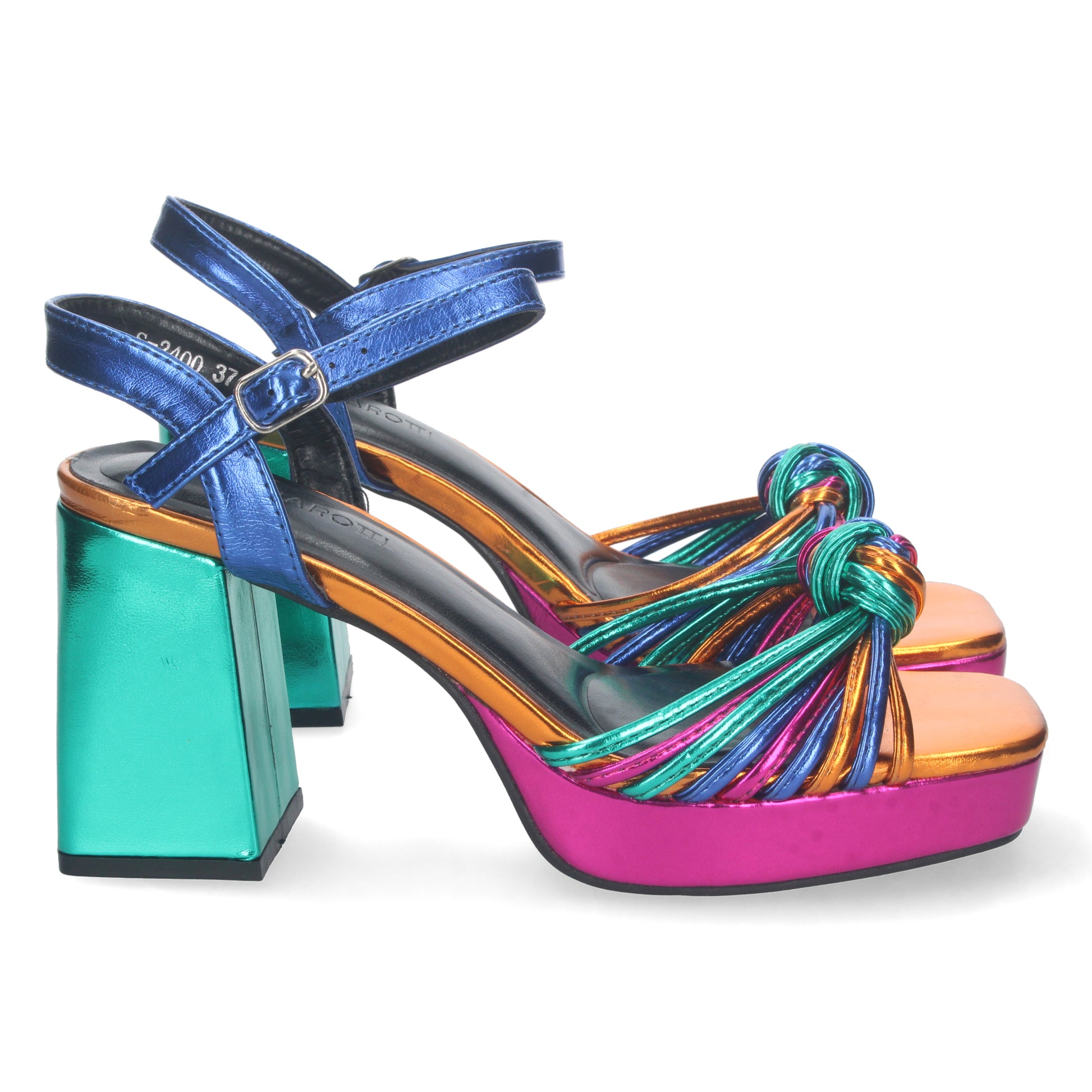 Sandalia de Tacon Ancho para Mujer Comodo Pala con Tiras Enredadas y Cierre de Hebilla