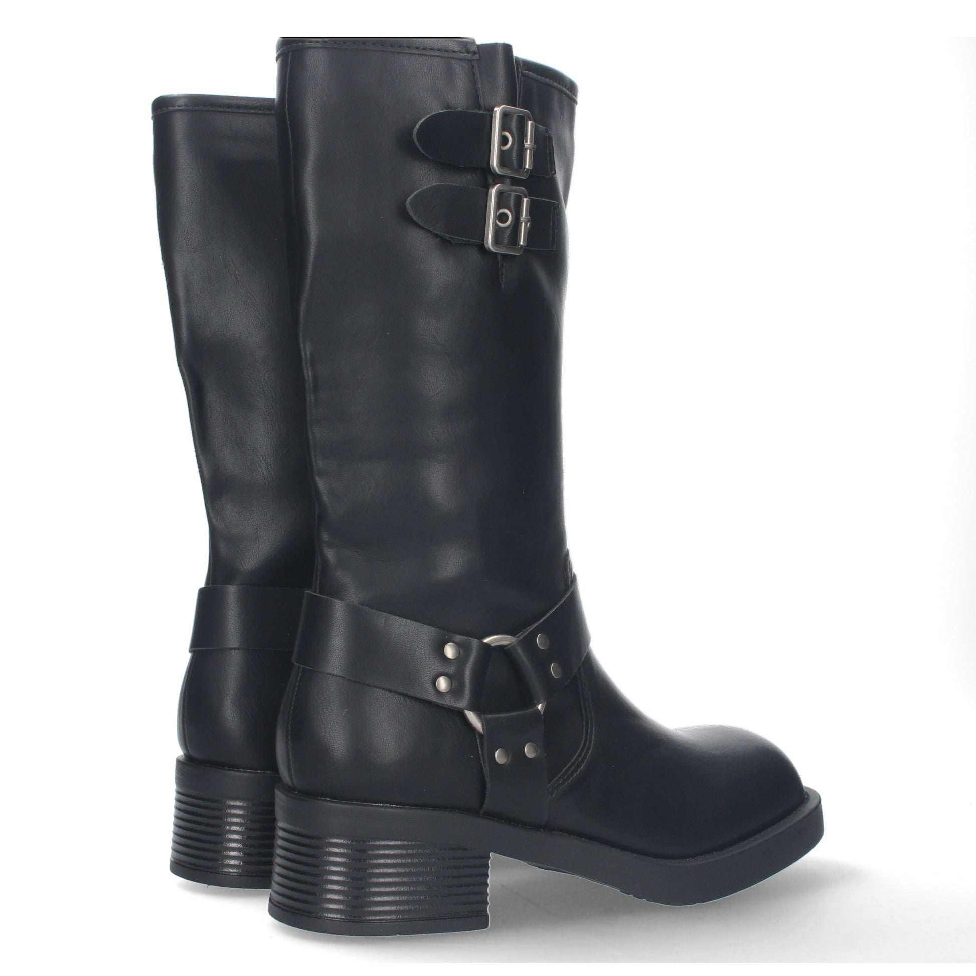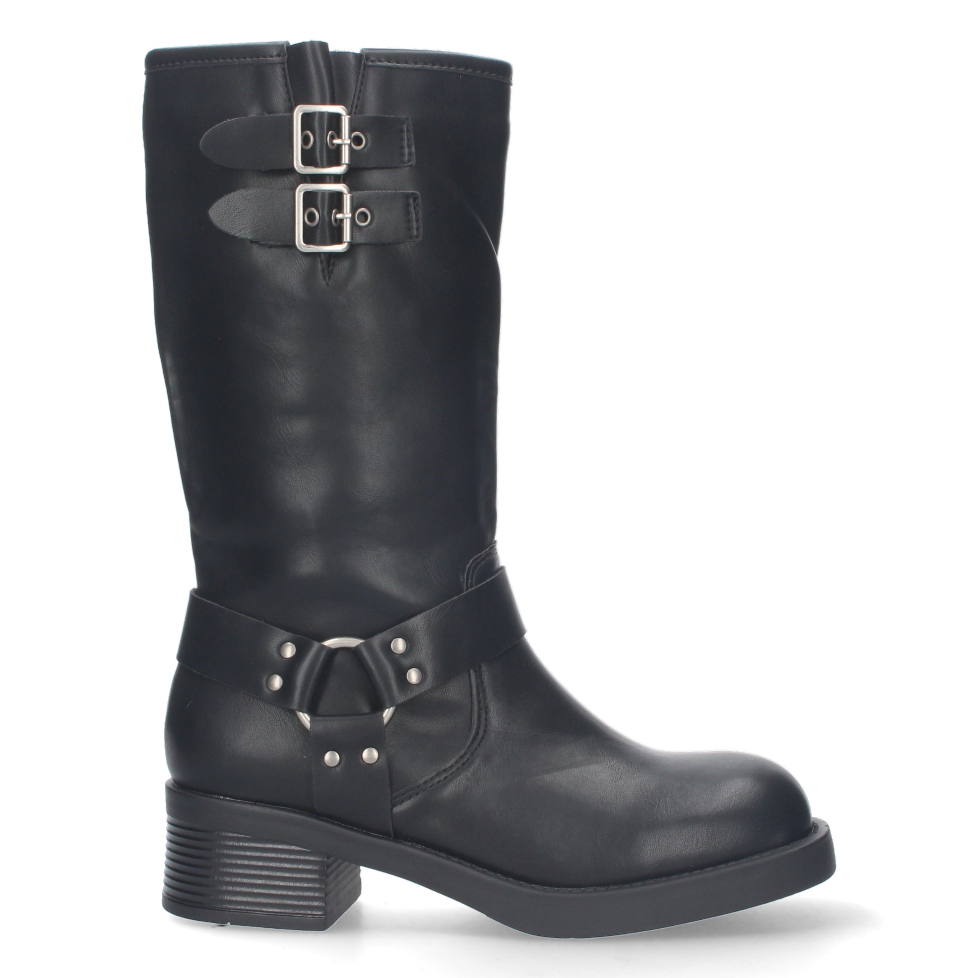 Bota motera para mujer con tacón bajo y cierre de cremallera cómodas para vestir e ir de ruta. Caña de 27cm de longitud.