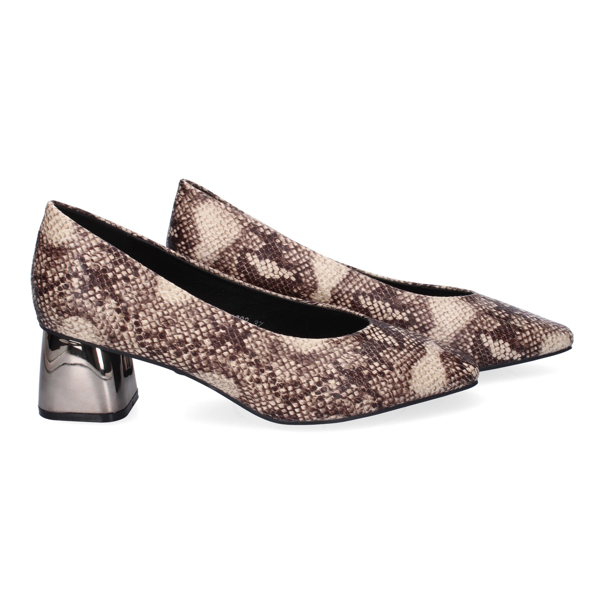 Zapatos de Salón Elegantes para Mujer Tacón Cuadrado Metálico Diseño Sofisticado con Puntera Fina.