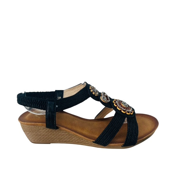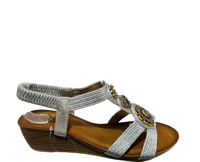 Sandalia con cuña cómoda bajita con detalles super bonita y cómoda e ideal para salir a cualquier evento o simplemente para diario en color negro y plata y tallas de la 36 al 41