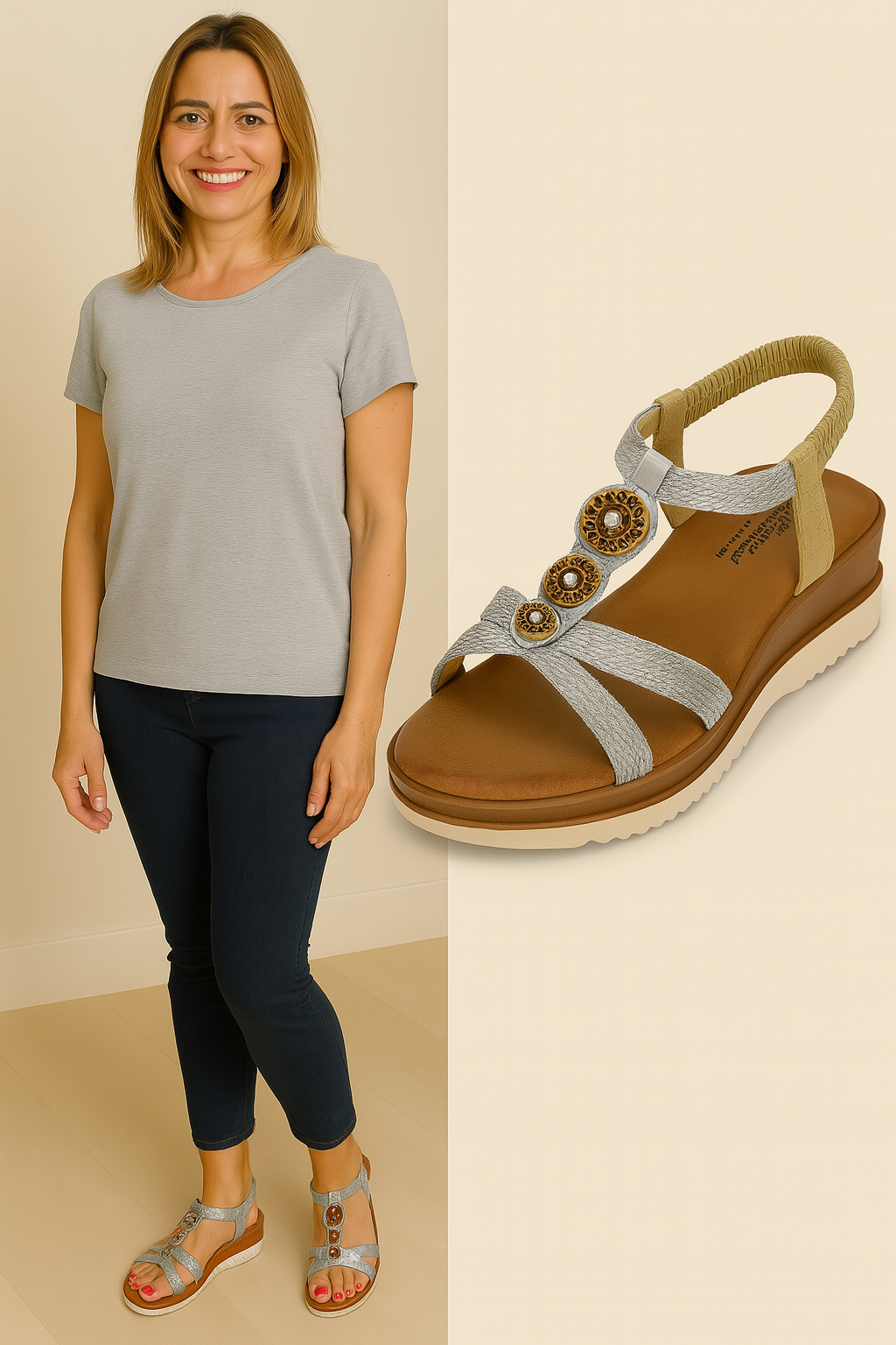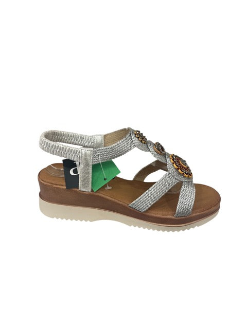 Sandalia plateada con cuña y pedrería – Elegancia y comodidad para cada paso