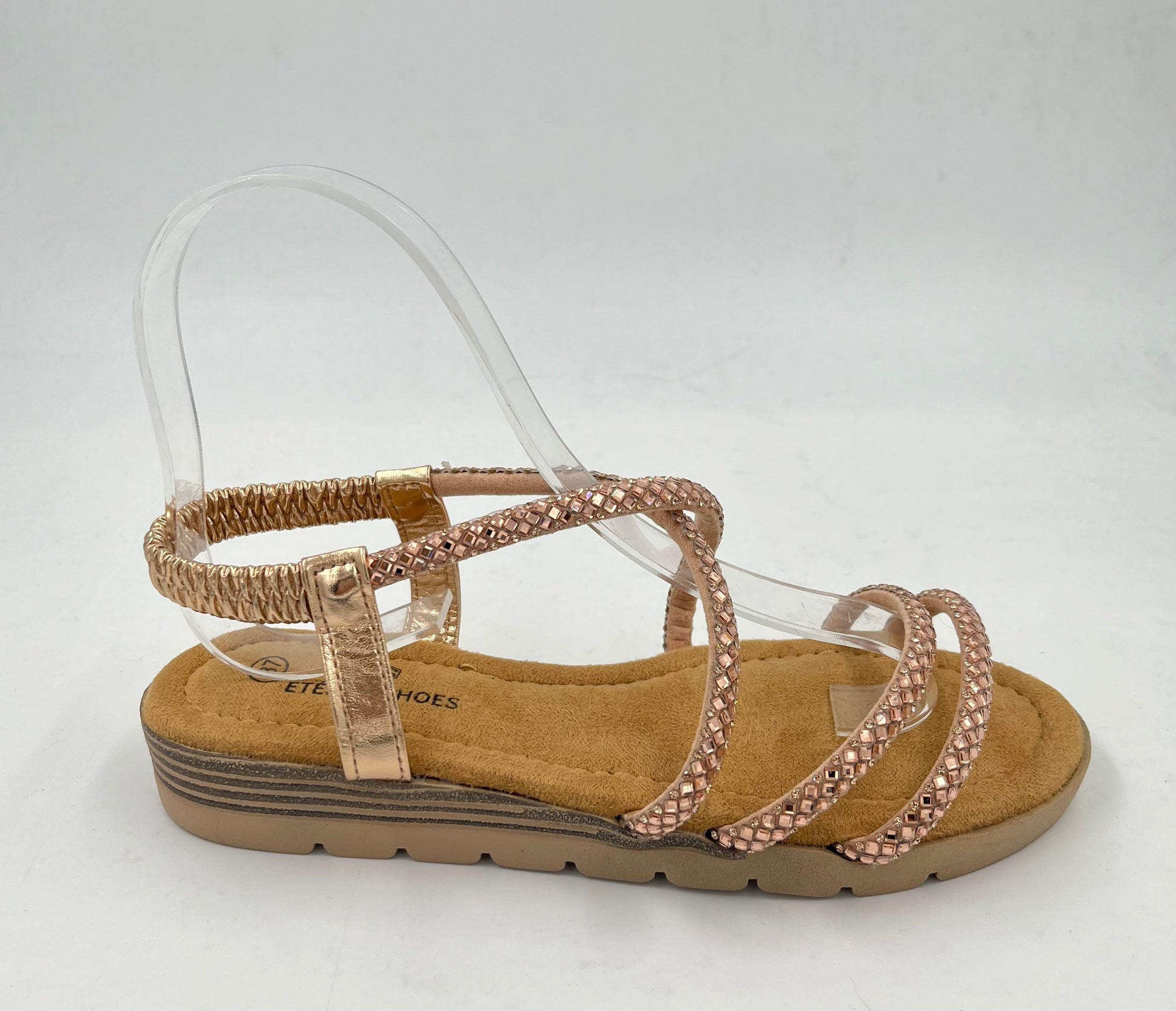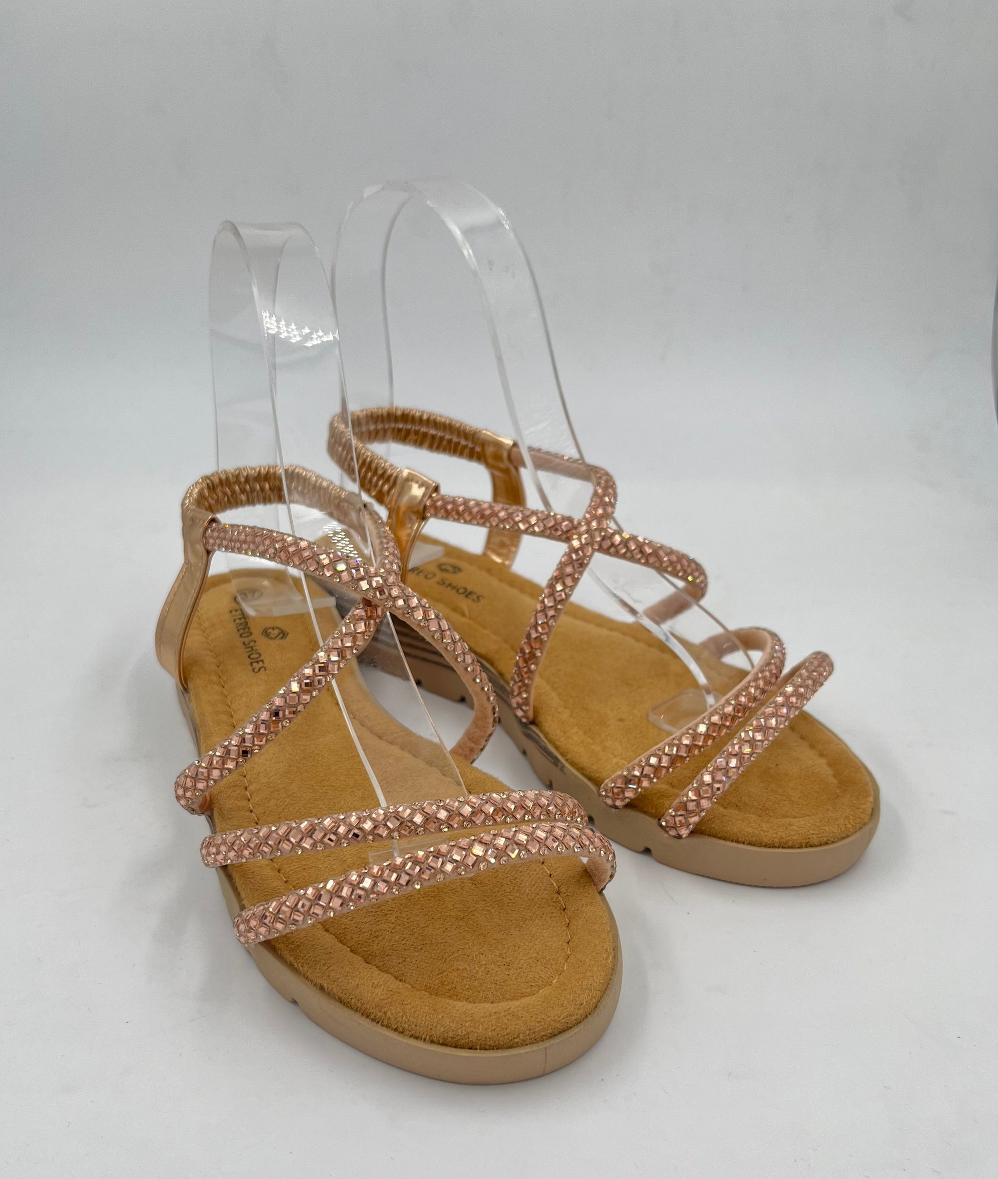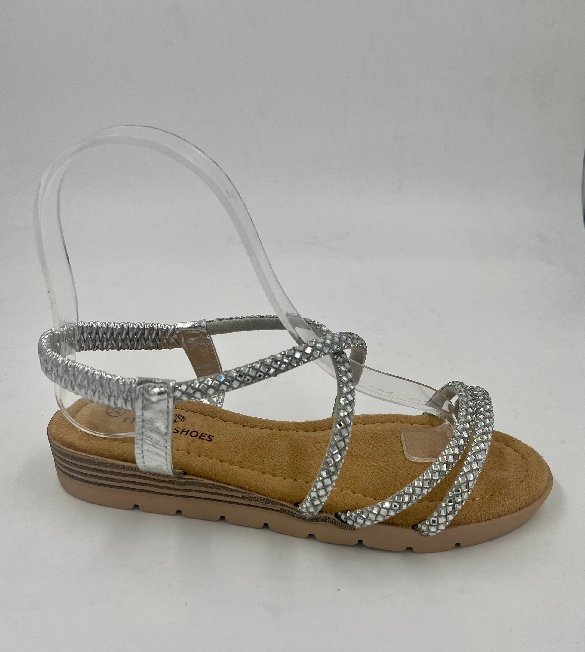 SANDALIA PLANA CON TIRAS FINAS Y BRILLO, SUPER ELEGANTE Y COMODA A LA VEZ, CON SUELA MUY BLANDITA, EN DOS COLORES, PLATA Y CHAMPAN