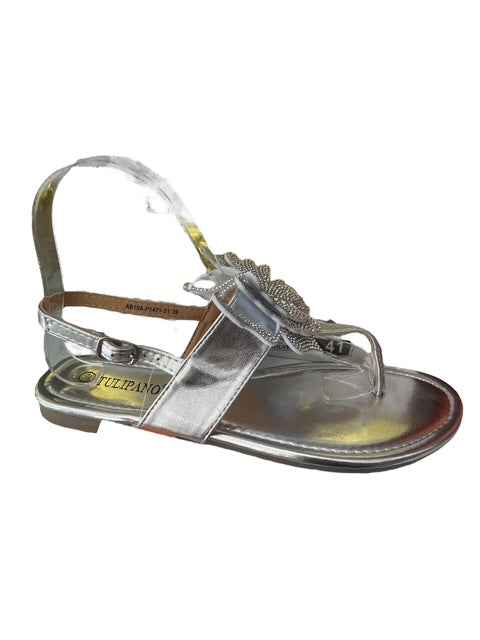 Luce espectacular en cada paso con estas sandalias planas decoradas con una flor de pedrería. Disponibles en color negro y plata, su diseño llamativo aporta un toque glamuroso ideal para salidas casuales, eventos o vacaciones. La suela cómoda y la tira ajustable aseguran un calce perfecto.