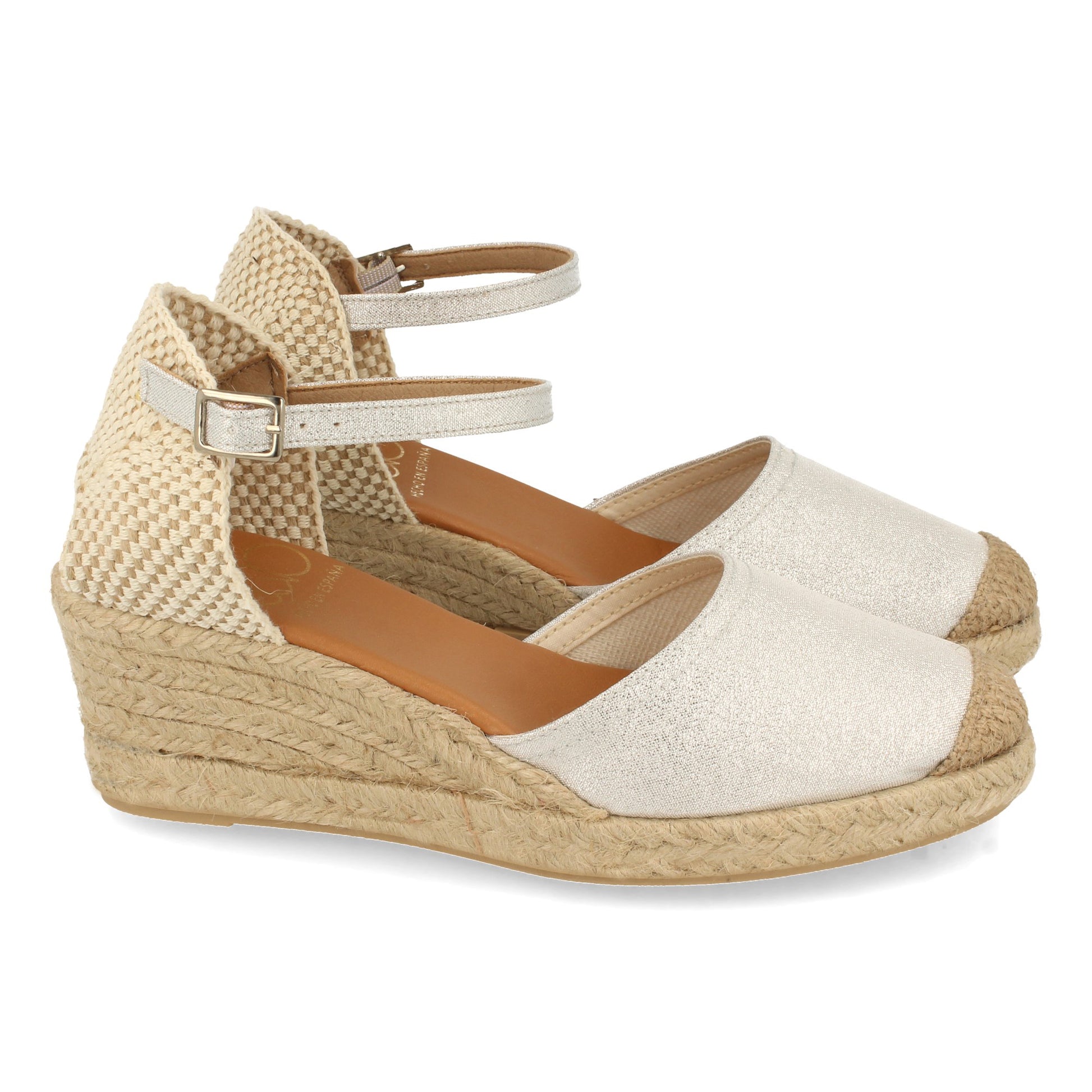 Alpargata de Cuña para Mujer Sandalia Cerrada estilo Valenciana Hecha en España Forrada de Yute 4 cuerdas Cierre de Hebilla Primavera Verano 2021