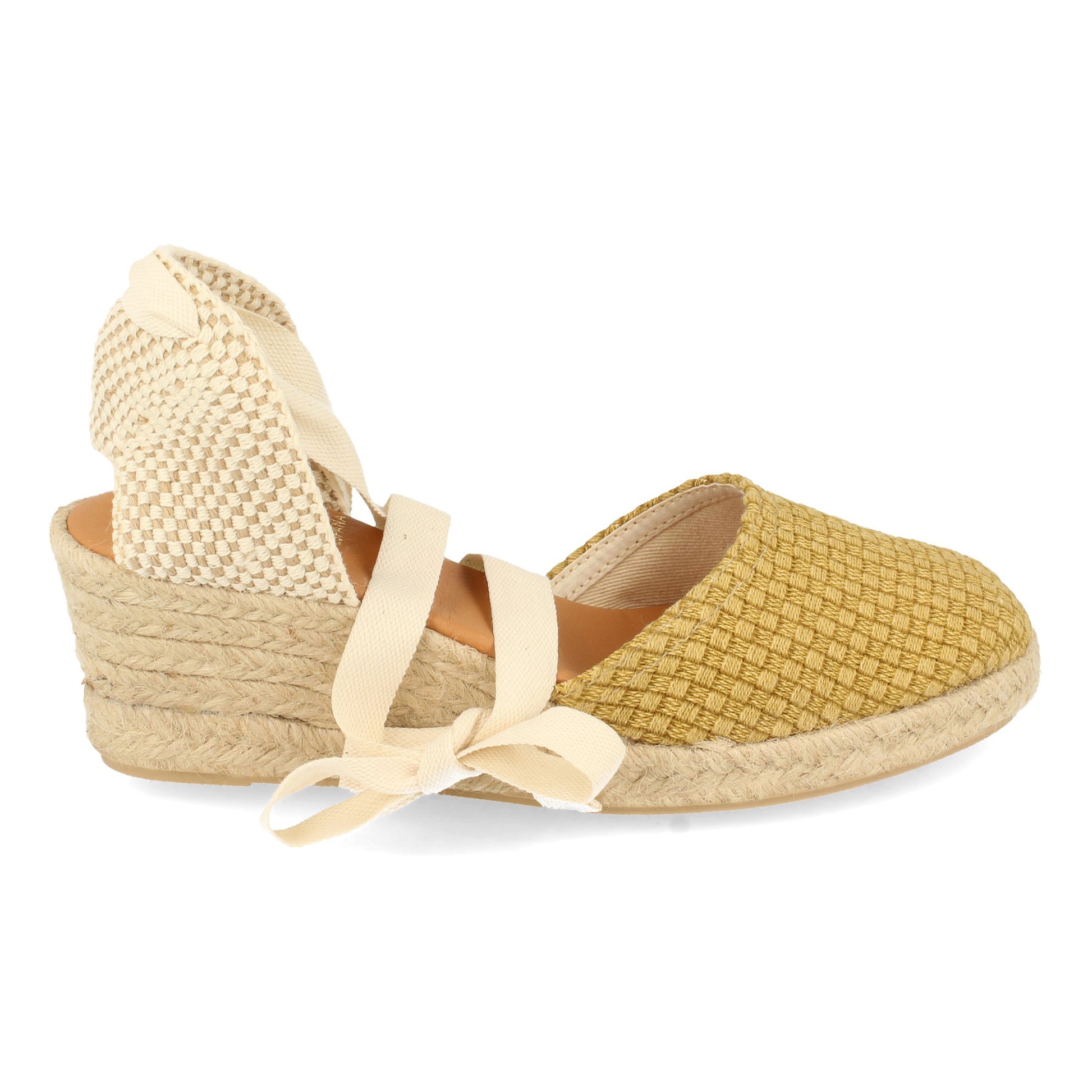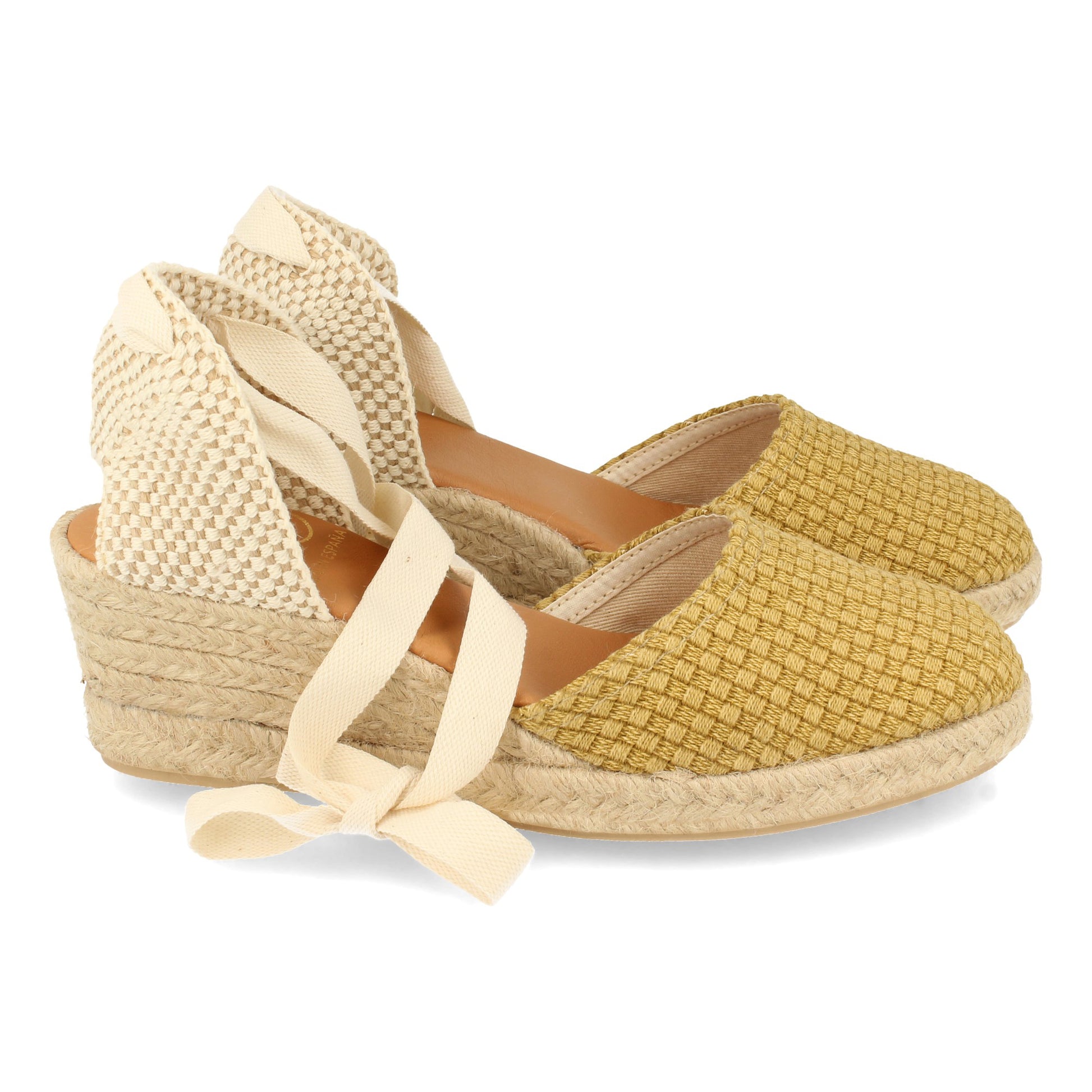 Alpargatas de Cuña para Mujer Sandalia Cerrada estilo Valenciana Hecho en España Yute 4 Cuerdas Tiras al Tobillo Primavera Verano 2021