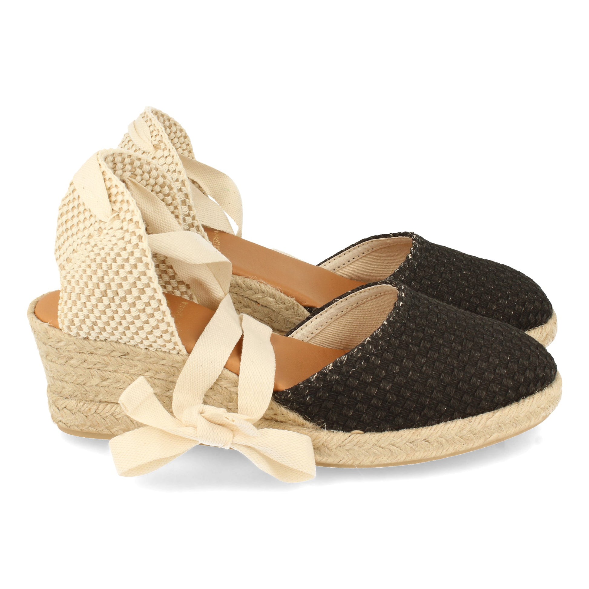 Alpargatas de Cuña para Mujer Sandalia Cerrada estilo Valenciana Hecho en España Yute 4 Cuerdas Tiras al Tobillo Primavera Verano 2021