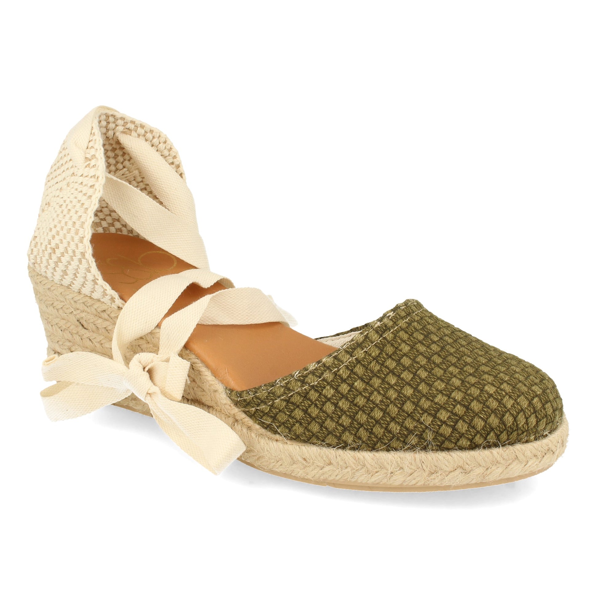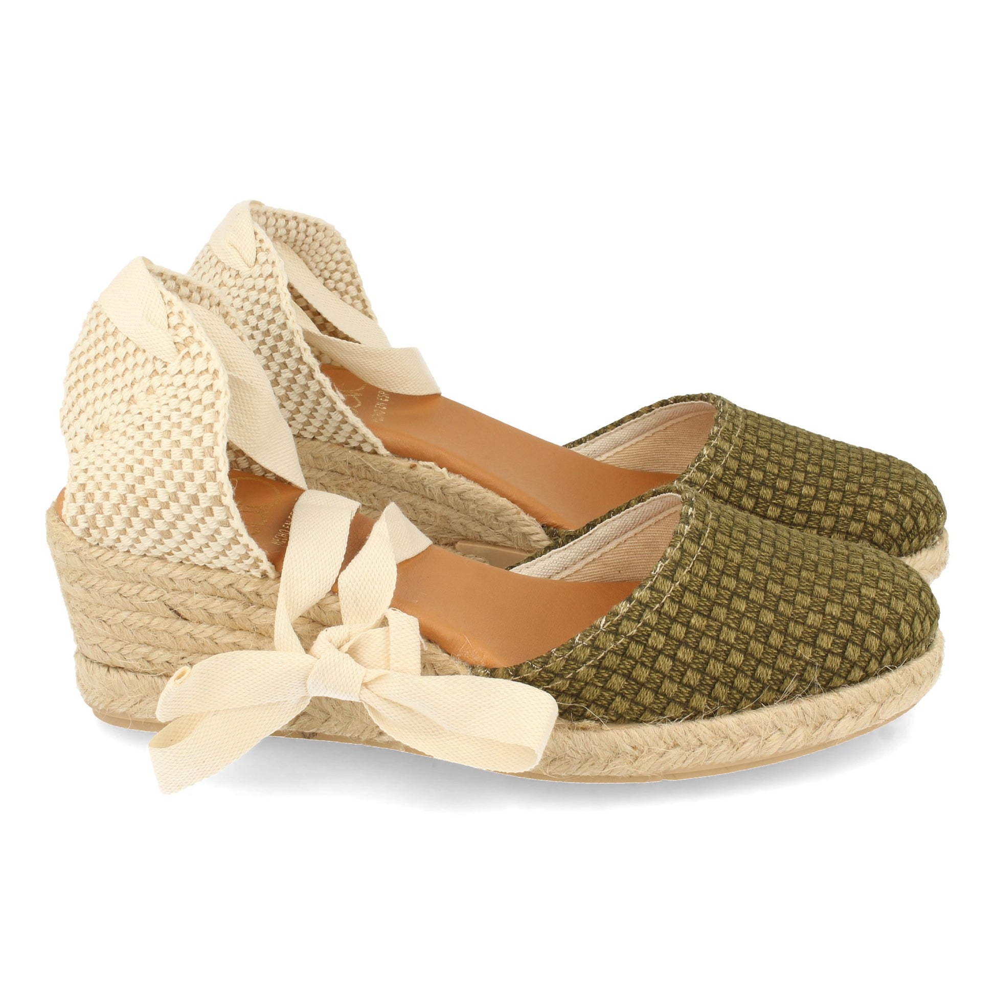 Sandalia de Cuña para Mujer Comodas con Pala Cerrada de Marca y Fabricacion Nacional Forrada de Yute y Cierre de Cordones Primavera Verano 2021