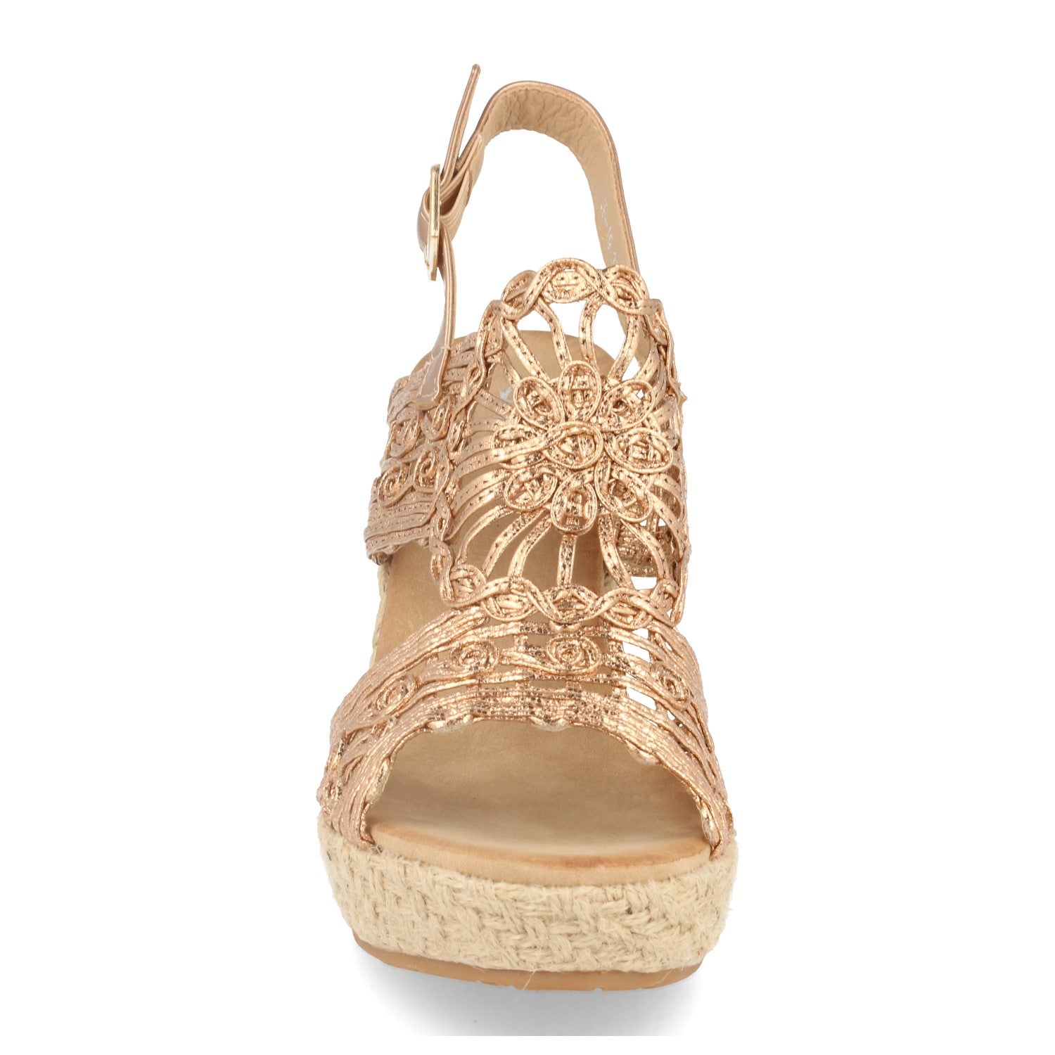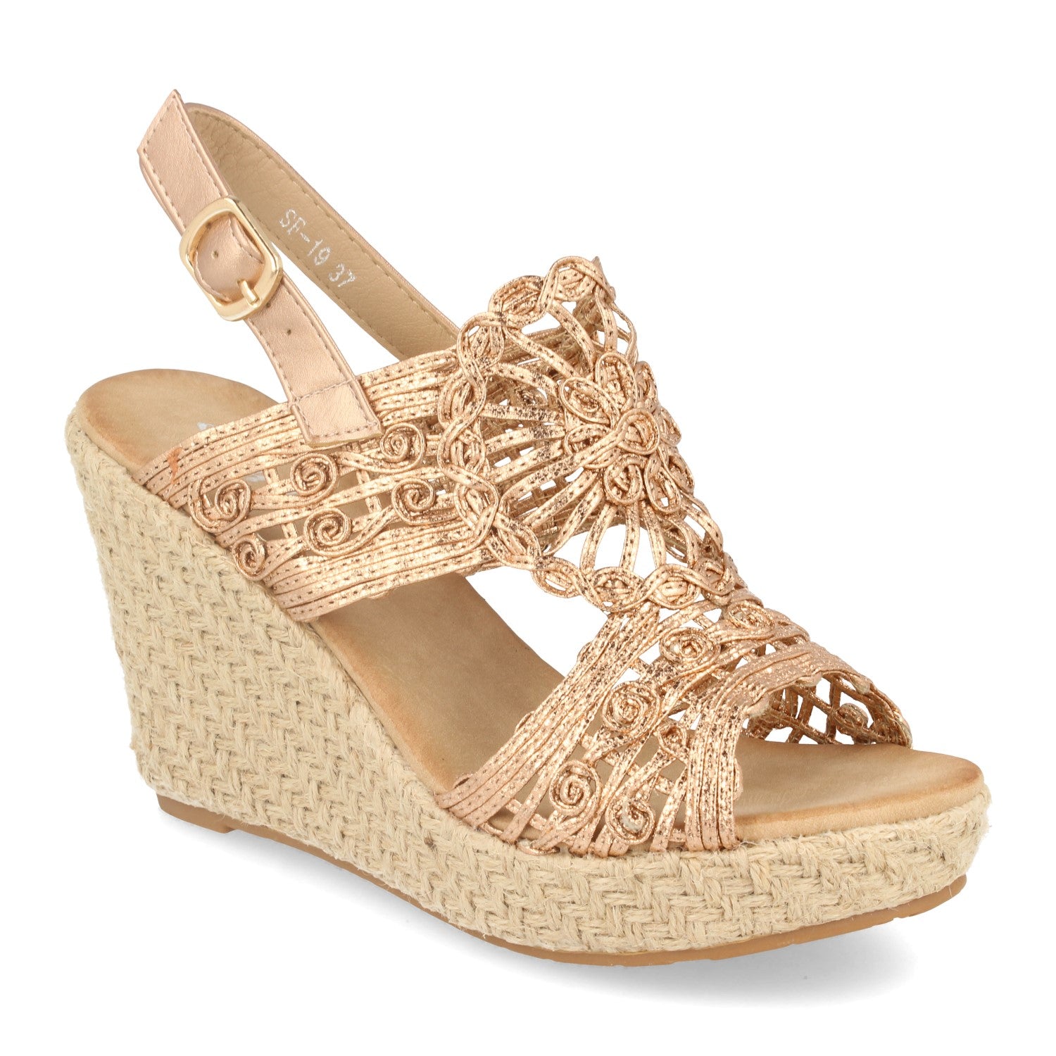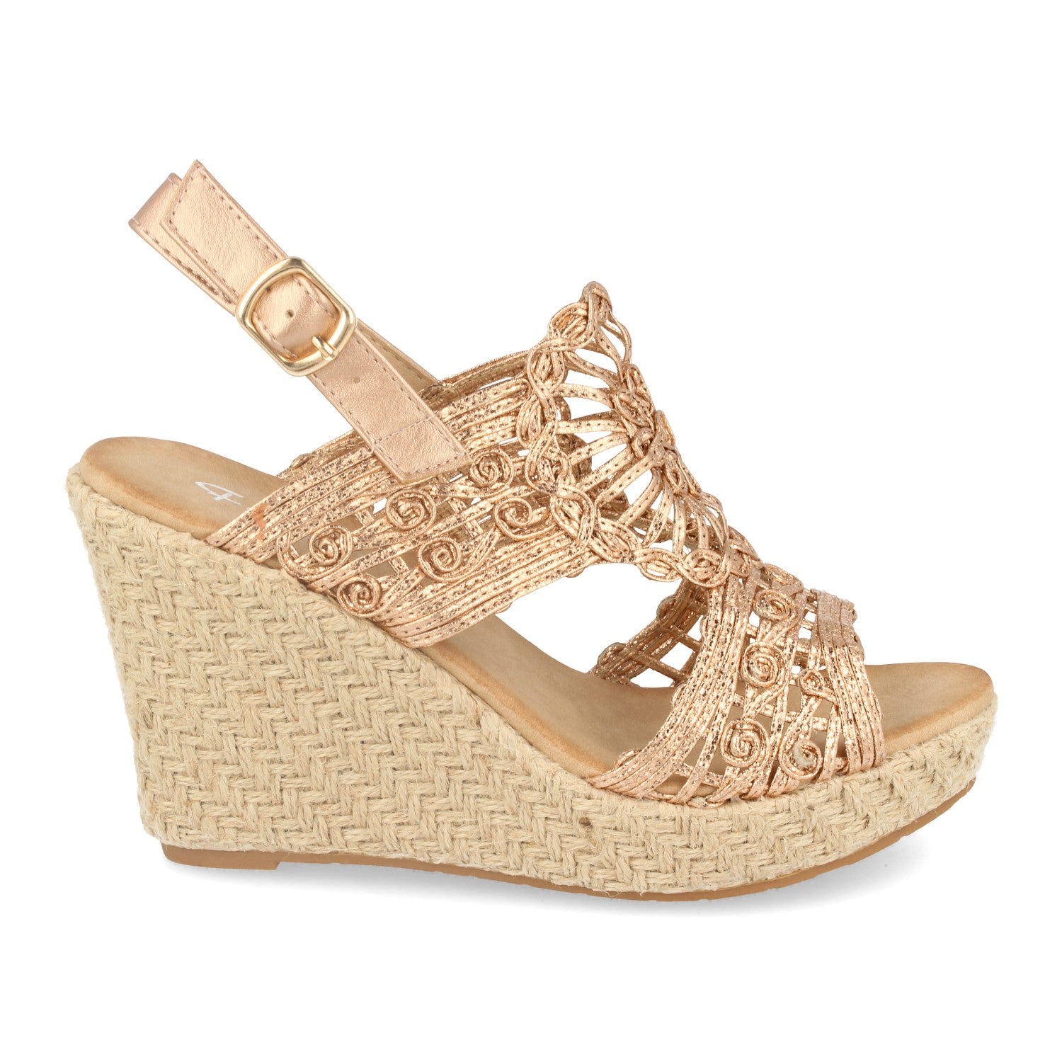 Sandalia de Cuña con Rafia Pala de Tiras Trenzada en Forma de Flor Cierre de Hebilla Primavera Verano 2020