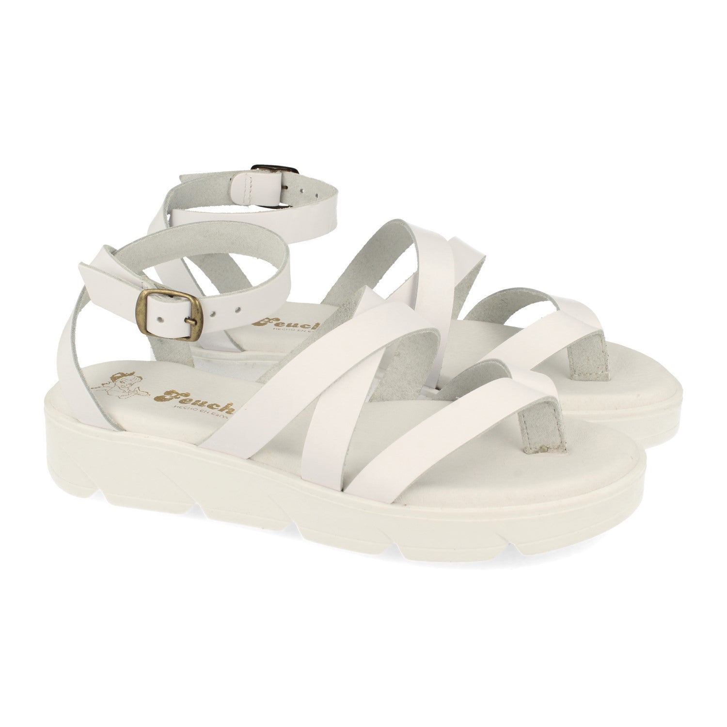 Sandalias Planas de Mujer Comodas Fabricadas en Piel Palas Cruzadas y Cierre de Hebilla Primavera Verano 2021